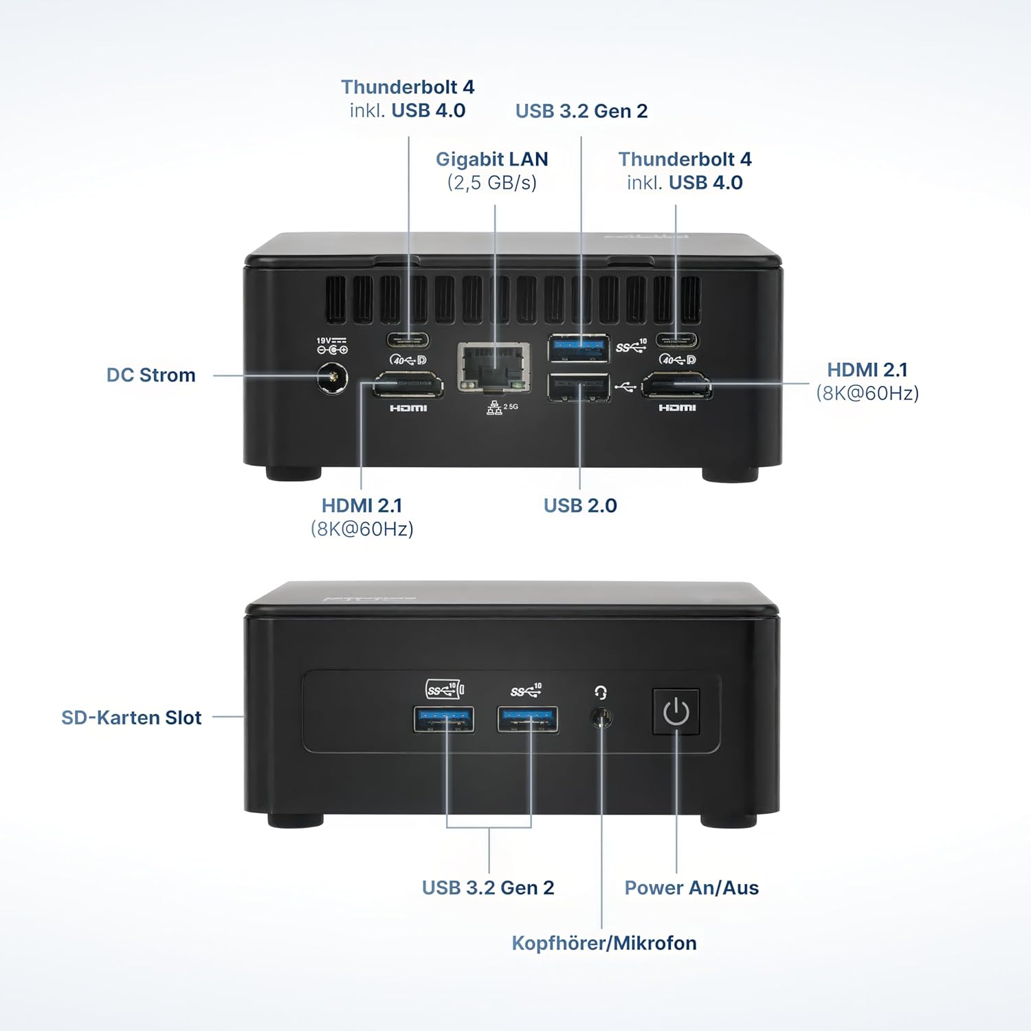 • УЛТРАБЪРЗИ ВРЪЗКИ – Оборудван с Intel Ethernet (2.5 Gbps), Wi-Fi 6E и Bluetooth 5.3, мини компютърът предлага най-високите скорости на трансфер. Два Thunderbolt 4 порта позволяват високоскоростен трансфер на данни и докинг. Идеален за бизнеси, разработчици, медийни продукции и други.