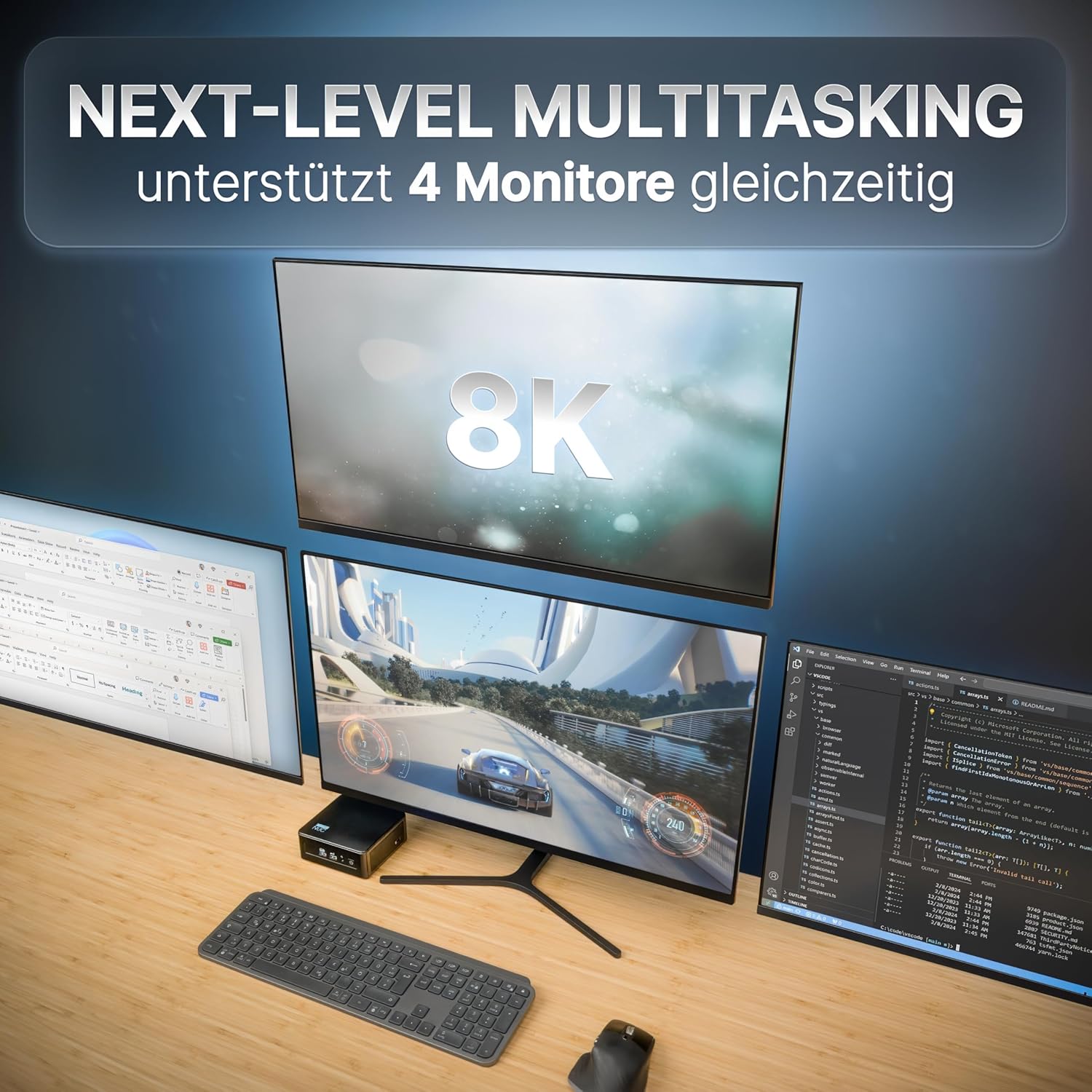 • ВИСОК КАПАЦИТЕТ И БЪРЗО СЪХРАНЕНИЕ – Мини компютърът предлага 32 GB DDR4 RAM (2 x 16 GB) и мощен 1 TB SSD. Дизайнът позволява и инсталирането на 2,5-инчов SSD с капацитет до 4 TB. Идеален за големи обеми данни, редактиране на видео и графики, многозадачност и професионална употреба в режим 24/7.