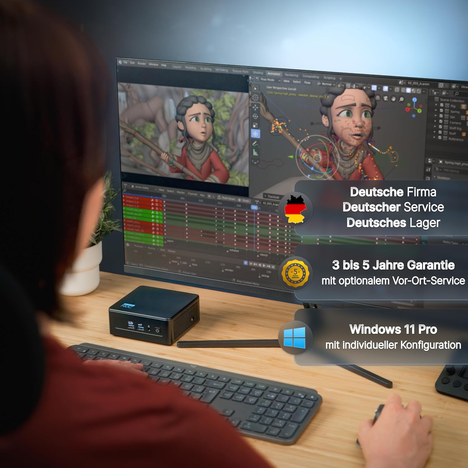 • ГОТОВ ЗА БИЗНЕС И КОМПАКТЕН – С размери само 117 x 112 x 49 мм, мини компютърът се побира навсякъде. VESA стойката позволява скрит монтаж. Независимо дали е офис компютър, станция за разработка, медиен сървър или решение за дигитална реклама: FutureNUC е квалифициран за професионална непрекъсната работа (24/7).
