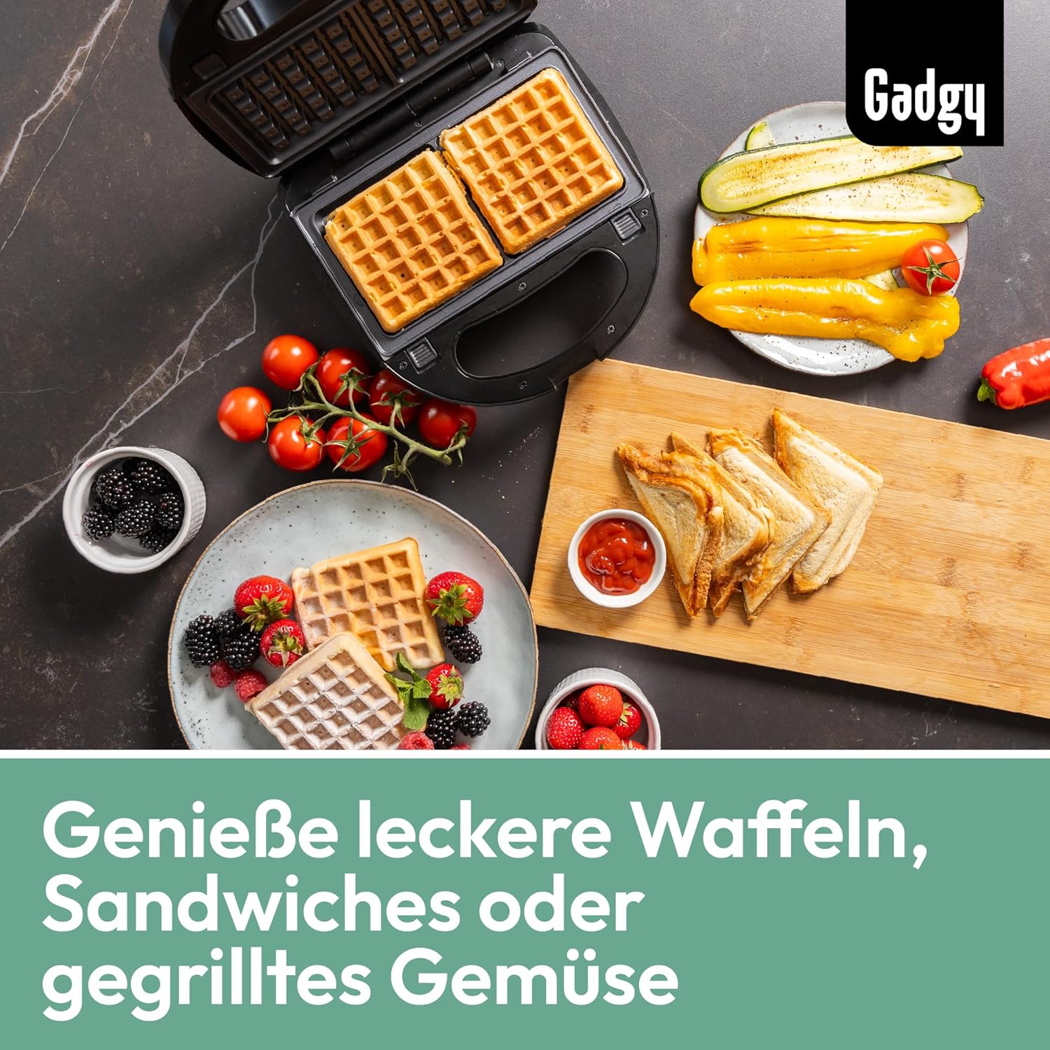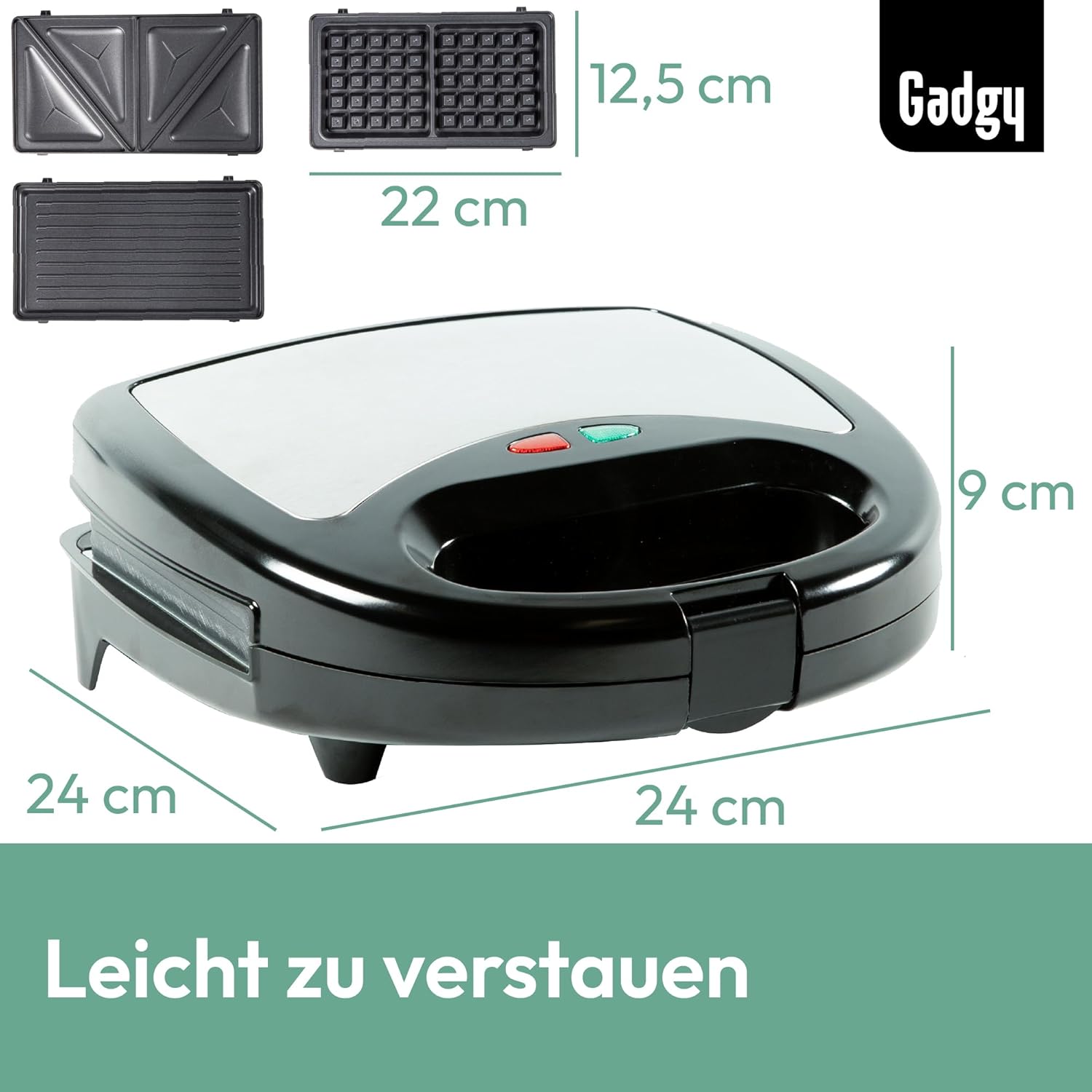 Gadgy ® 3-в-1 машина за сандвичи | Машина за белгийски гофрети | Подвижни плочи с хладна дръжка, неплъзгащи се крачета и 2 индикаторни лампички
