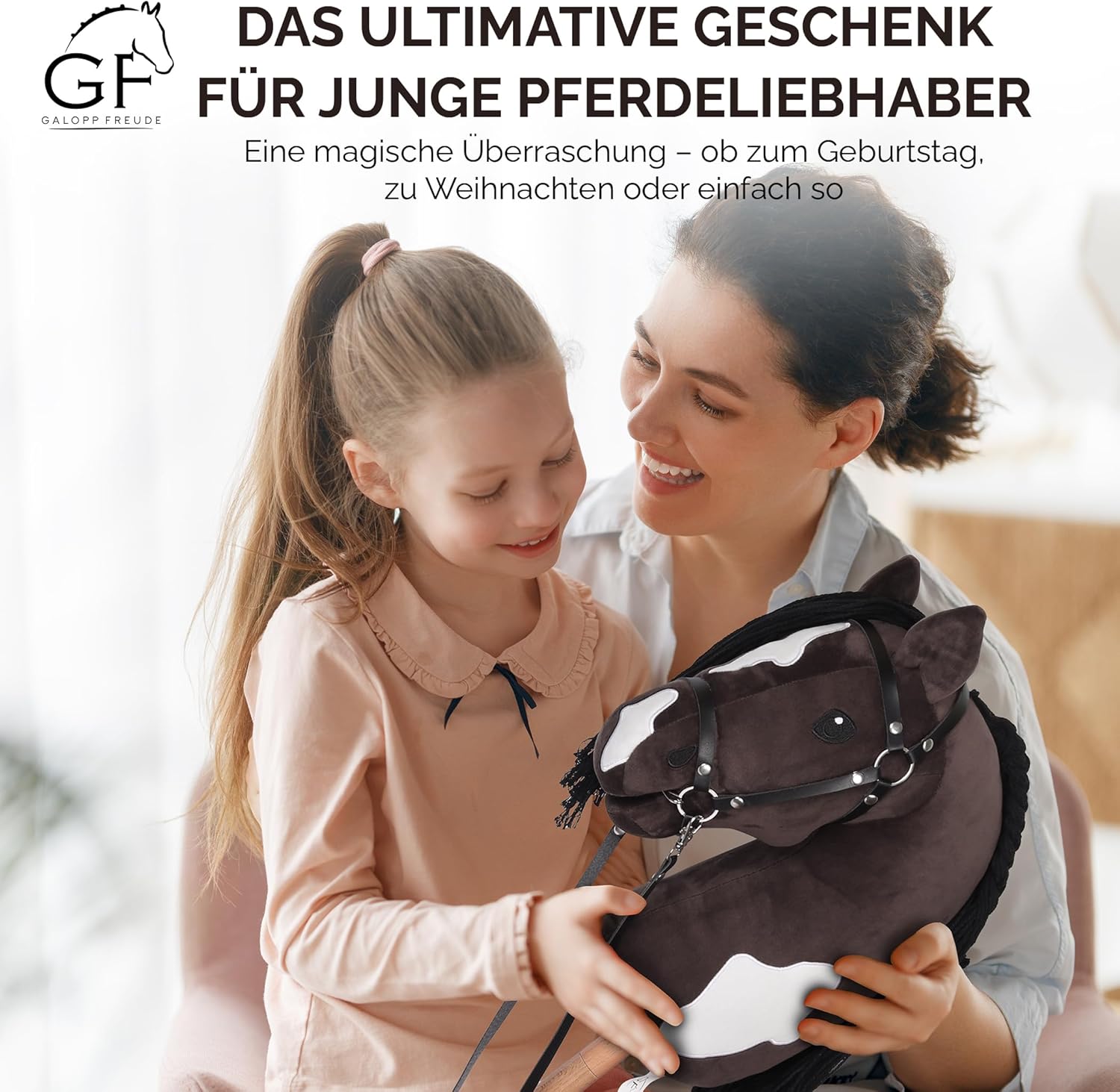1. Извадете кончето от опаковката му. 2. Прикрепете подвижната пръчка към тялото на кончето. 3. Дръжте кончето за пръчката и я използвайте, за да яздите, симулирайки езда. 4. Кончето може да се използва както на закрито, така и на открито. 5. Кончето може да се използва за игра на въображение и решаване на проблеми. 6. След употреба пръчката може да се извади за лесно съхранение.