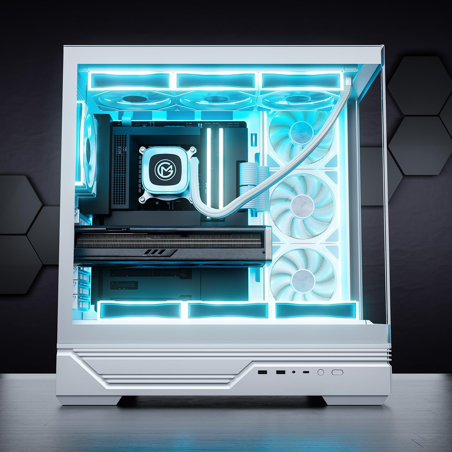 GameMachines Apex Snow Edition - Геймърски компютър - Водно охлаждане - AMD Ryzen 7 7700 - NVIDIA RTX 5060 Ti - 1000GB SSD - 32GB RGB DDR5 - WLAN - Windows 11 Pro