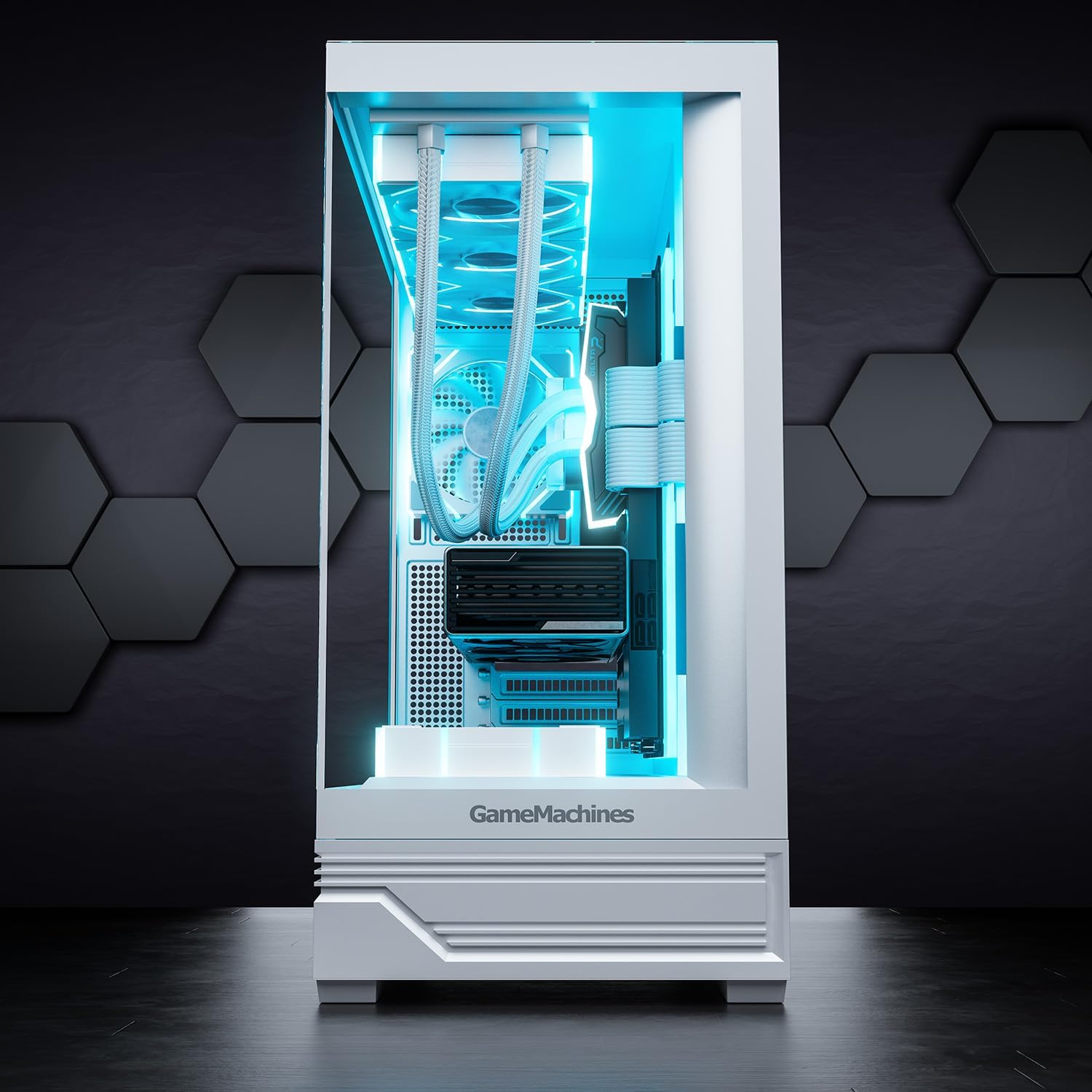 GameMachines Cube - Геймърски компютър - Водно охлаждане - AMD Ryzen 7 9700X - NVIDIA RTX 5060 Ti - 1000GB SSD - 32GB RGB DDR5 - WLAN - Windows 11 Pro
