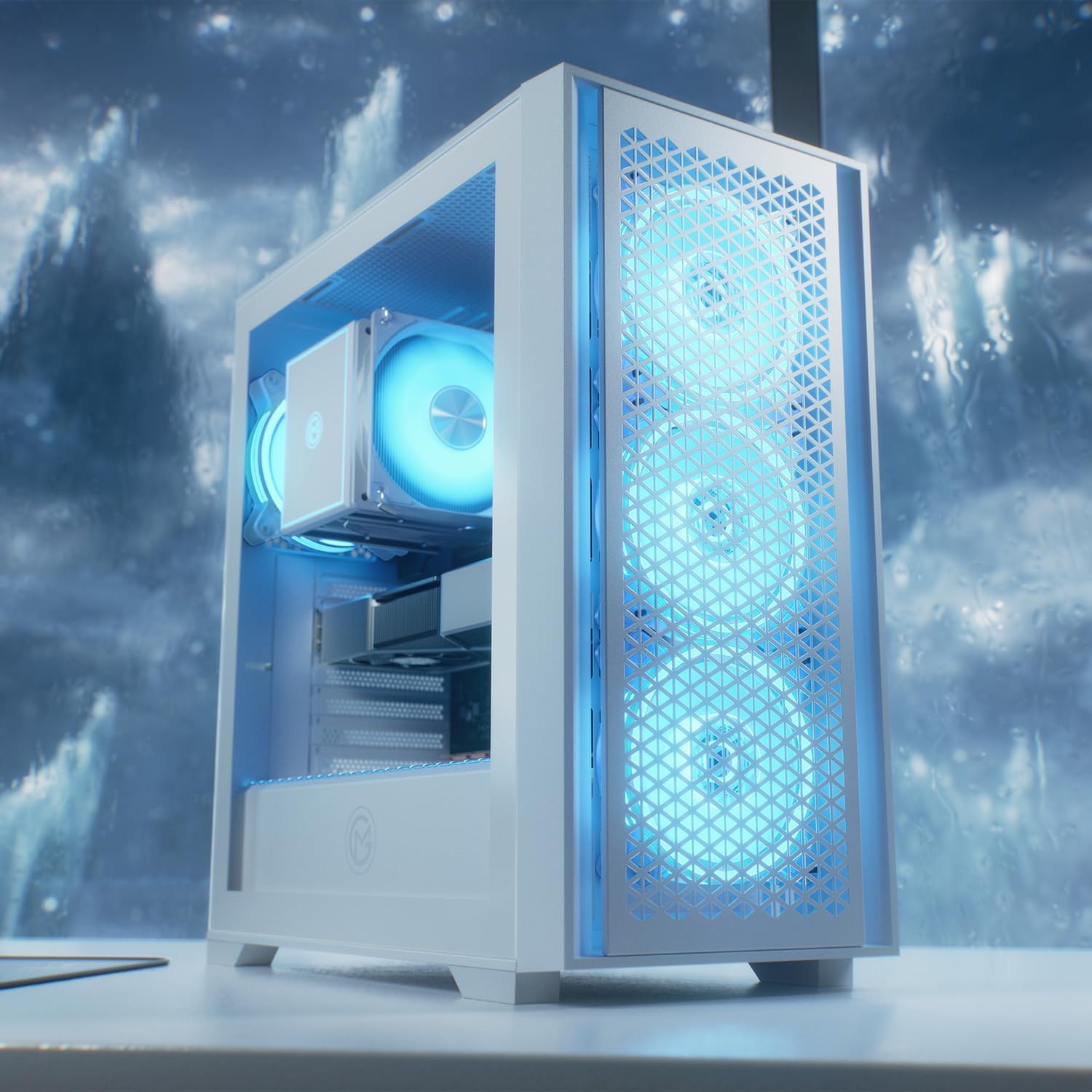 • 4x 120 мм A-RGB вентилатора на корпуса осигуряват отличен въздушен поток и освен това изглеждат фантастично.