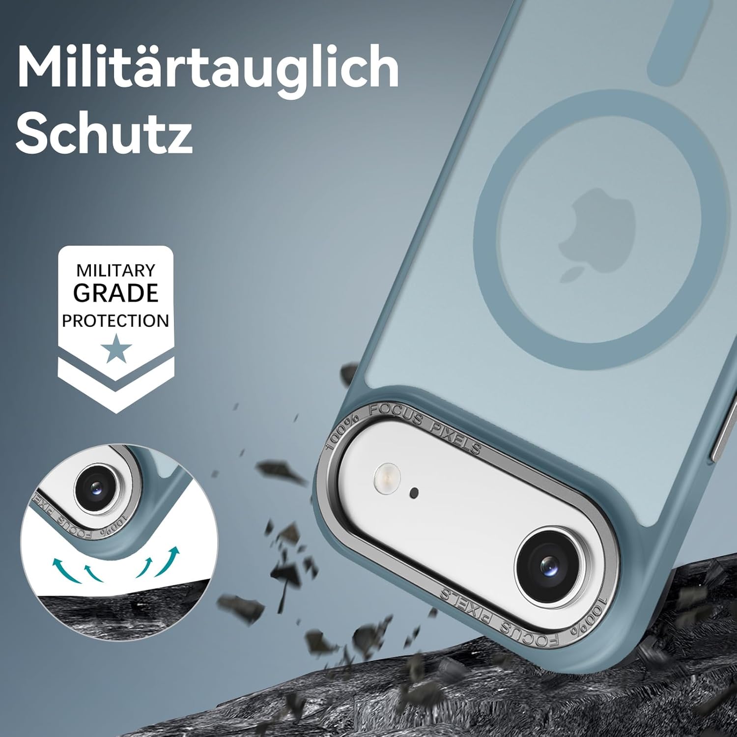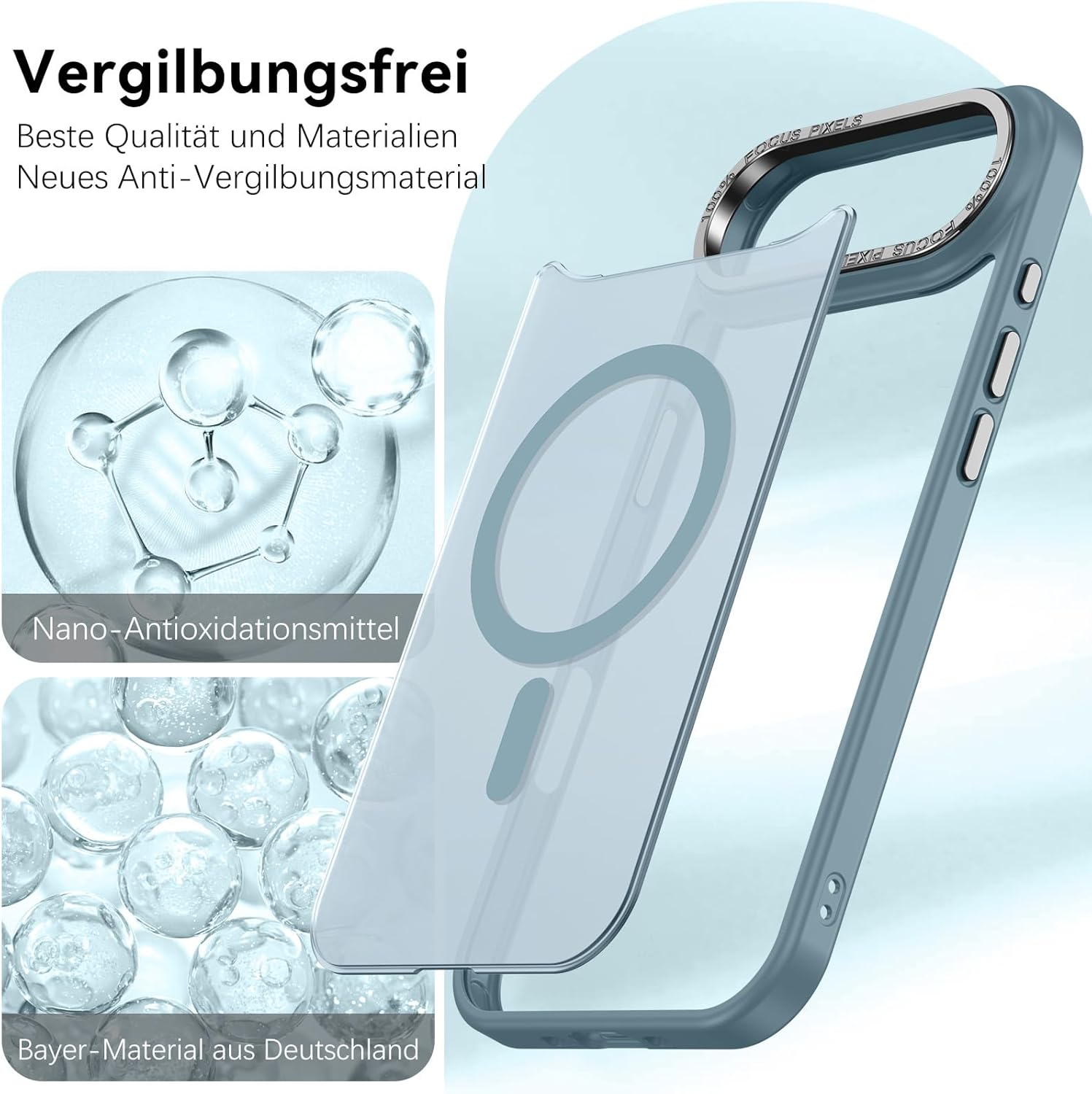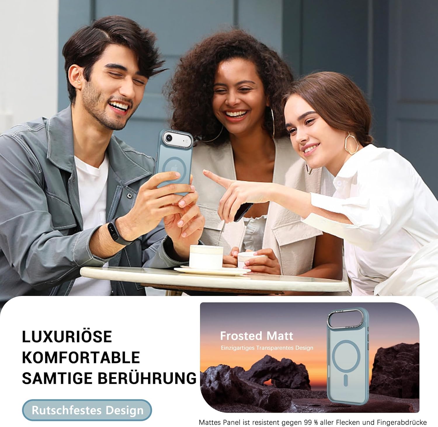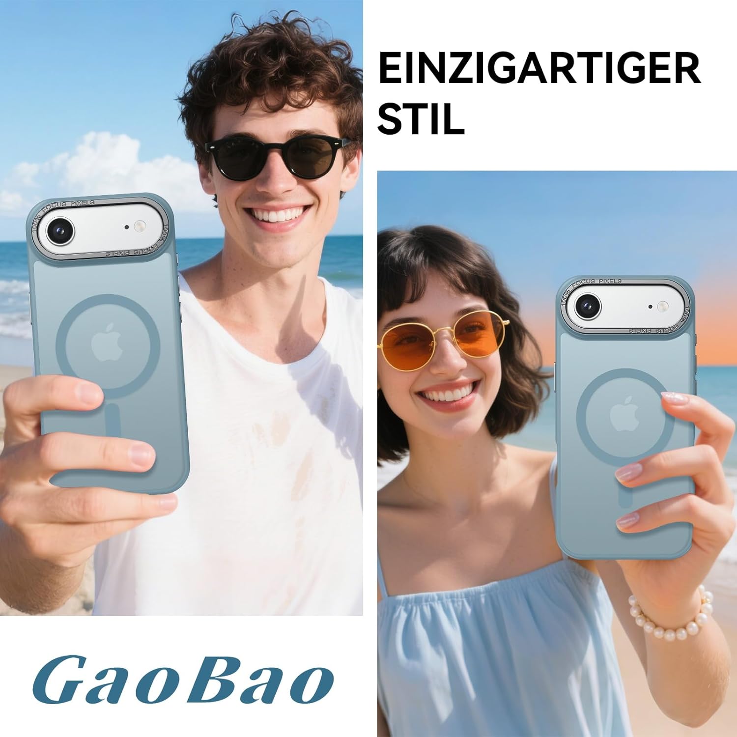 GaoBao iPhone 17 Air Case, Калъф за мобилен телефон iPhone 17 Air [Съвместим с MagSafe] Прозрачен матов магнитен удароустойчив калъф за мобилен телефон против пръстови отпечатъци за 6.5 инча, сиво-син