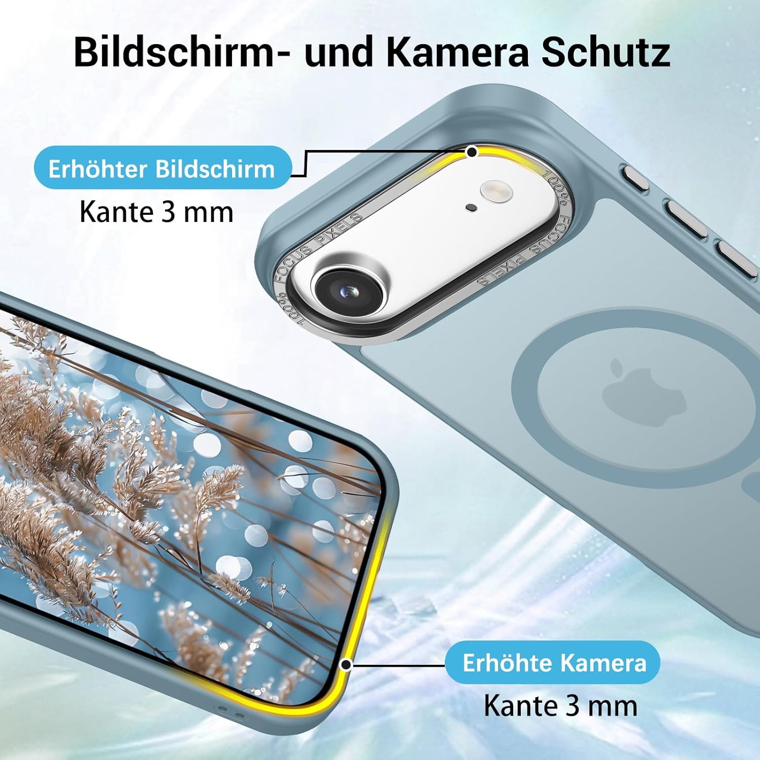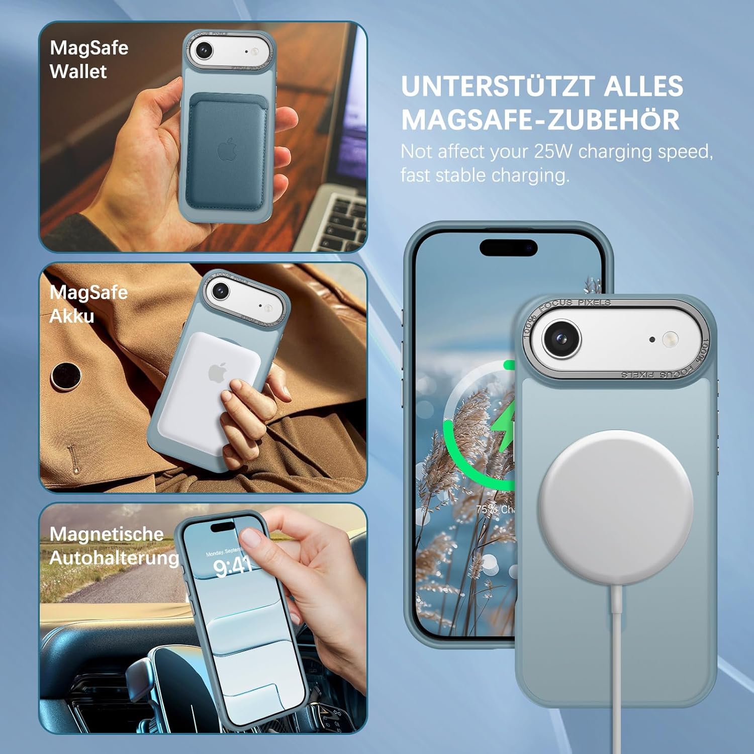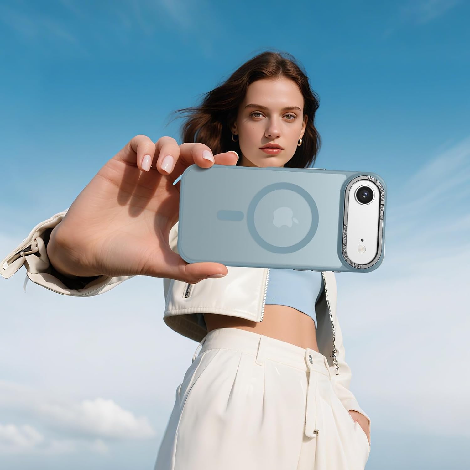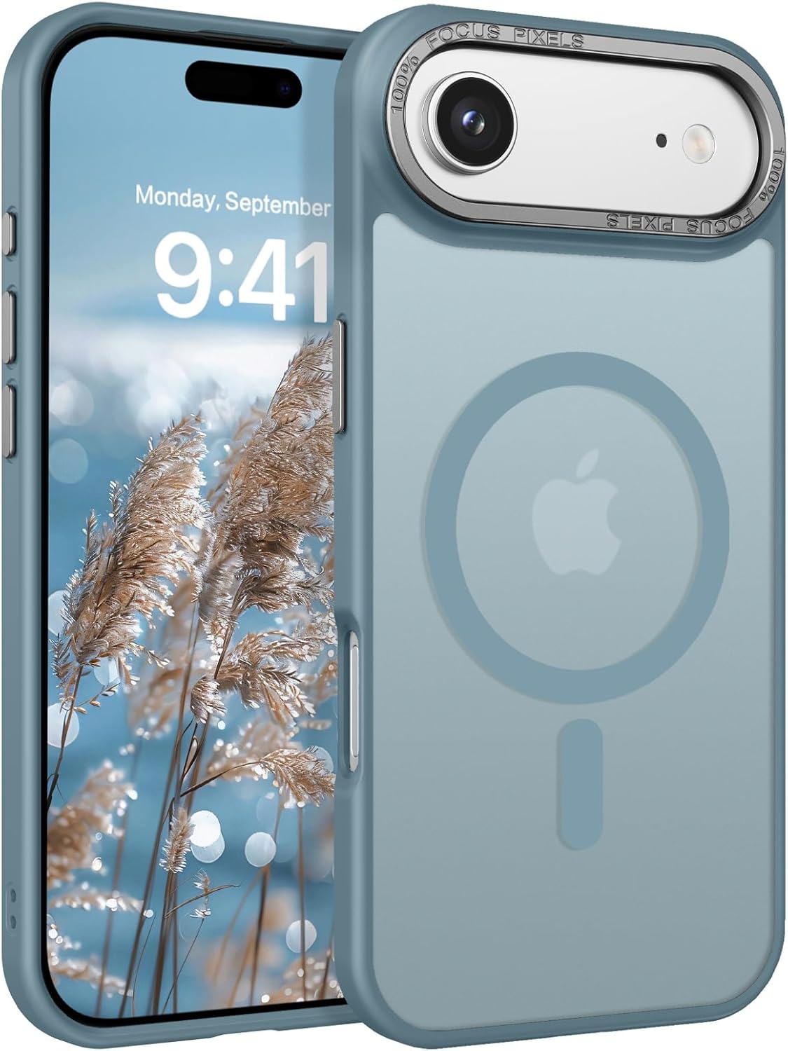GaoBao iPhone 17 Air Case, Калъф за мобилен телефон iPhone 17 Air [Съвместим с MagSafe] Прозрачен матов магнитен удароустойчив калъф за мобилен телефон против пръстови отпечатъци за 6.5 инча, сиво-син