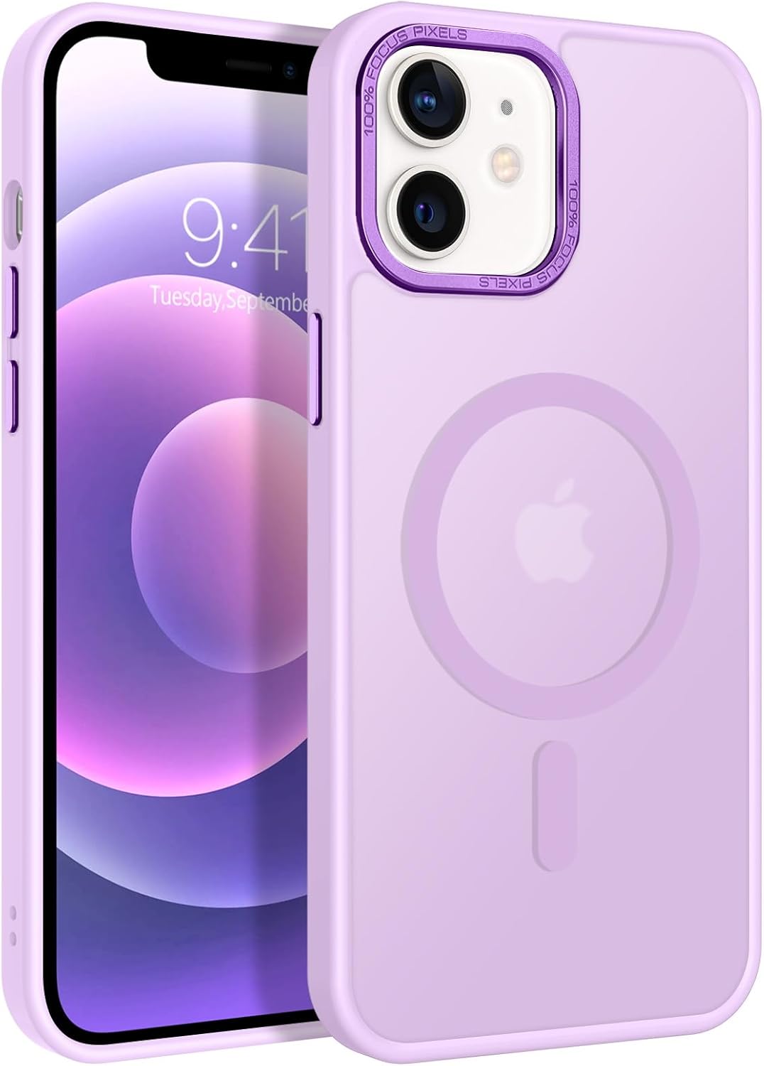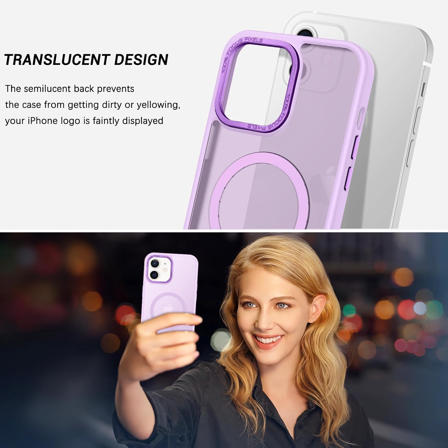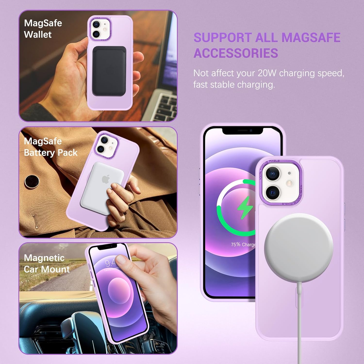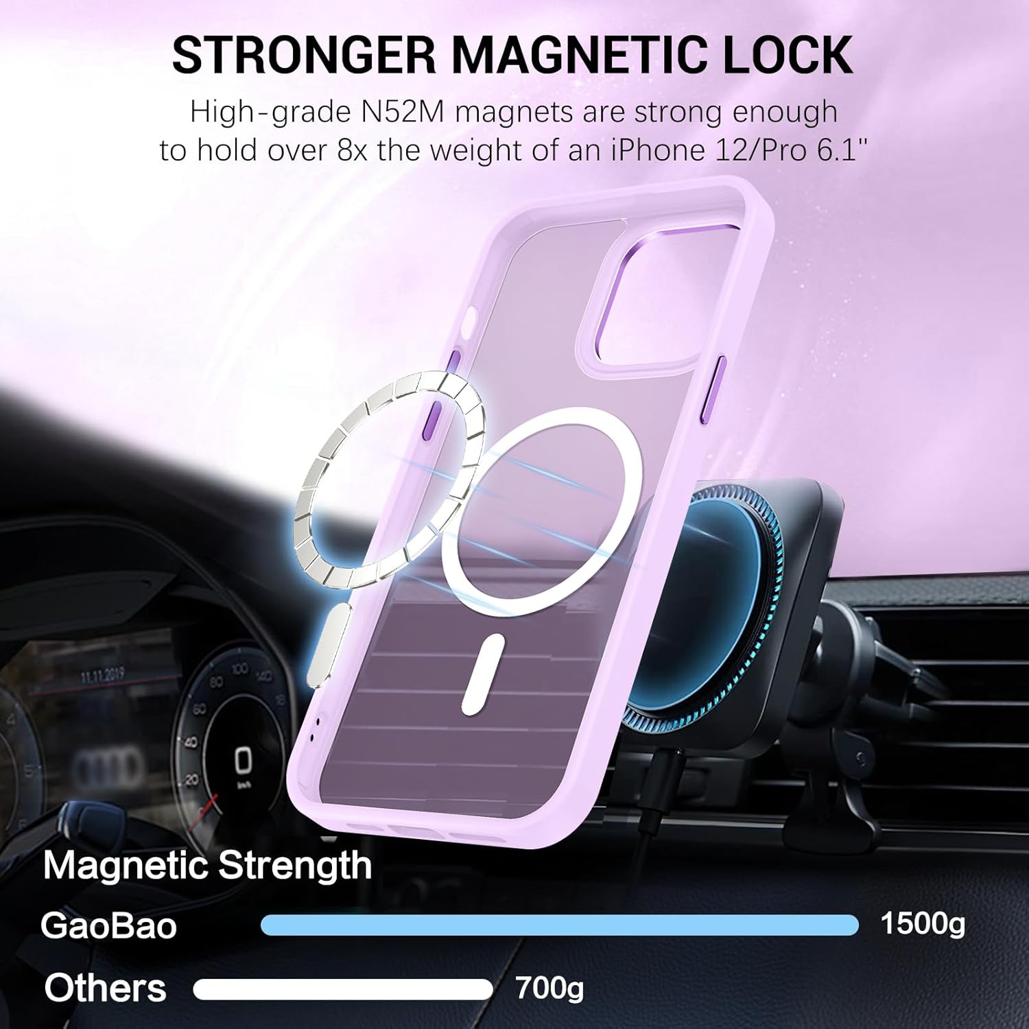 GaoBao калъф за iPhone 12, iPhone 12 Pro [съвместим с MagSafe] Прозрачен матов магнитен удароустойчив калъф за мобилен телефон против пръстови отпечатъци за iPhone 12/iPhone 12 Pro, светло лилав