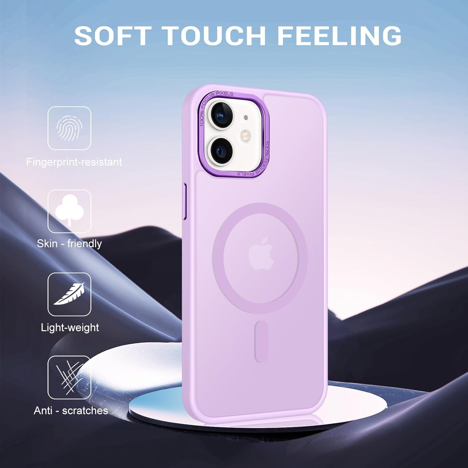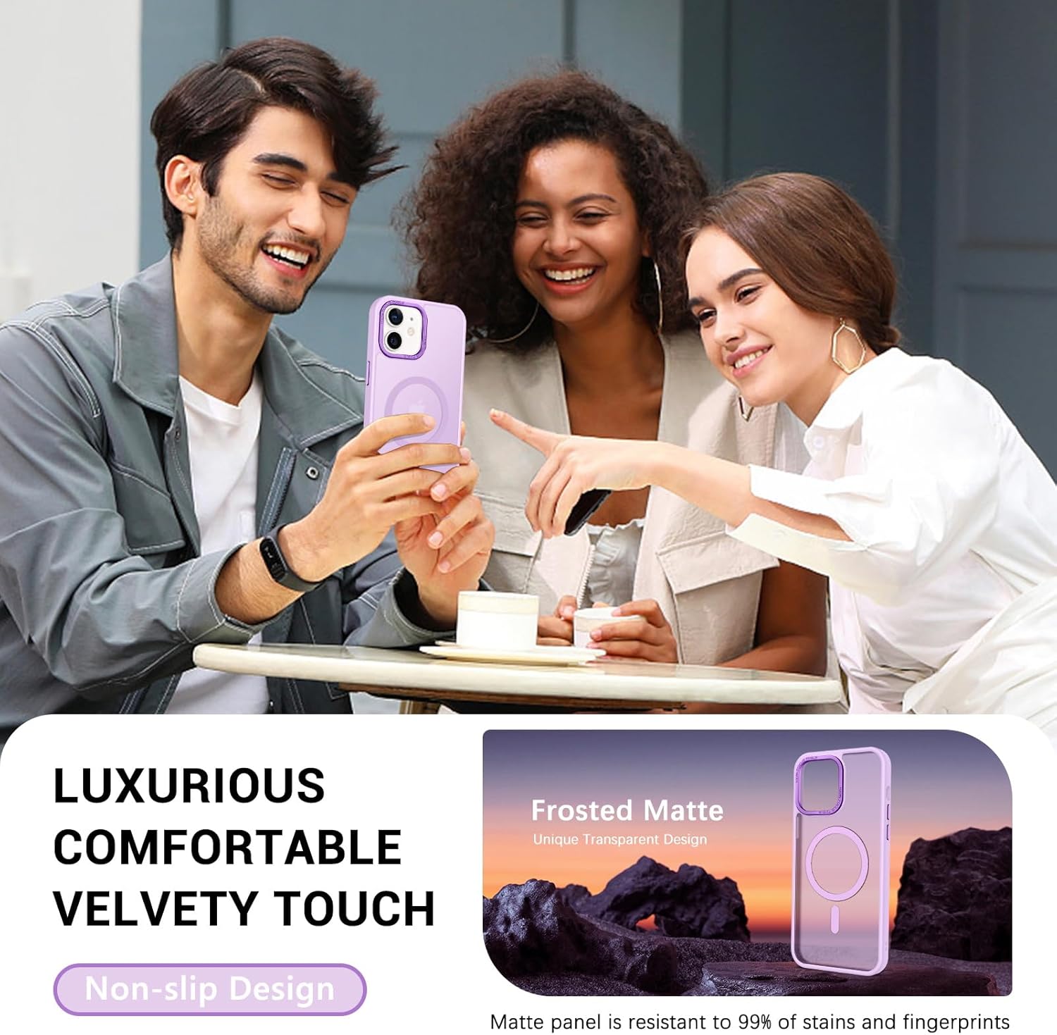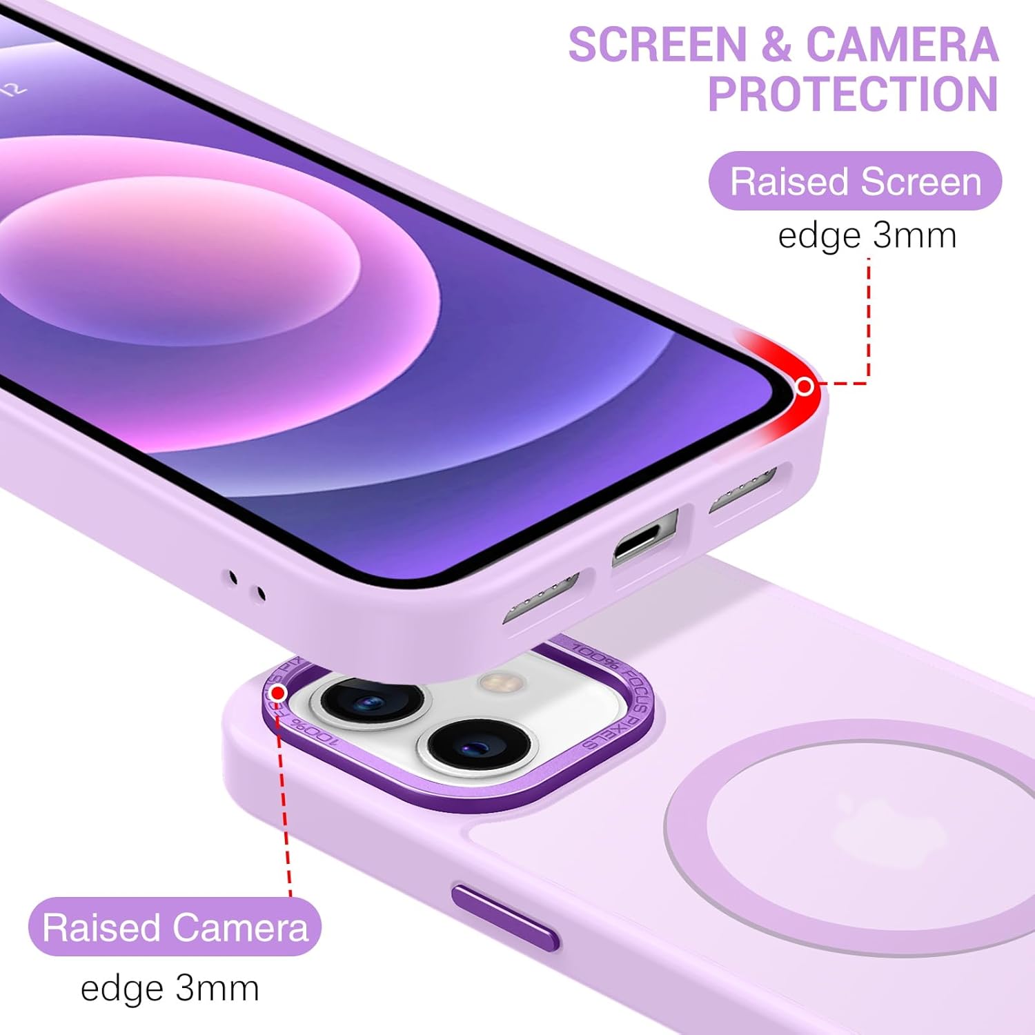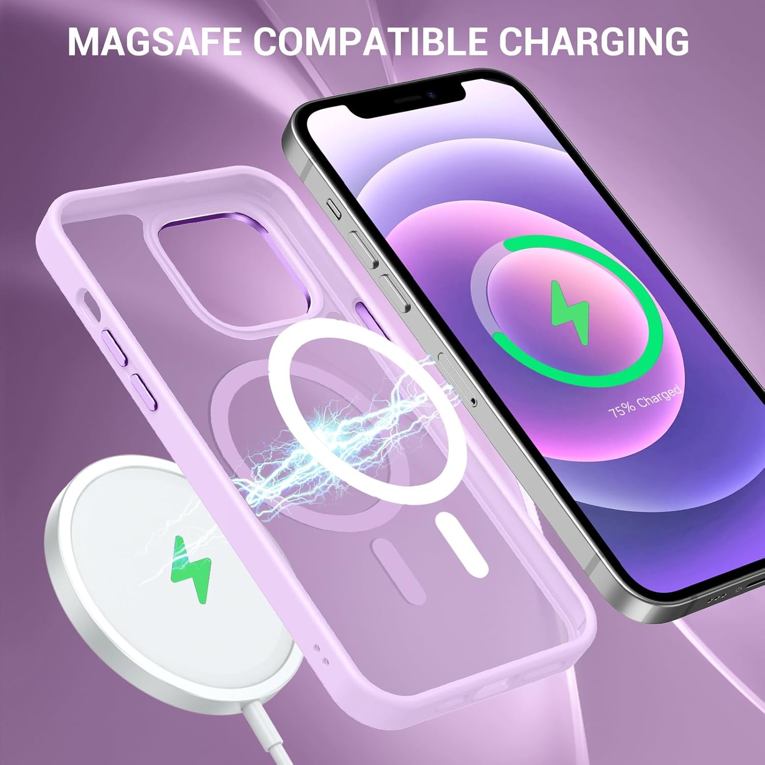 GaoBao калъф за iPhone 12, iPhone 12 Pro [съвместим с MagSafe] Прозрачен матов магнитен удароустойчив калъф за мобилен телефон против пръстови отпечатъци за iPhone 12/iPhone 12 Pro, светло лилав