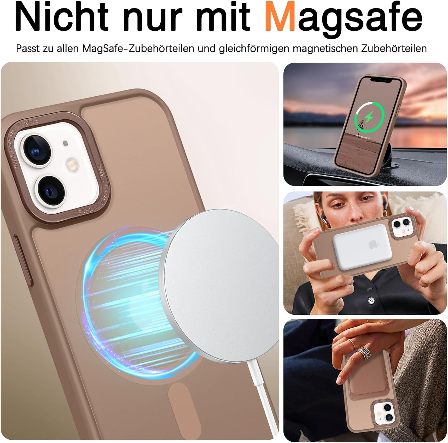 • Съвместим с Mag-Safe: Този калъф MagSafe за iPhone 12/iPhone 12 Pro разполага с вградени магнитни решетки, които здраво закрепват телефона ви към устройството, което прави безжичното магнитно зареждане лесно, без да е необходимо да сваляте калъфа.