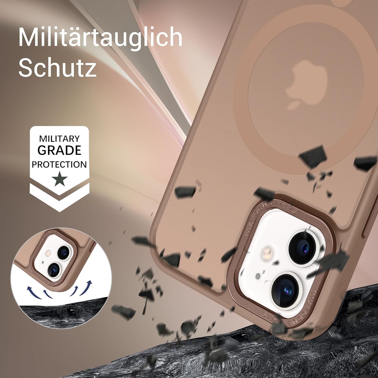 • Устойчив на надраскване и пръстови отпечатъци: Матовият гръб остава чист и е със специален дизайн, който предотвратява пръстови отпечатъци, водни петна, масло и прах. В същото време, този калъф за мобилен телефон за iPhone 12/iPhone 12 Pro осигурява отлично усещане при допир.