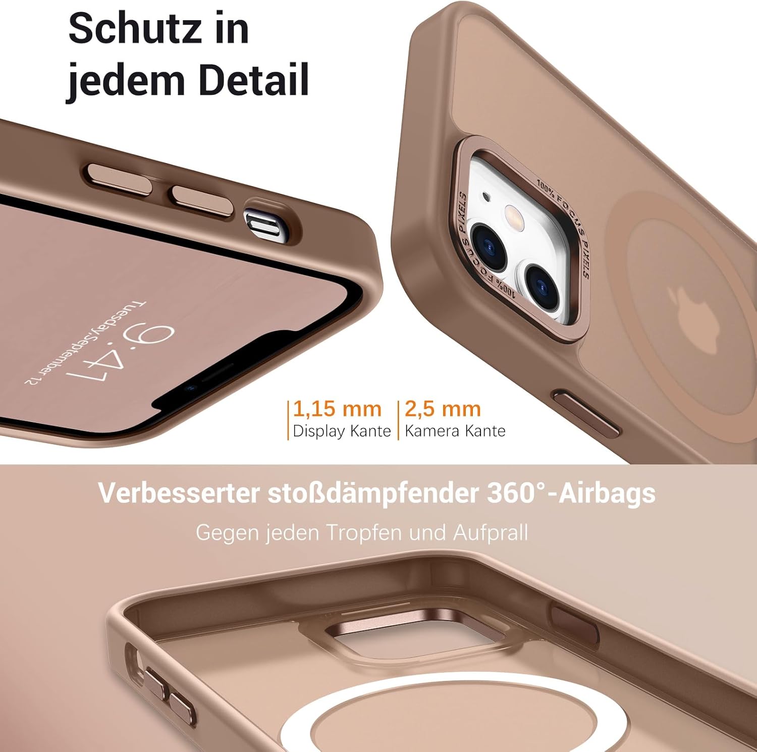 • Прозрачен, матов дизайн: Полупрозрачният гръб предотвратява замърсяването или пожълтяването на калъфа, а логото на вашия iPhone е лесно видимо. Матовата текстура осигурява по-добро сцепление и прави телефона да изглежда по-модерн.