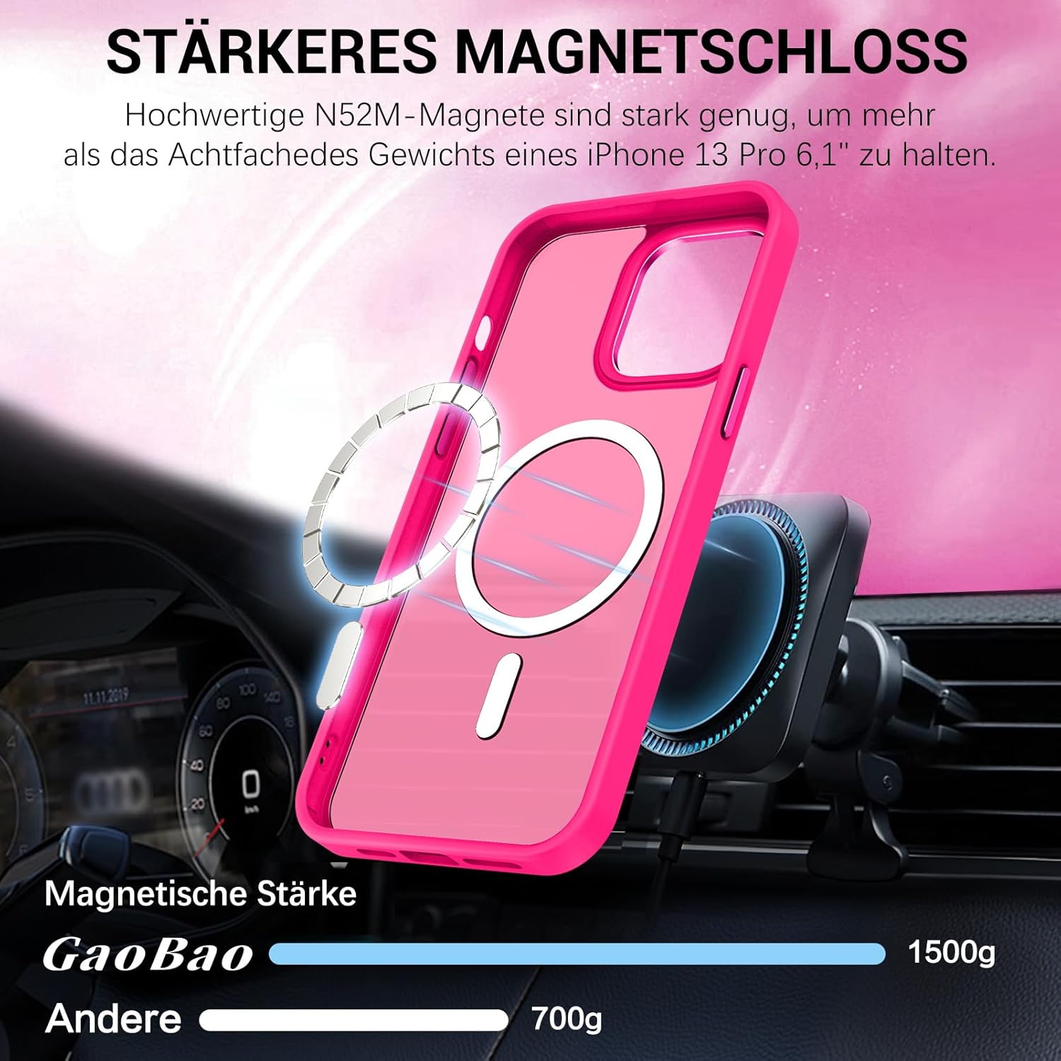 GaoBao калъф за iPhone 13 Pro, калъф за мобилен телефон iPhone 13 Pro [съвместим с MagSafe] полупрозрачен матов магнитен удароустойчив калъф против пръстови отпечатъци за 6.1 инча, розовочервен