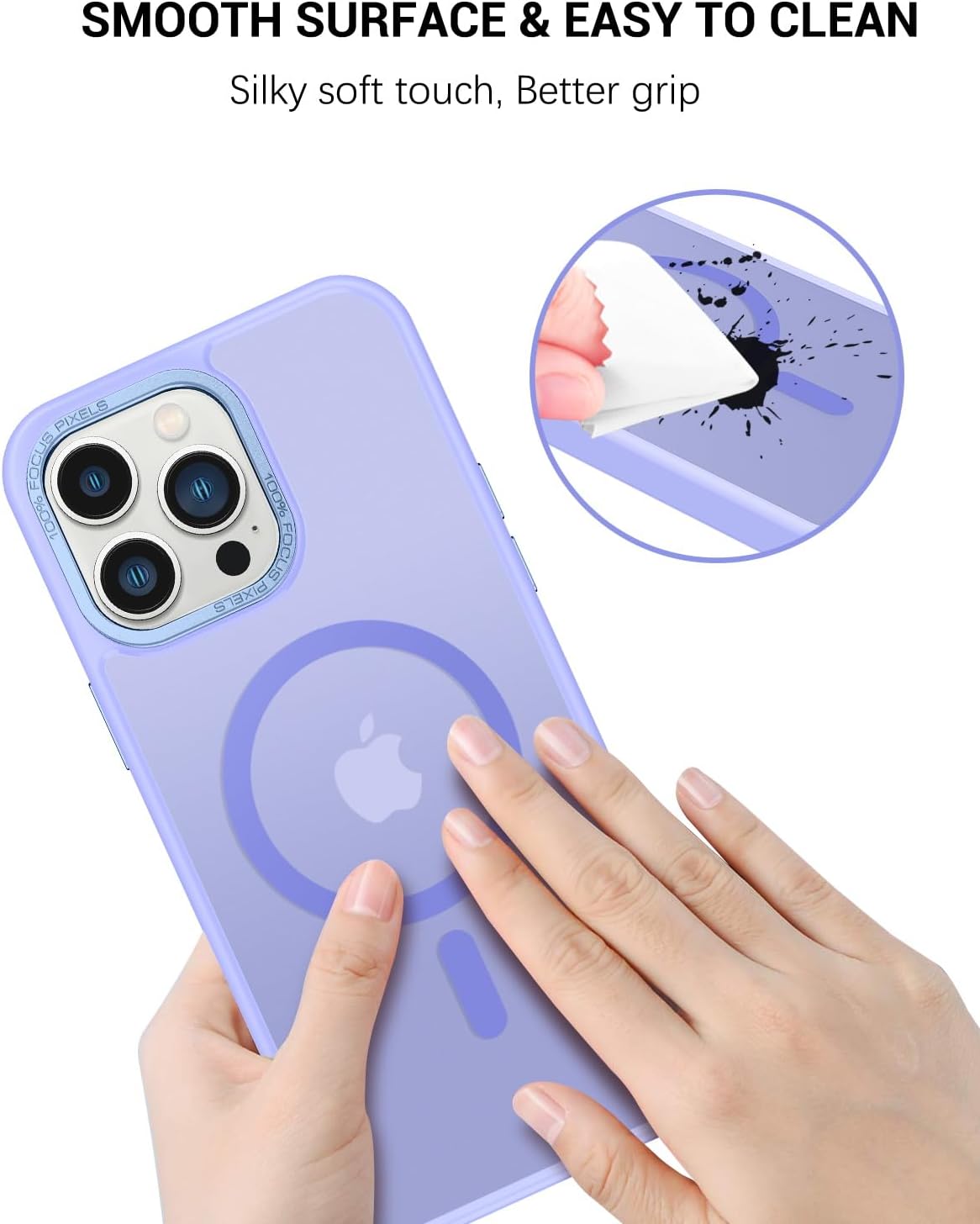 • Прозрачен, матов дизайн: Полупрозрачният гръб предотвратява замърсяването или пожълтяването на калъфа, а логото на вашия iPhone е лесно видимо. Матовата текстура осигурява по-добро сцепление и прави телефона да изглежда по-модерн.
