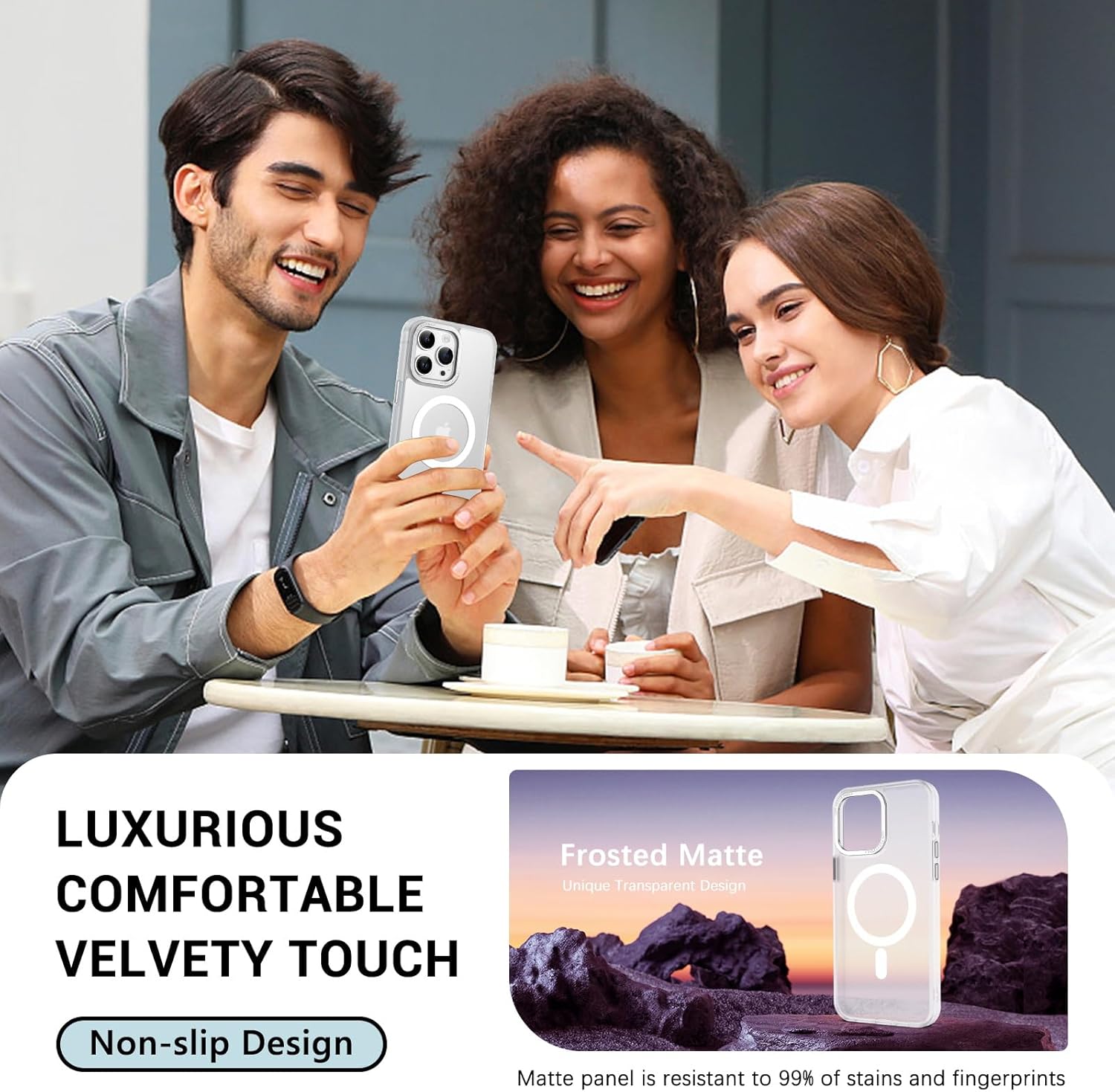 • Прозрачен, матов дизайн: Полупрозрачният гръб предотвратява замърсяването или пожълтяването на калъфа, а логото на вашия iPhone е лесно видимо. Матовата текстура осигурява по-добро сцепление и прави телефона да изглежда по-модерн.