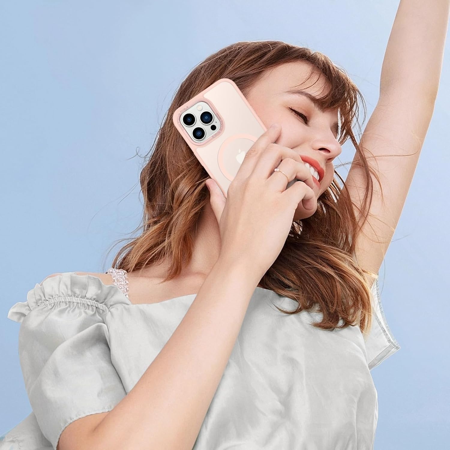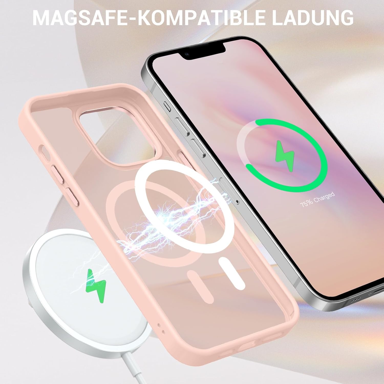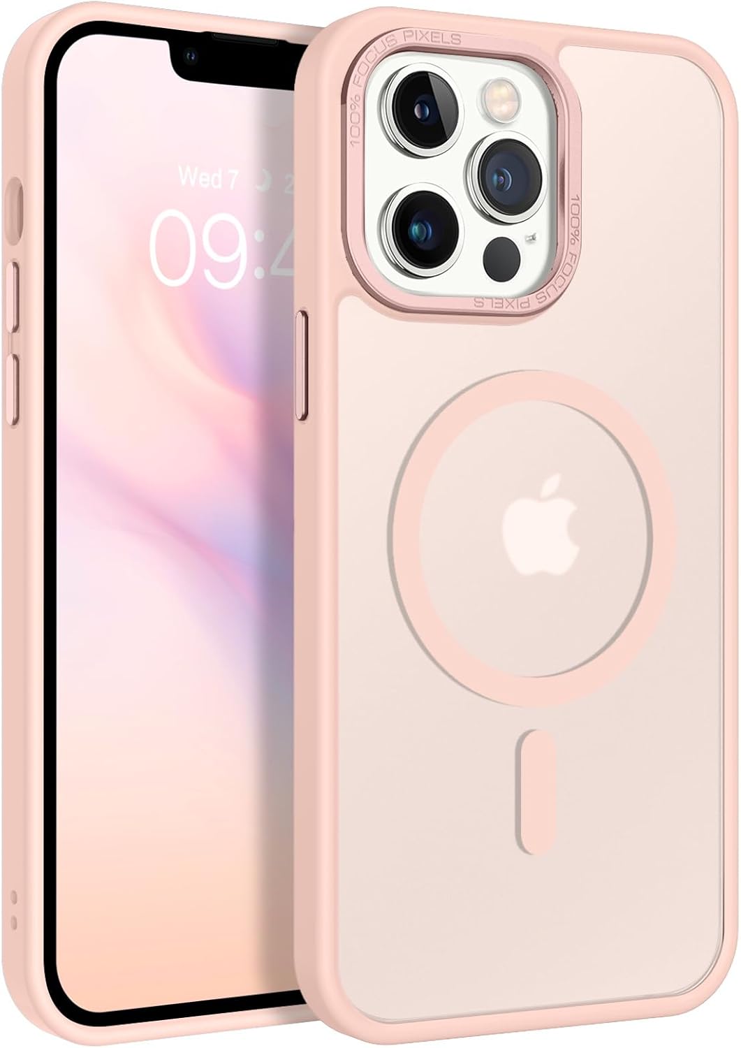 GaoBao калъф за iPhone 13 Pro, калъф за мобилен телефон iPhone 13 Pro [съвместим с MagSafe] полупрозрачен матов магнитен удароустойчив калъф против пръстови отпечатъци за iPhone 13 Pro 6.1 инча, розов