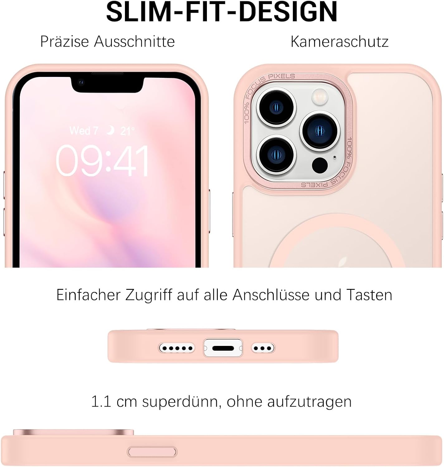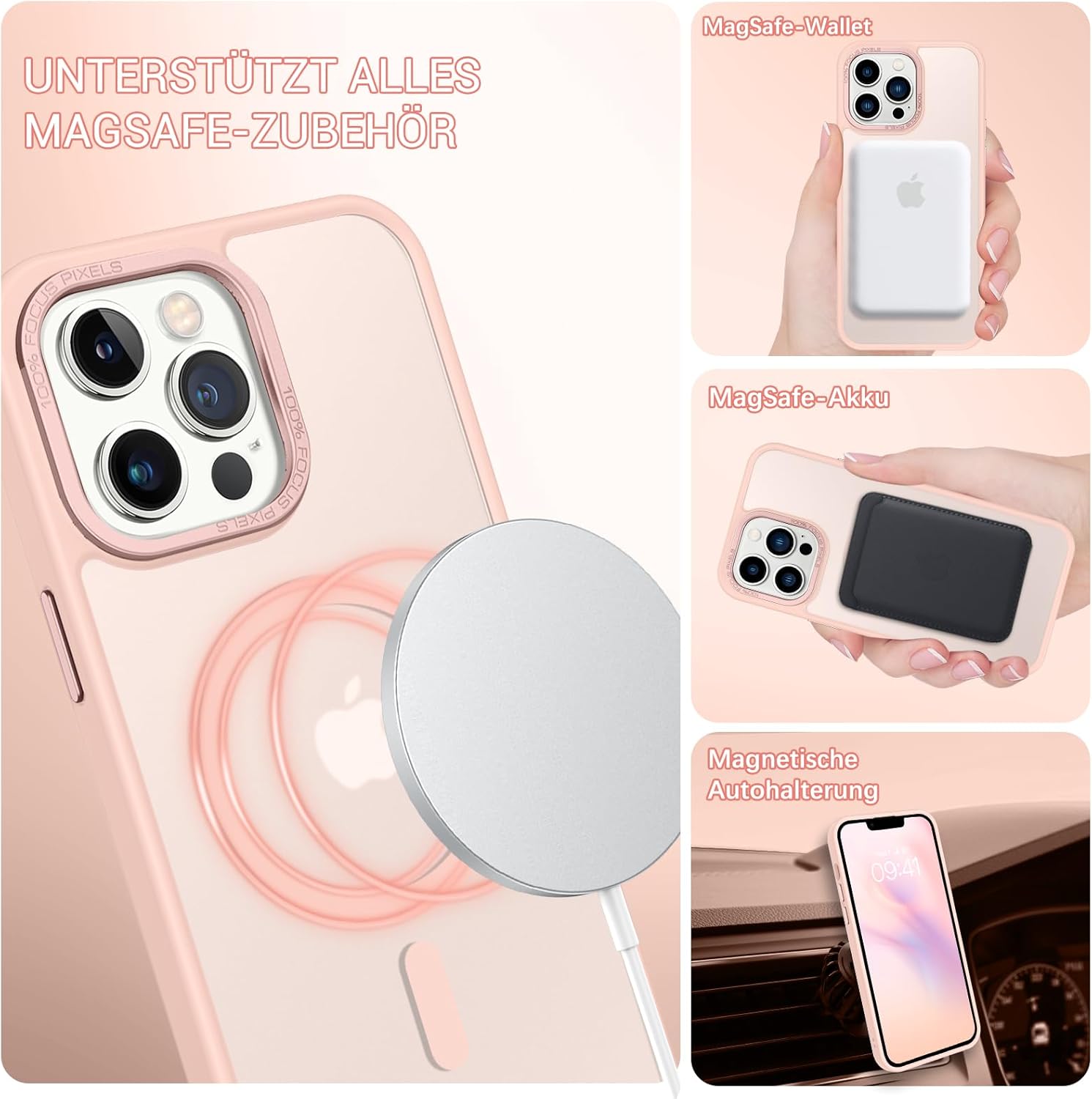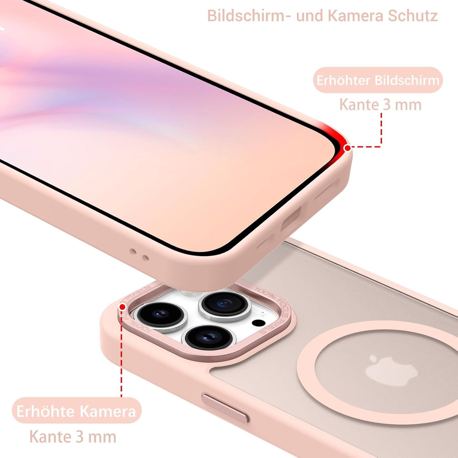 GaoBao калъф за iPhone 13 Pro, калъф за мобилен телефон iPhone 13 Pro [съвместим с MagSafe] полупрозрачен матов магнитен удароустойчив калъф против пръстови отпечатъци за iPhone 13 Pro 6.1 инча, розов