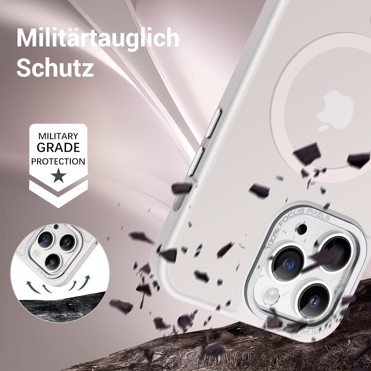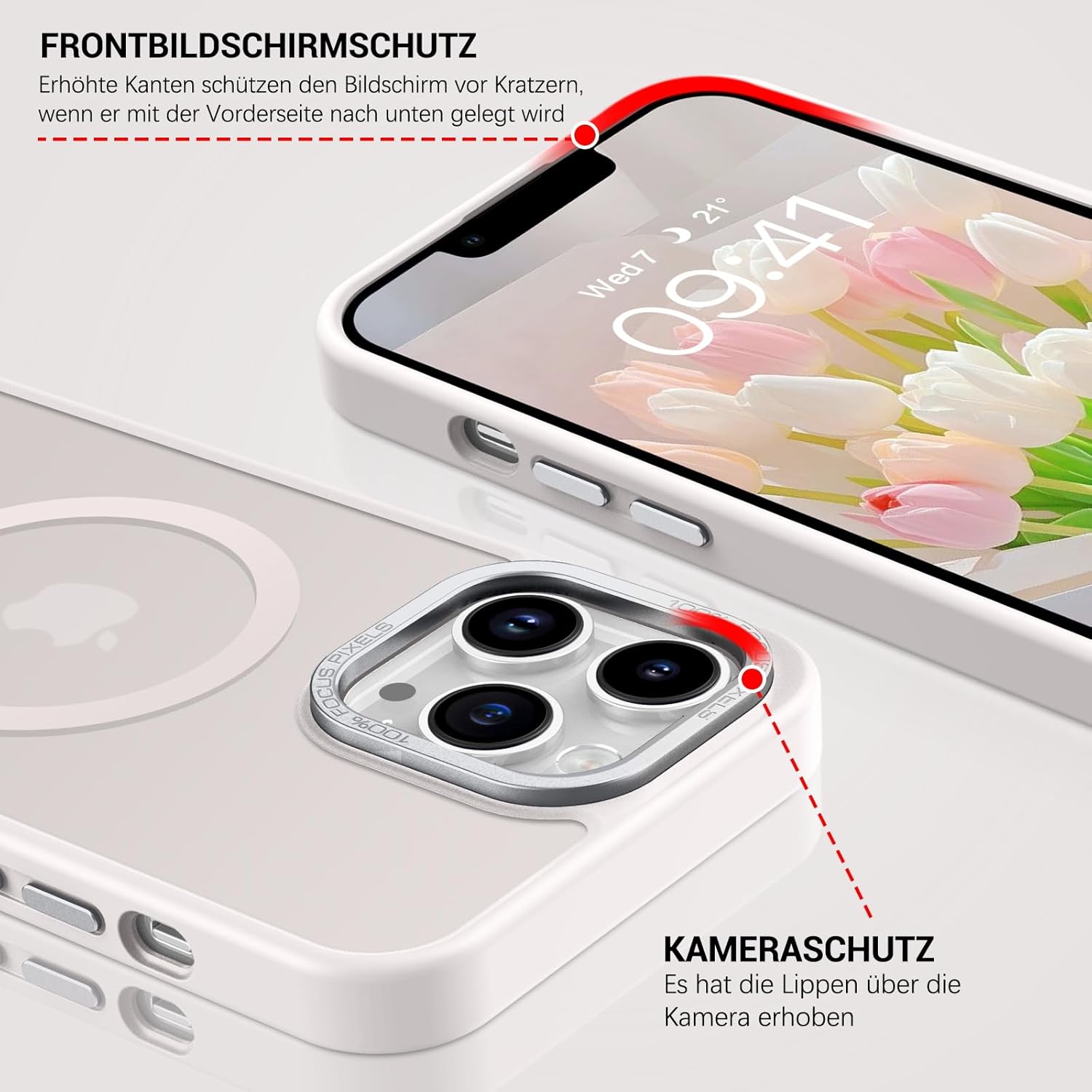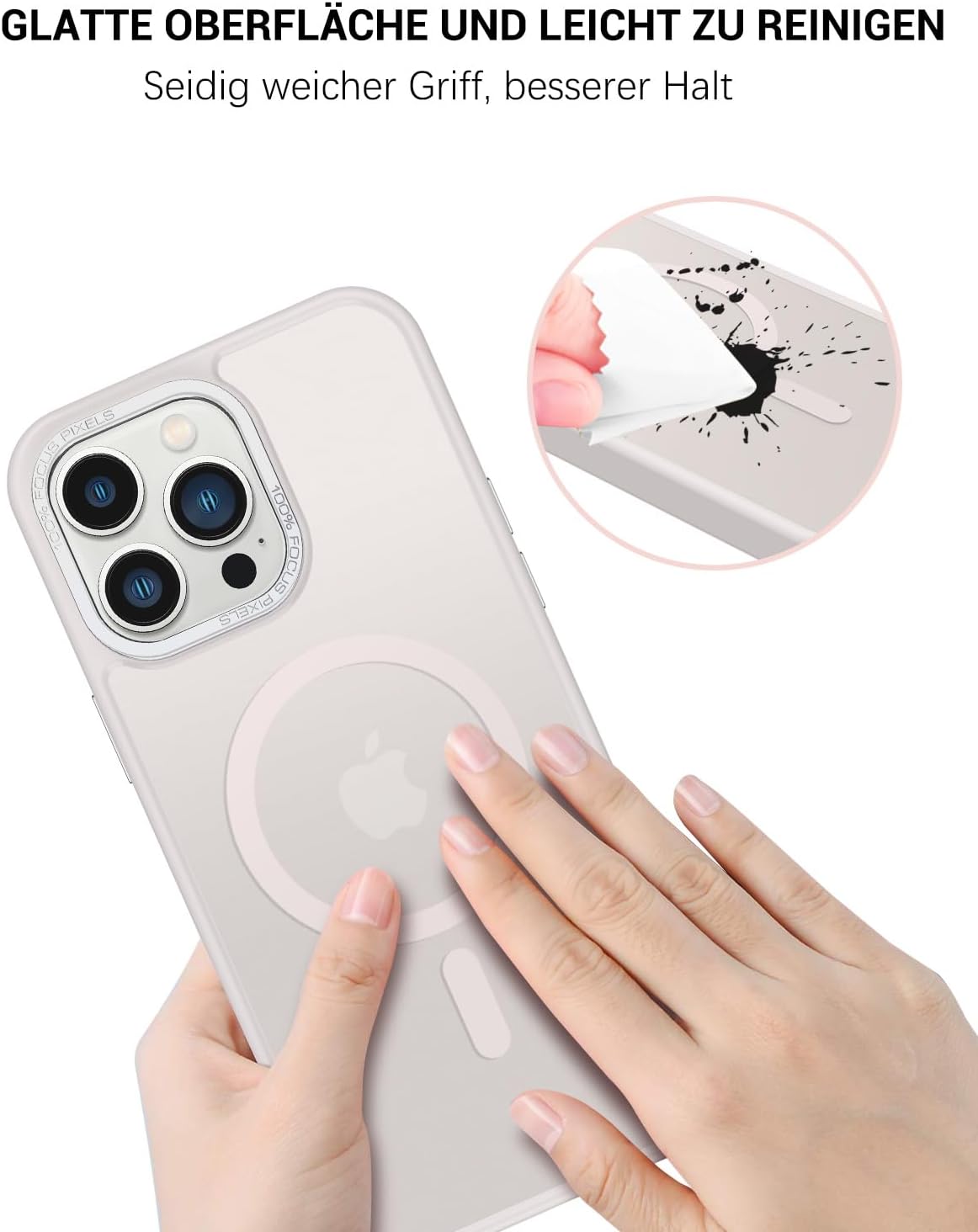 • Прозрачен, матов дизайн: Полупрозрачният гръб предотвратява замърсяването или пожълтяването на калъфа, а логото на вашия iPhone е лесно видимо. Матовата текстура осигурява по-добро сцепление и прави телефона да изглежда по-модерн.