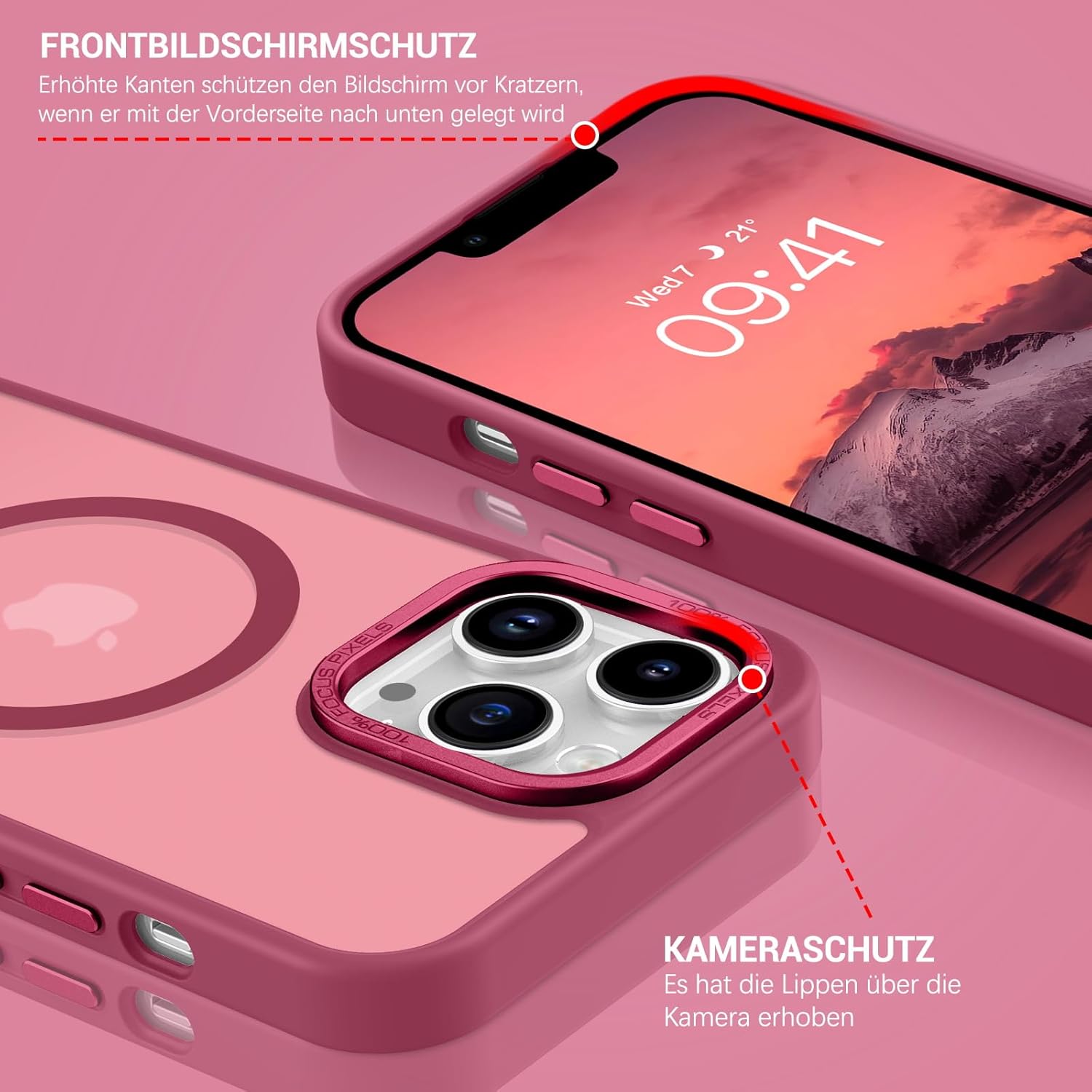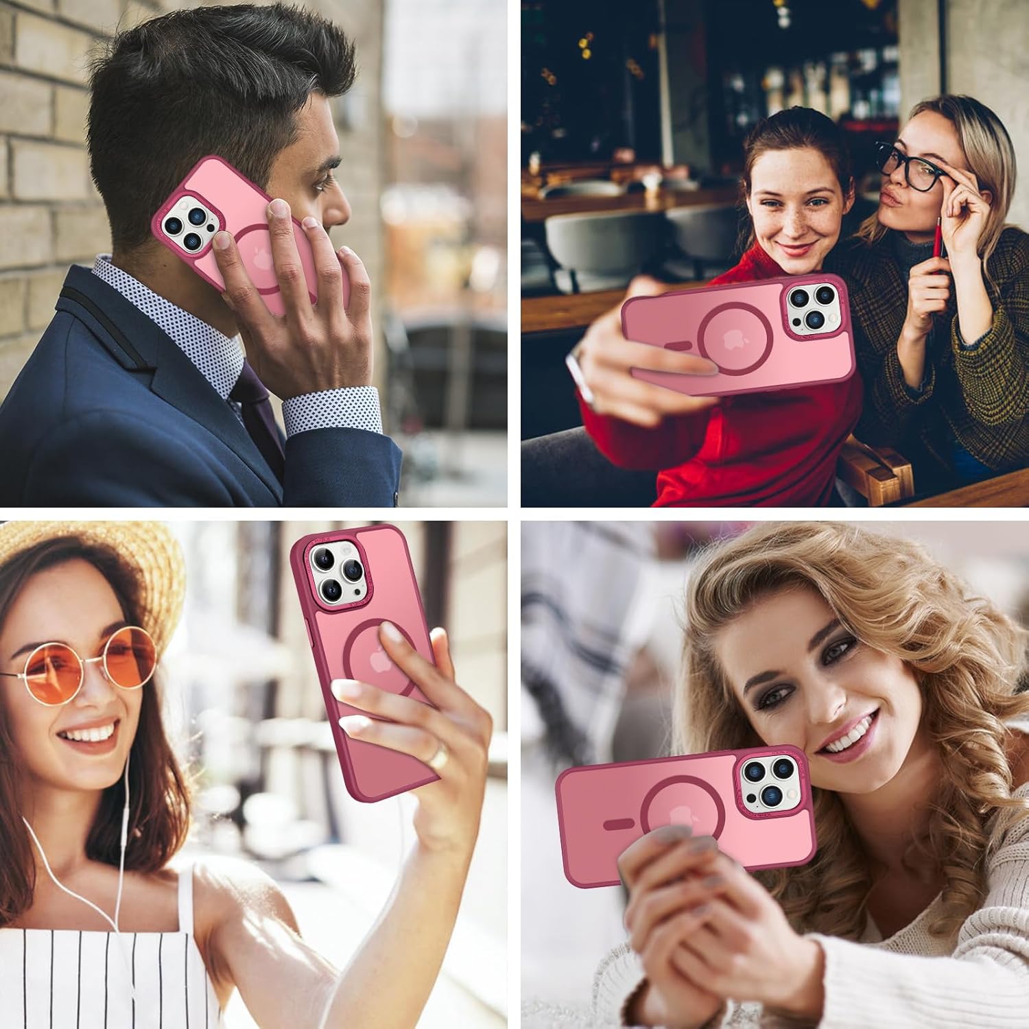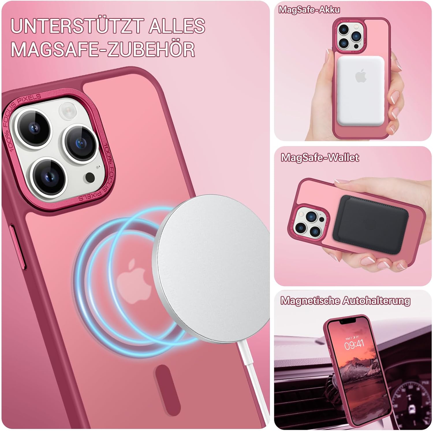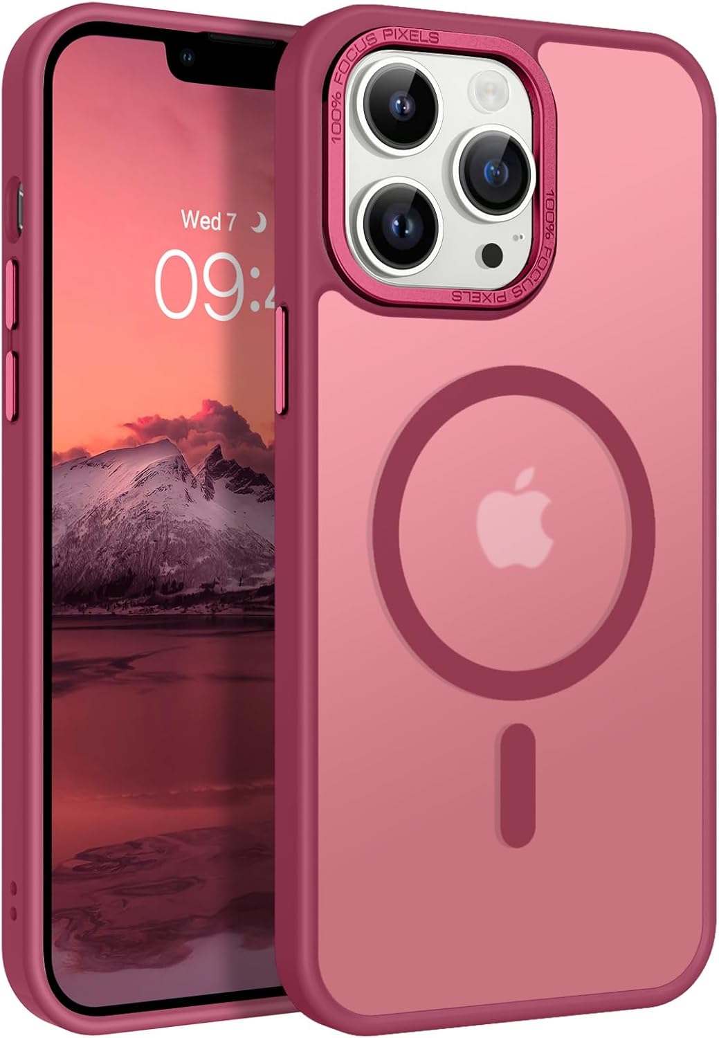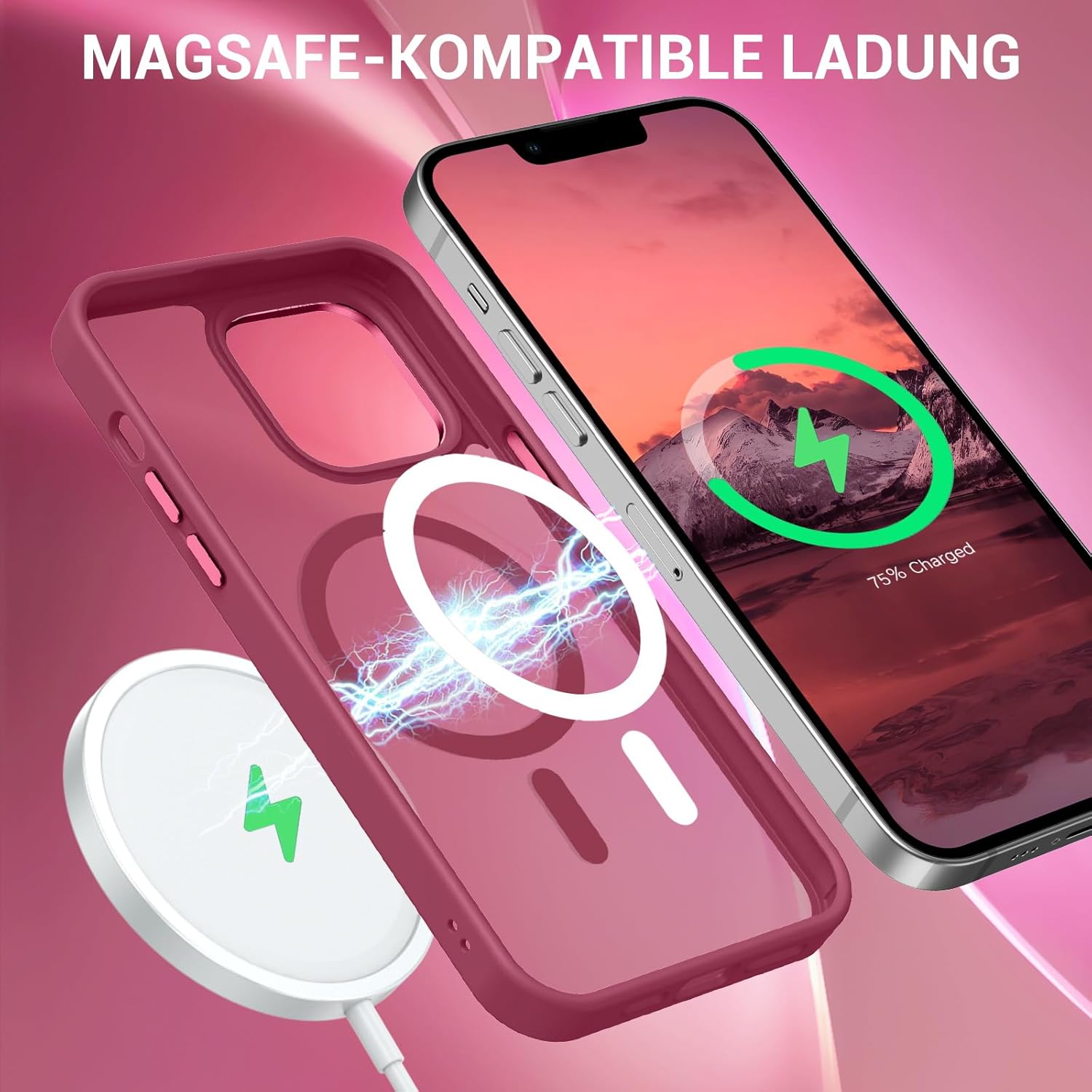 GaoBao калъф за iPhone 13 Pro, калъф за мобилен телефон iPhone 13 Pro [съвместим с MagSafe] полупрозрачен матов магнитен удароустойчив калъф против пръстови отпечатъци за iPhone 13 Pro 6.1 инча, тъмночервен
