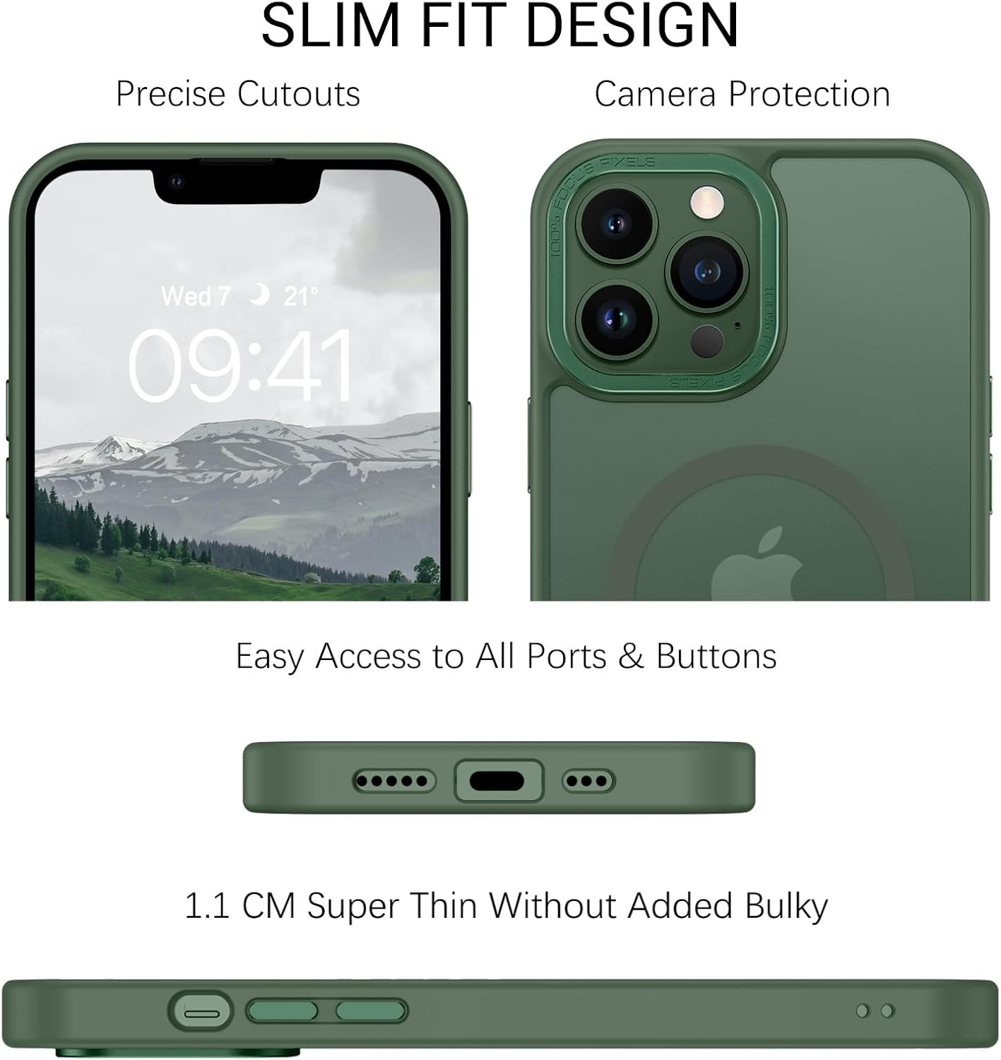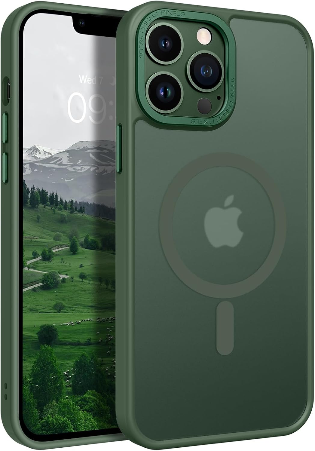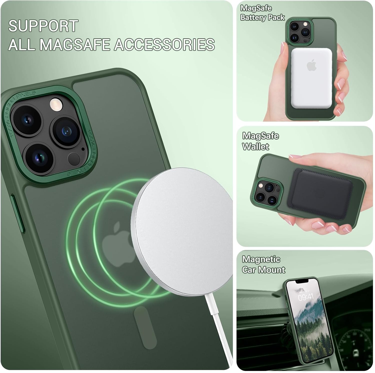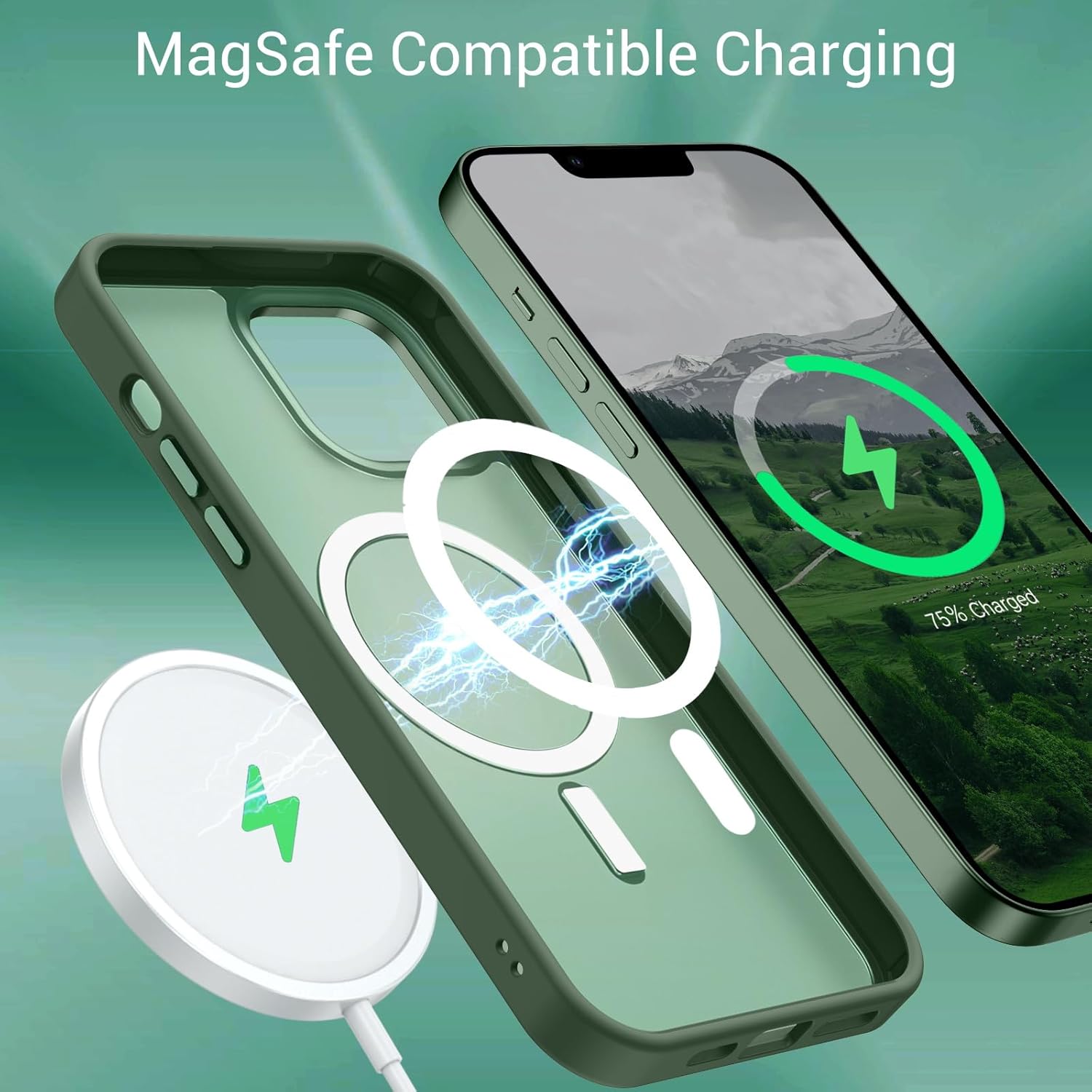 GaoBao калъф за iPhone 13 Pro, калъф за мобилен телефон [съвместим с MagSafe] полупрозрачен матов магнитен удароустойчив калъф против пръстови отпечатъци за 6.1 инча, зелен