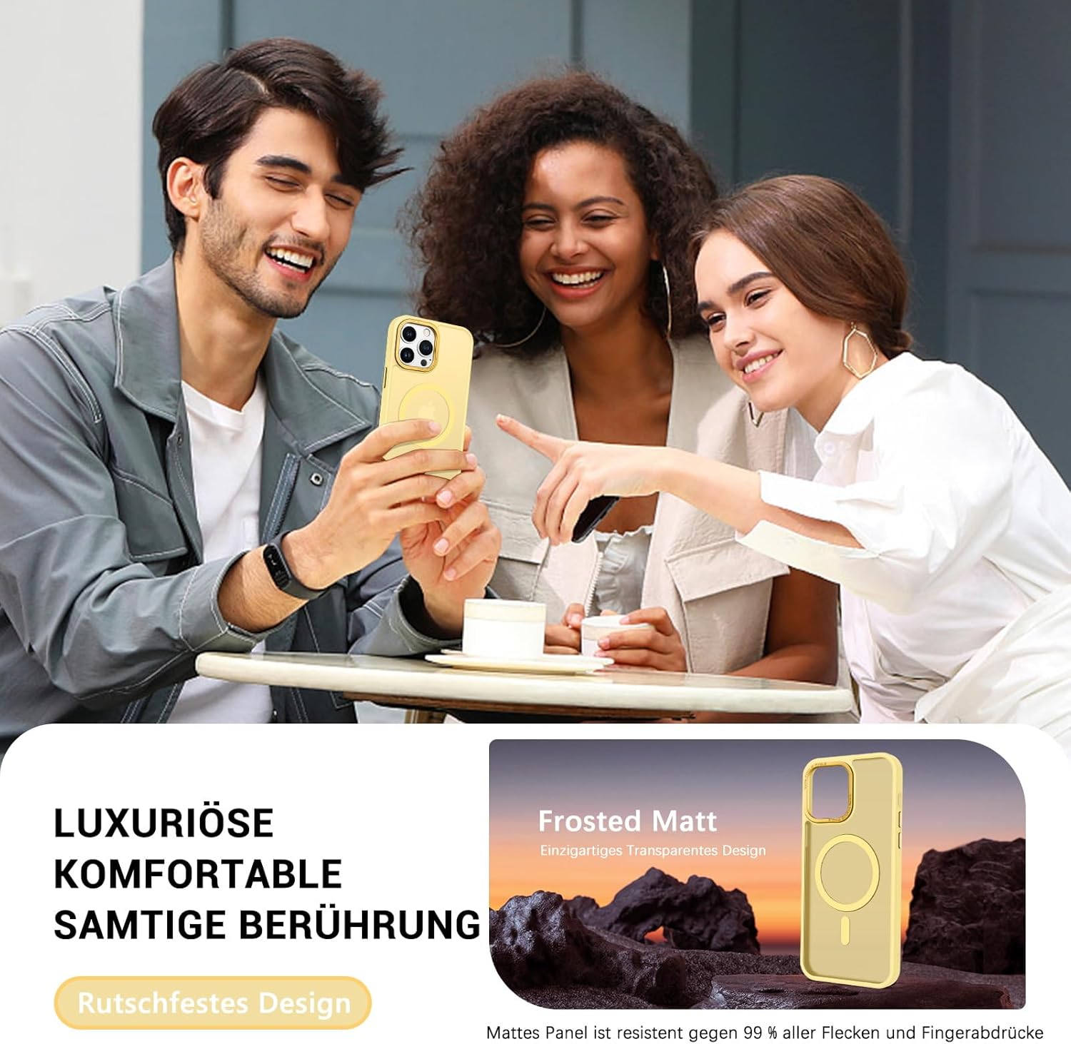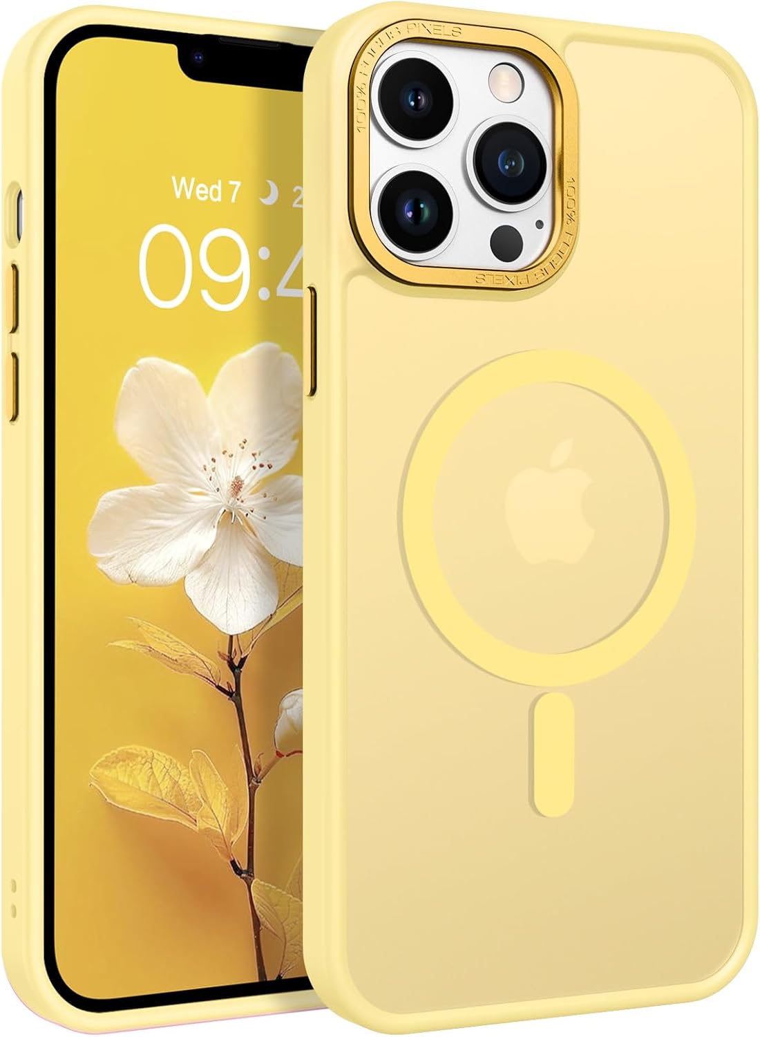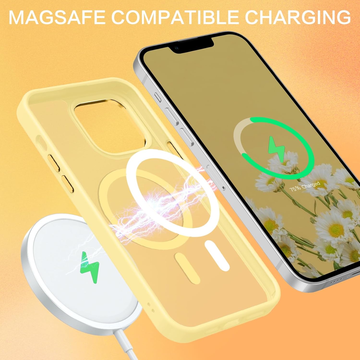 GaoBao калъф за iPhone 13 Pro Max, калъф за мобилен телефон iPhone 13 Pro Max [съвместим с MagSafe] полупрозрачен матов магнитен удароустойчив калъф против пръстови отпечатъци 6.7 инча, жълт