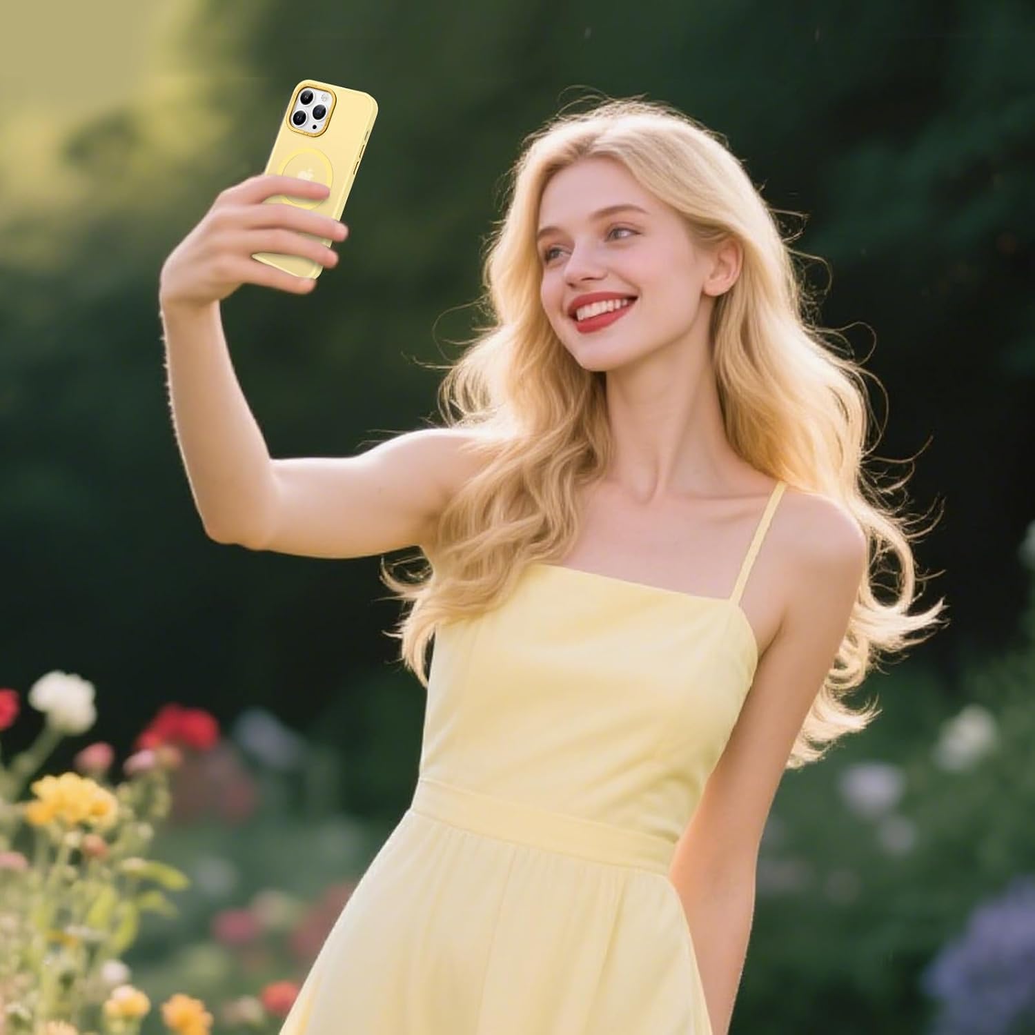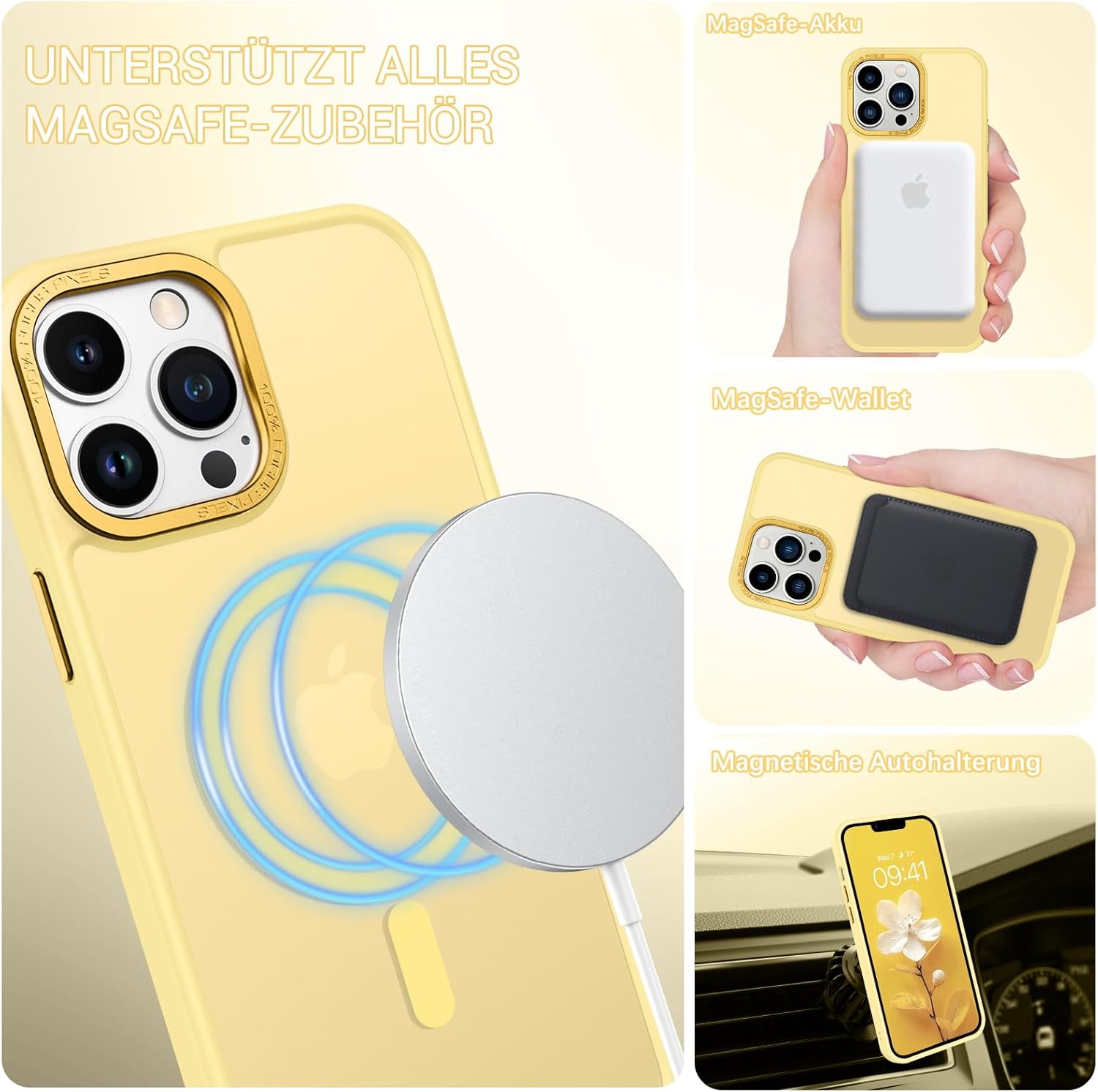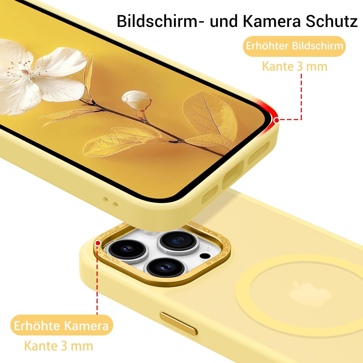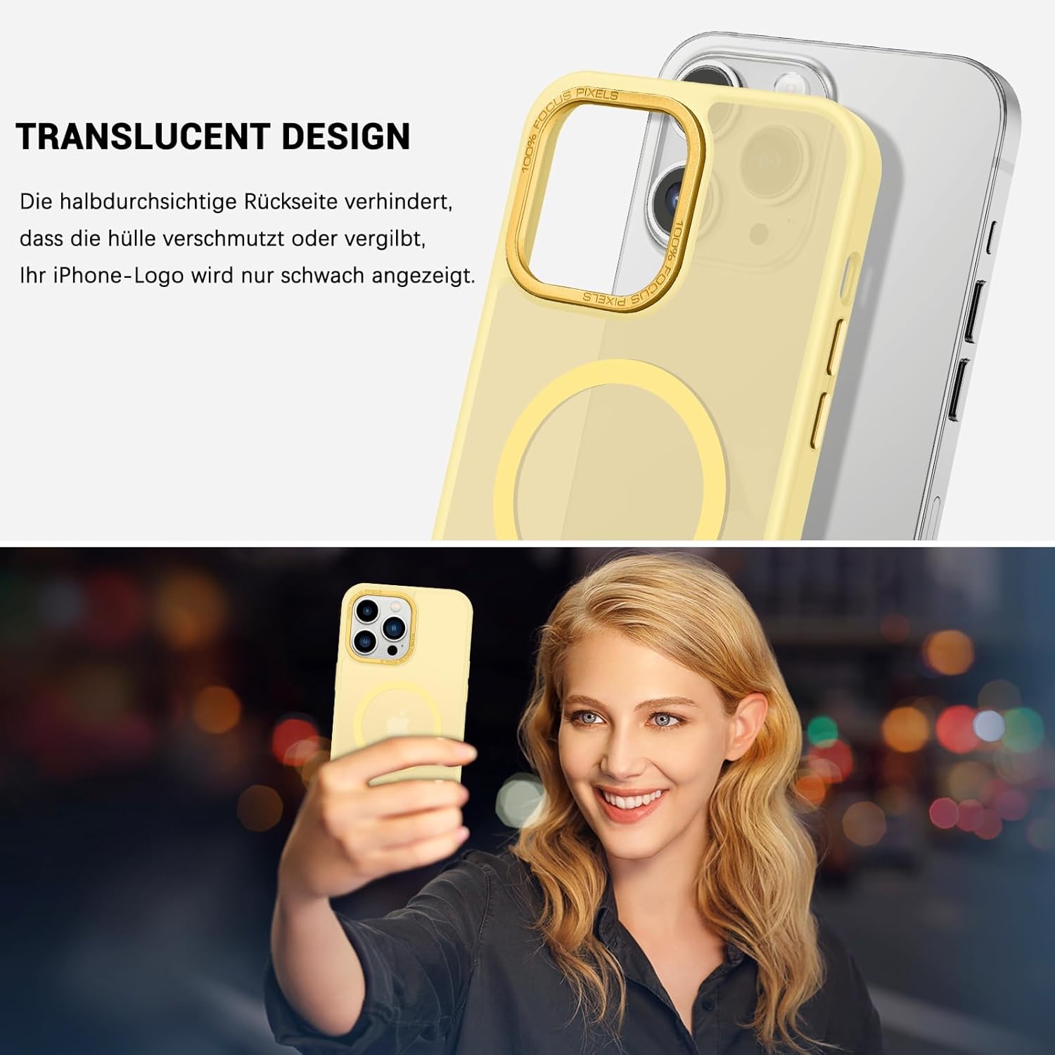 GaoBao калъф за iPhone 13 Pro Max, калъф за мобилен телефон iPhone 13 Pro Max [съвместим с MagSafe] полупрозрачен матов магнитен удароустойчив калъф против пръстови отпечатъци 6.7 инча, жълт