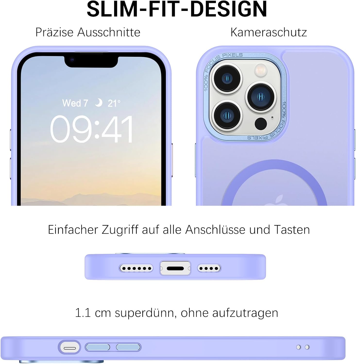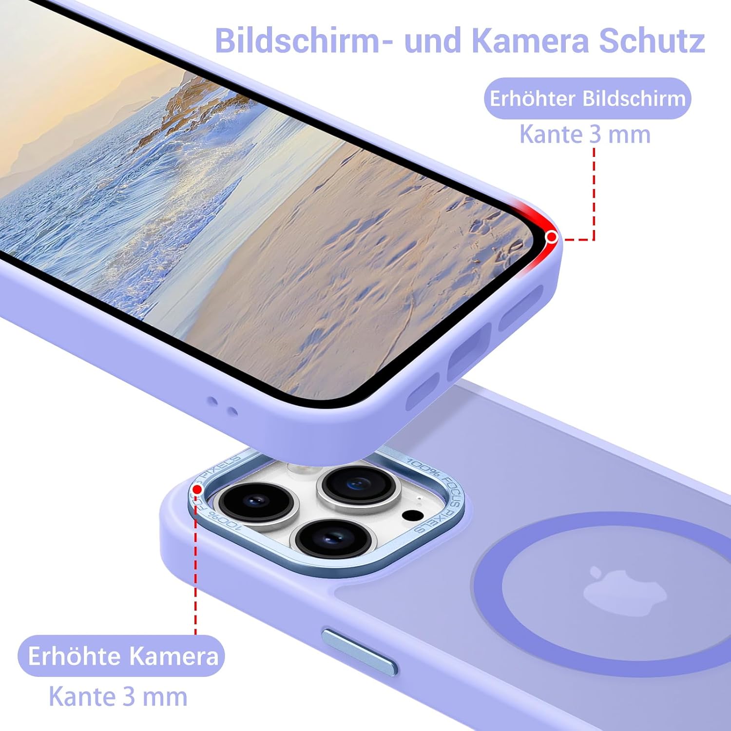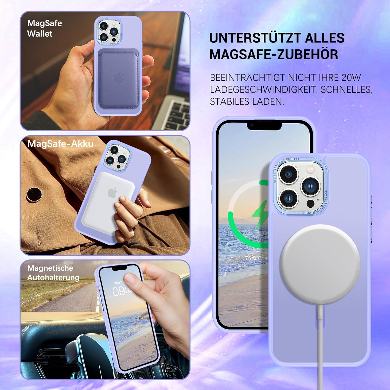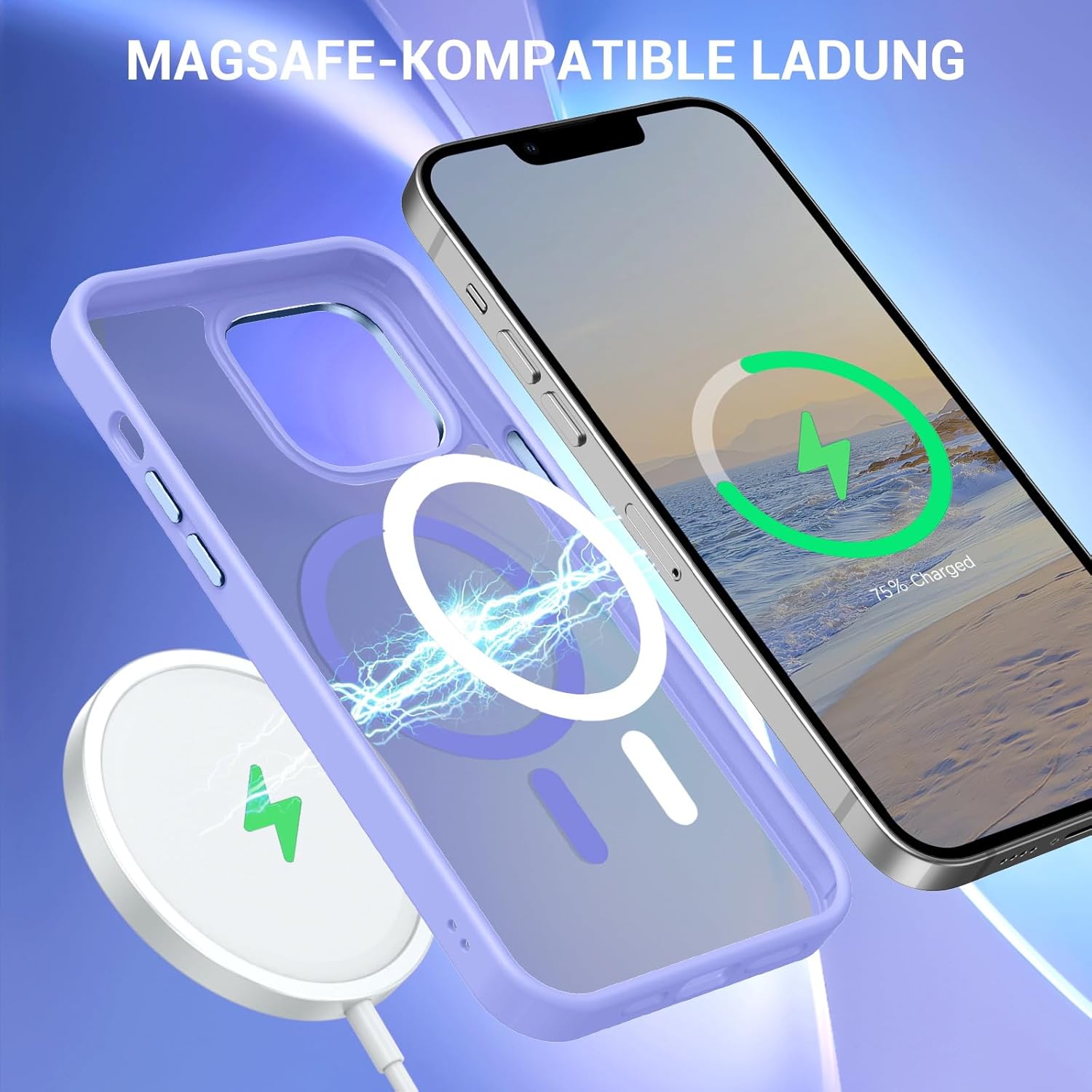 GaoBao калъф за iPhone 13 Pro Max, калъф за мобилен телефон iPhone 13 Pro Max [съвместим с MagSafe] полупрозрачен матов магнитен удароустойчив калъф против пръстови отпечатъци 6.7 инча, лавандулов