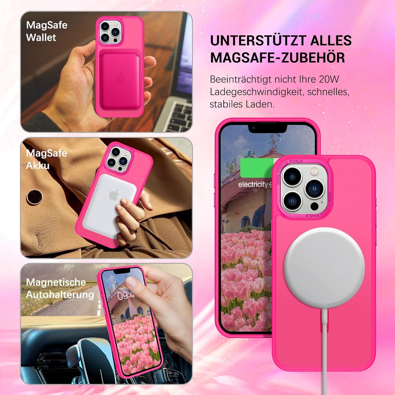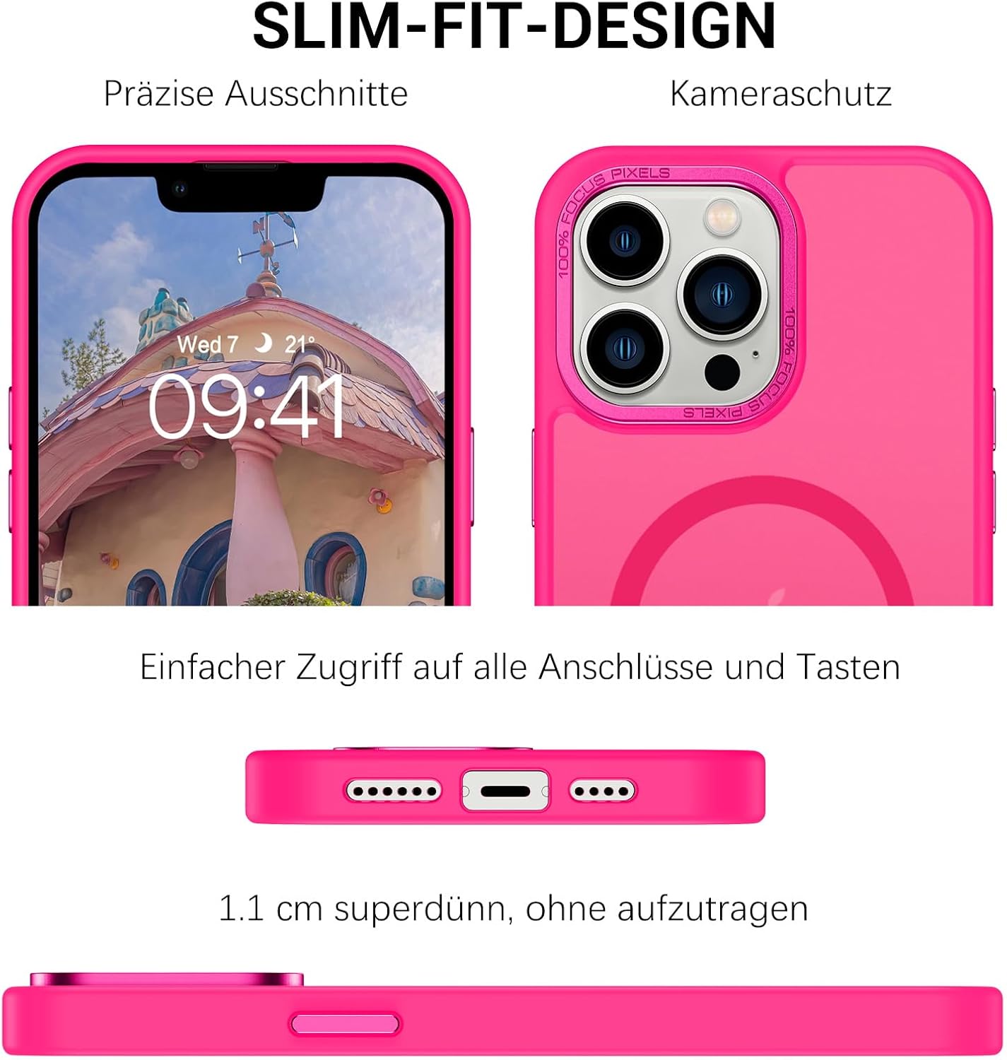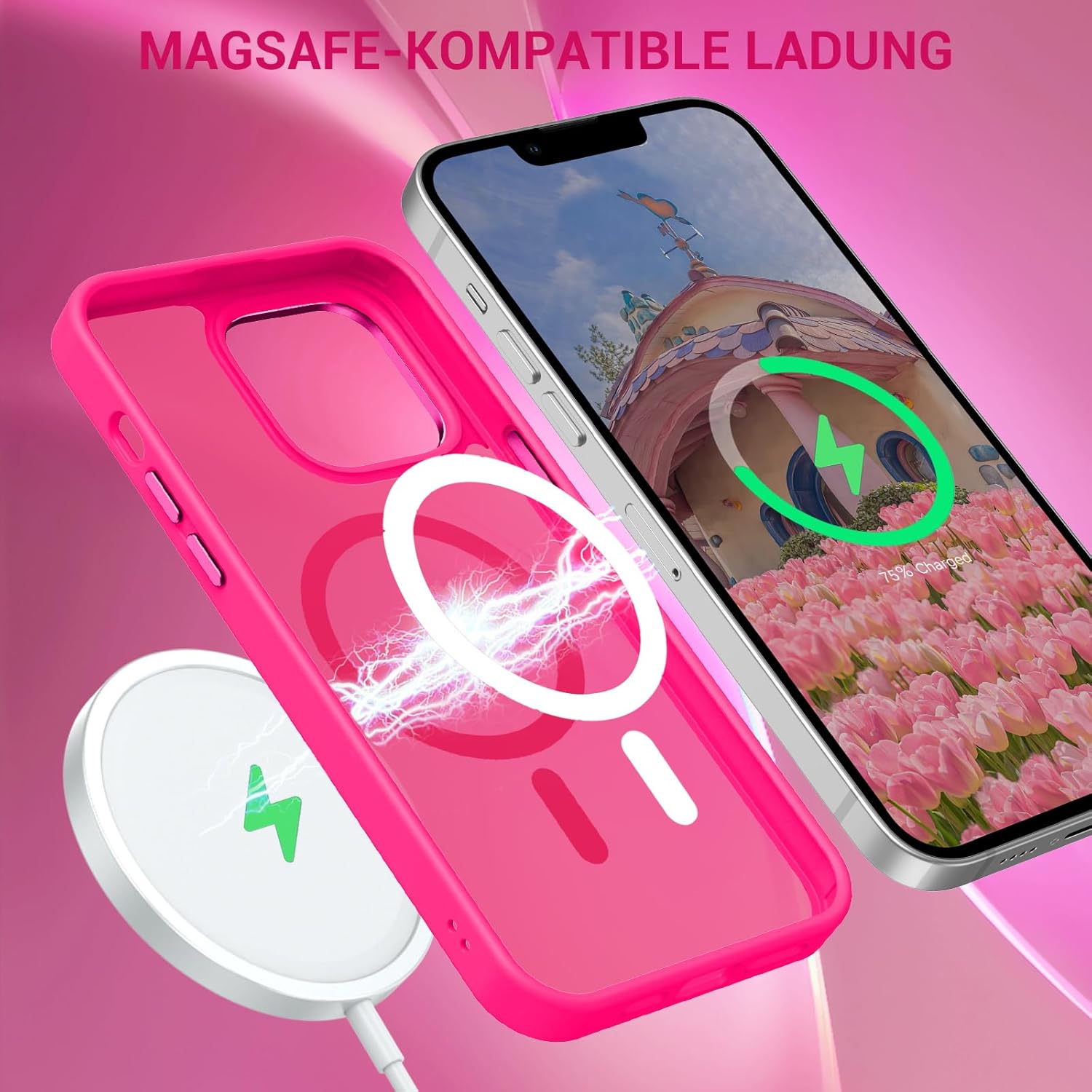 GaoBao калъф за iPhone 13 Pro Max, калъф за мобилен телефон iPhone 13 Pro Max [съвместим с MagSafe] полупрозрачен матов магнитен удароустойчив калъф против пръстови отпечатъци 6.7 инча, розовочервен
