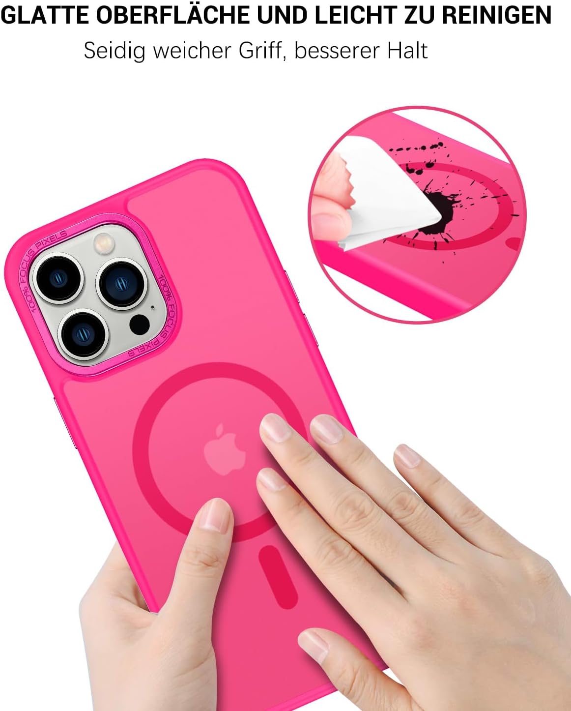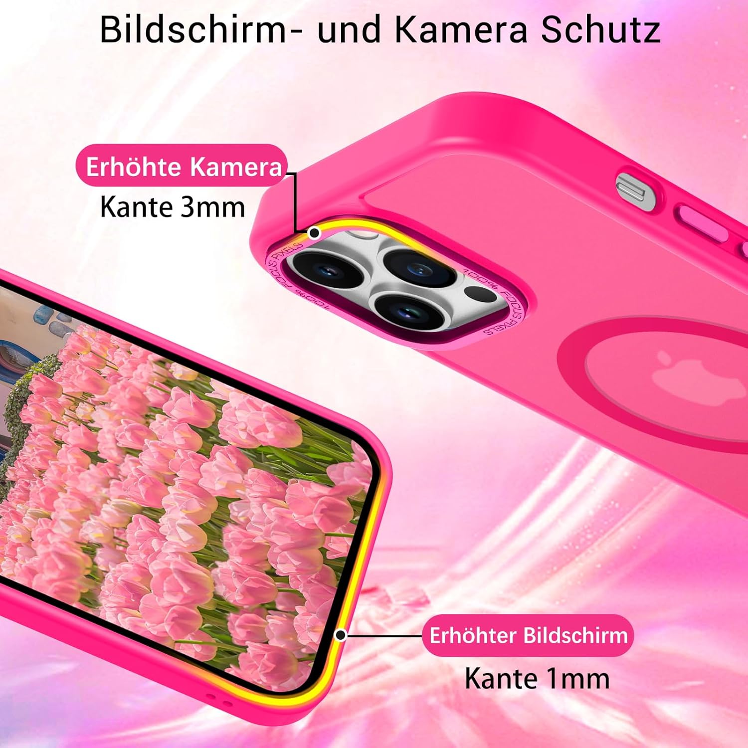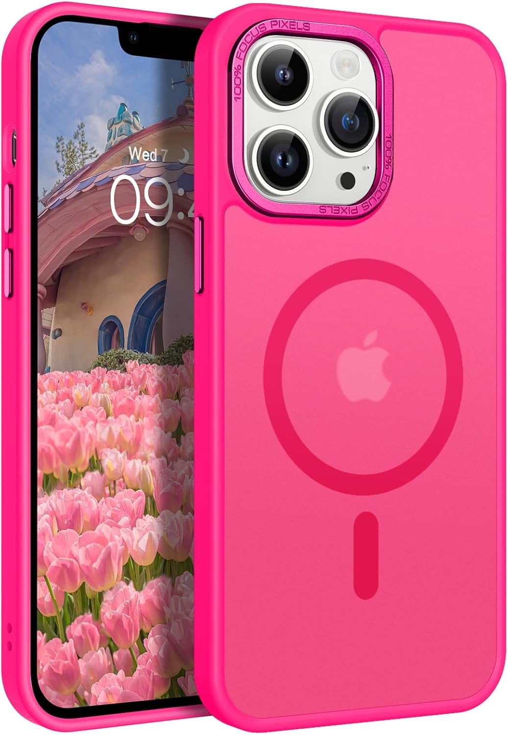 GaoBao калъф за iPhone 13 Pro Max, калъф за мобилен телефон iPhone 13 Pro Max [съвместим с MagSafe] полупрозрачен матов магнитен удароустойчив калъф против пръстови отпечатъци 6.7 инча, розовочервен