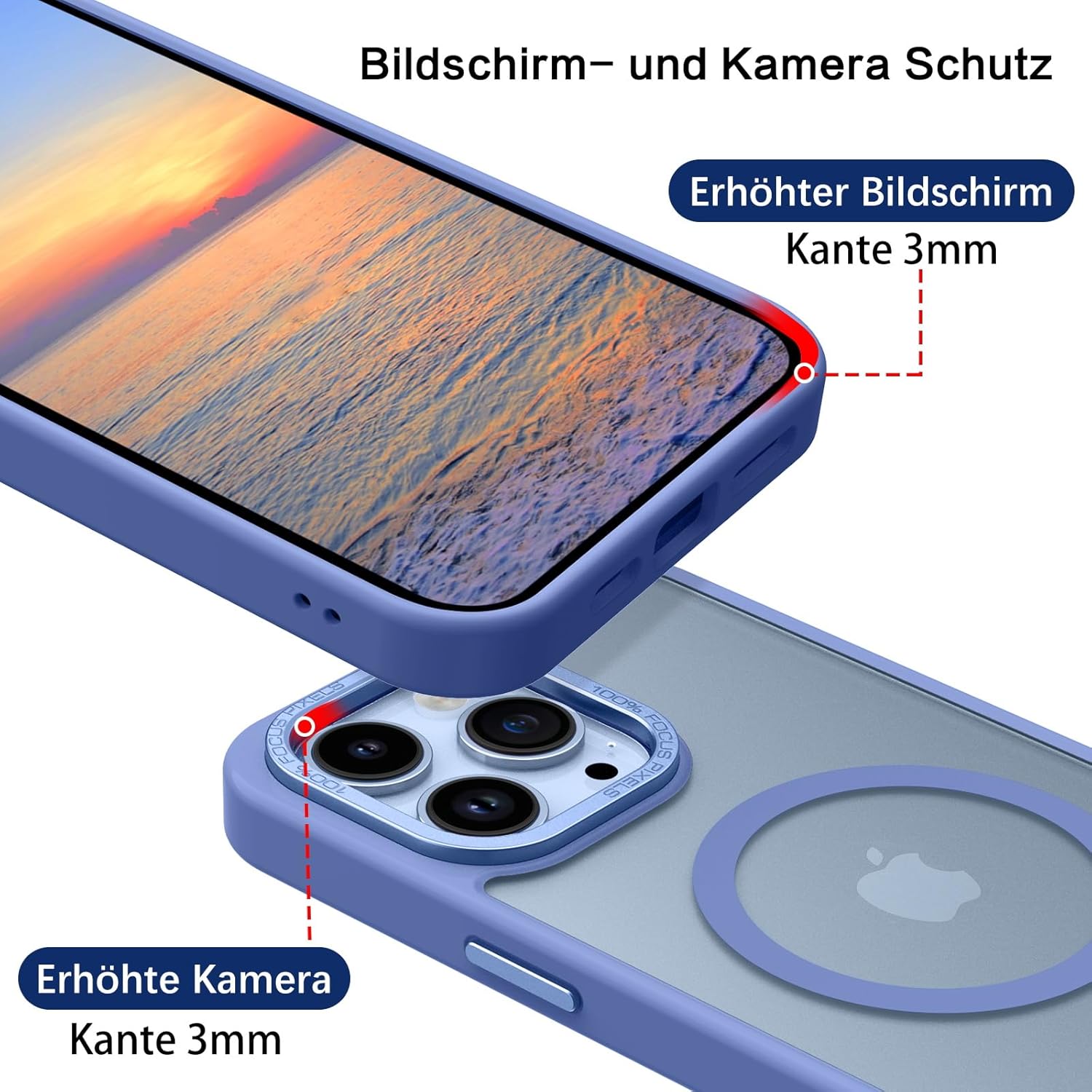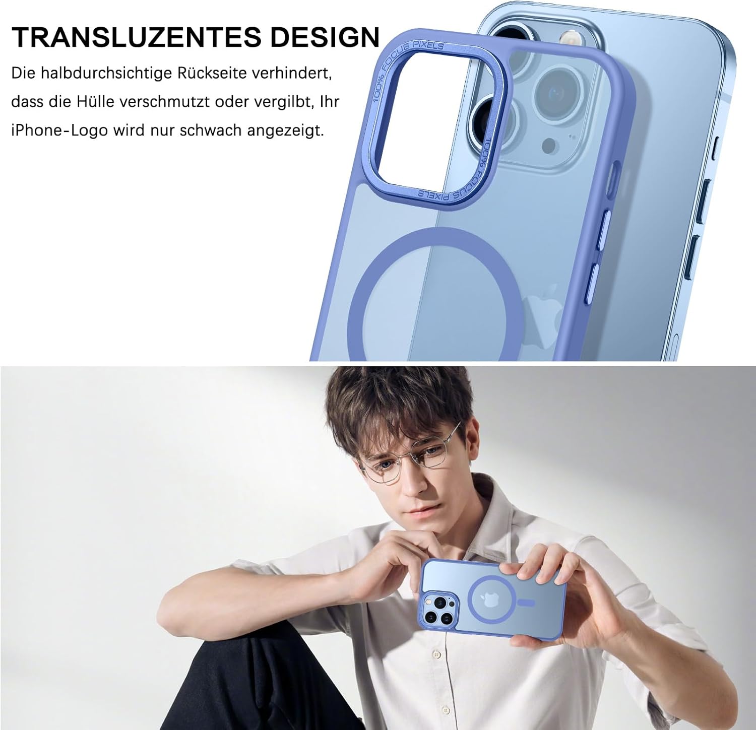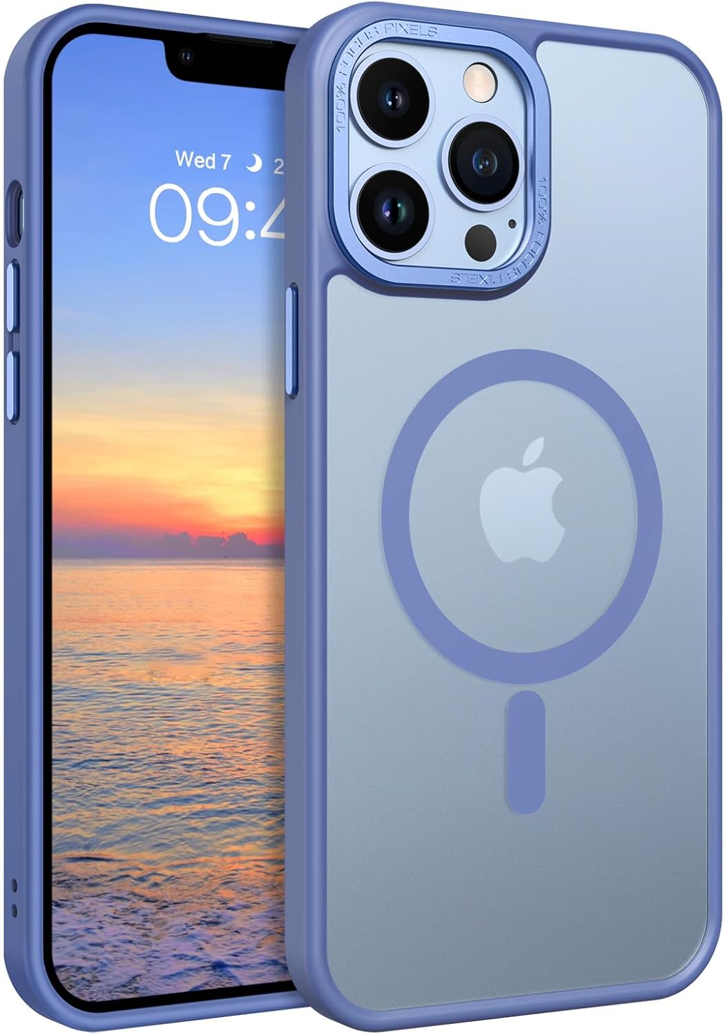 GaoBao калъф за iPhone 13 Pro Max, калъф за мобилен телефон iPhone 13 Pro Max [съвместим с MagSafe] полупрозрачен матов магнитен удароустойчив калъф против пръстови отпечатъци 6.7 инча, син