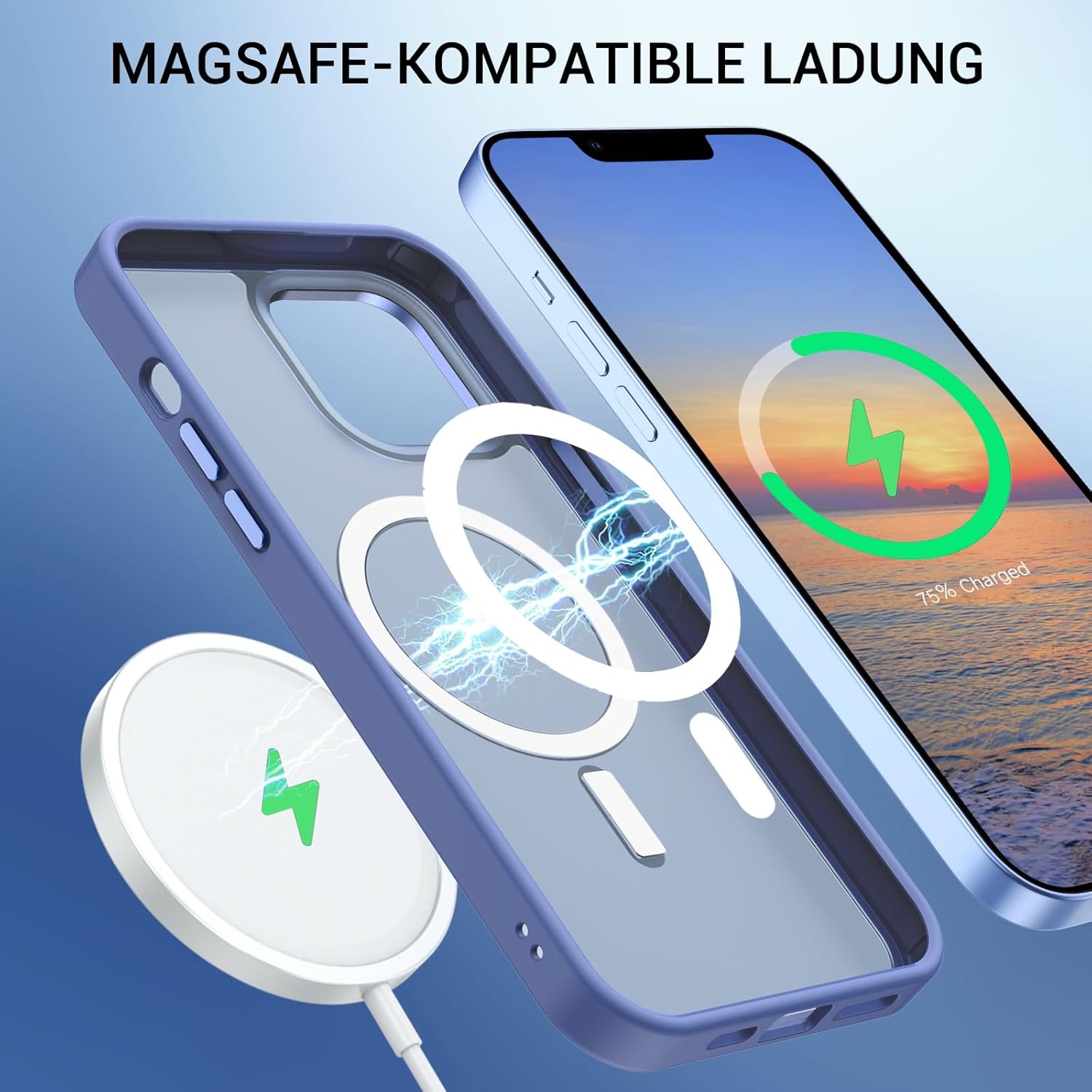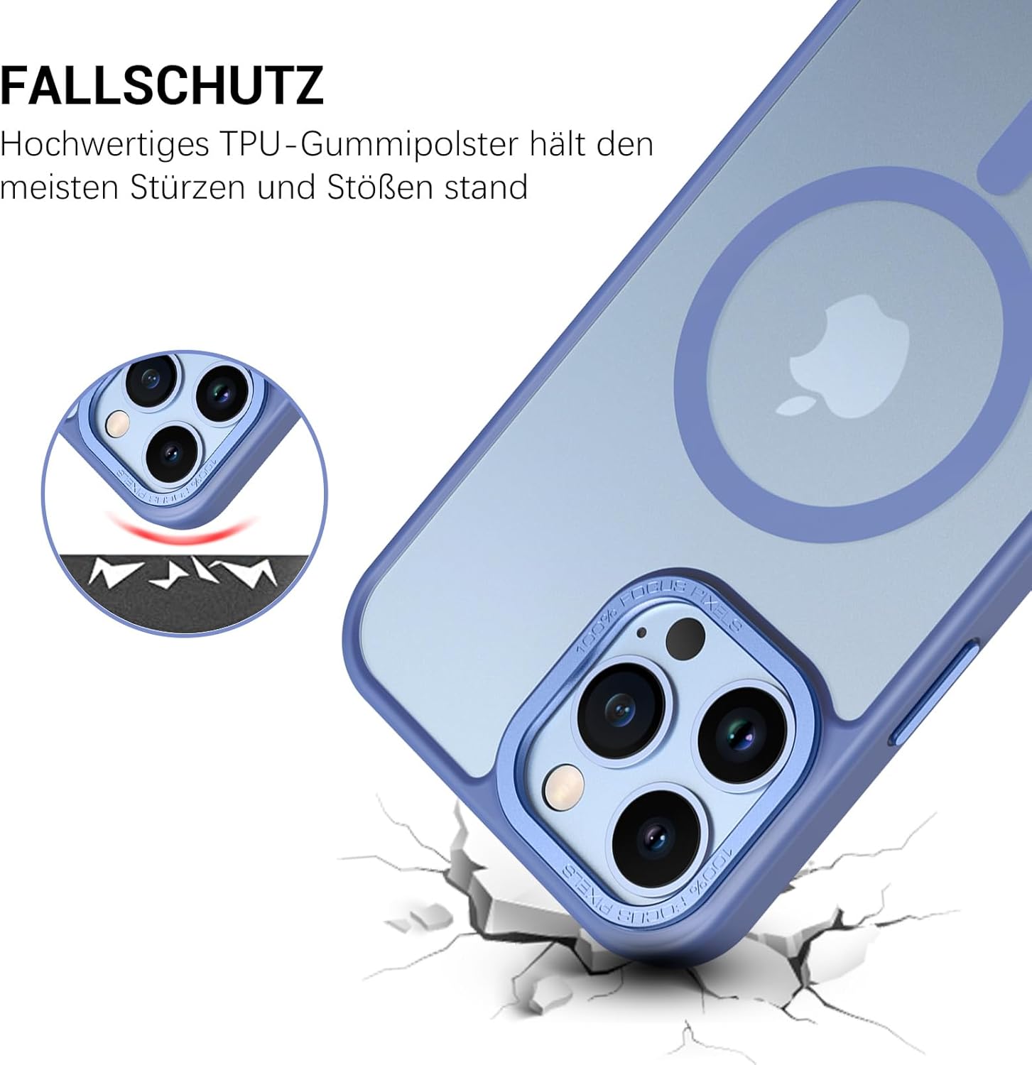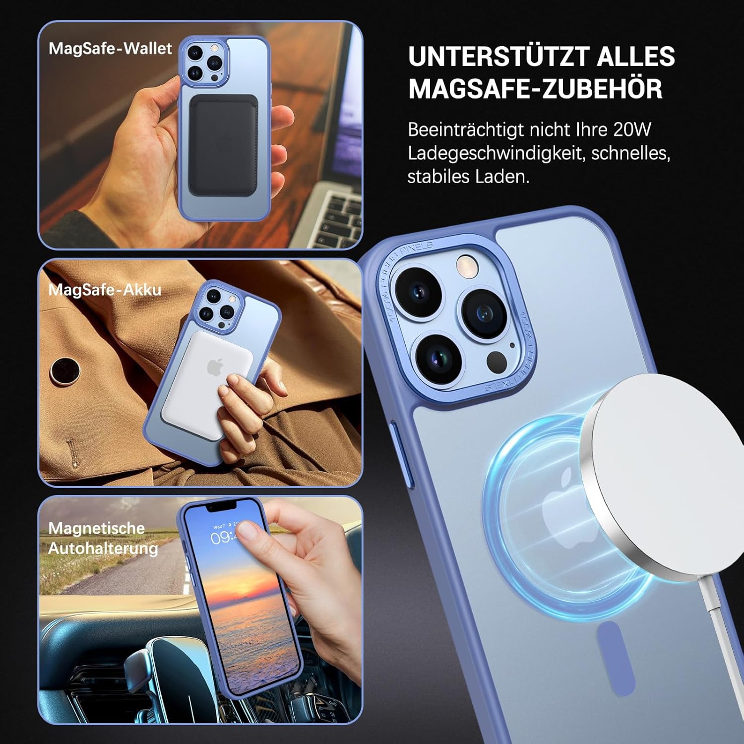 GaoBao калъф за iPhone 13 Pro Max, калъф за мобилен телефон iPhone 13 Pro Max [съвместим с MagSafe] полупрозрачен матов магнитен удароустойчив калъф против пръстови отпечатъци 6.7 инча, син