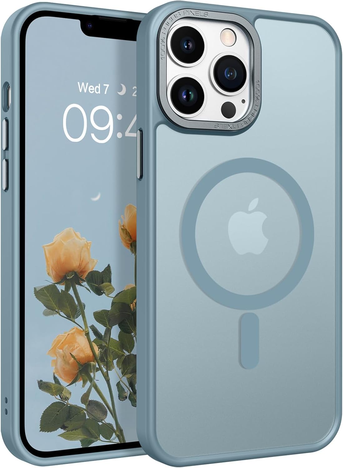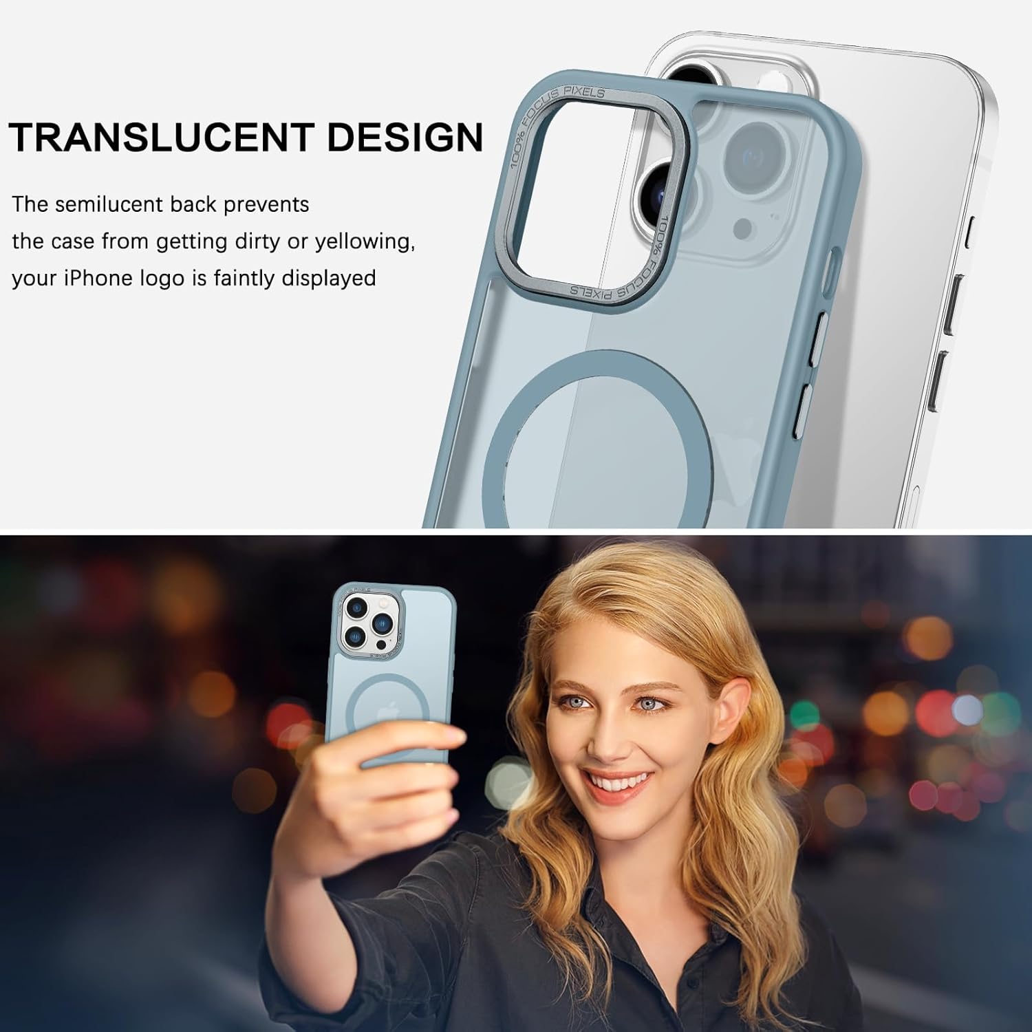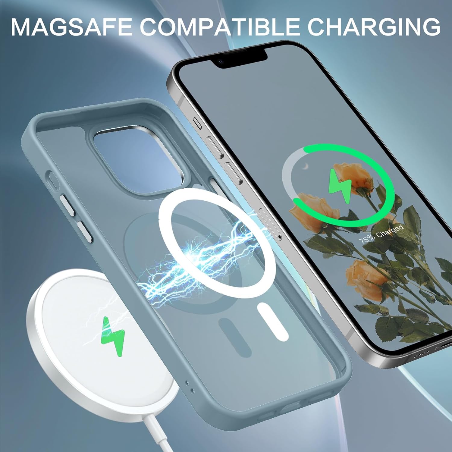 GaoBao калъф за iPhone 13 Pro Max, калъф за мобилен телефон iPhone 13 Pro Max [съвместим с MagSafe] полупрозрачен матов магнитен удароустойчив калъф против пръстови отпечатъци 6.7 инча, сиво-син