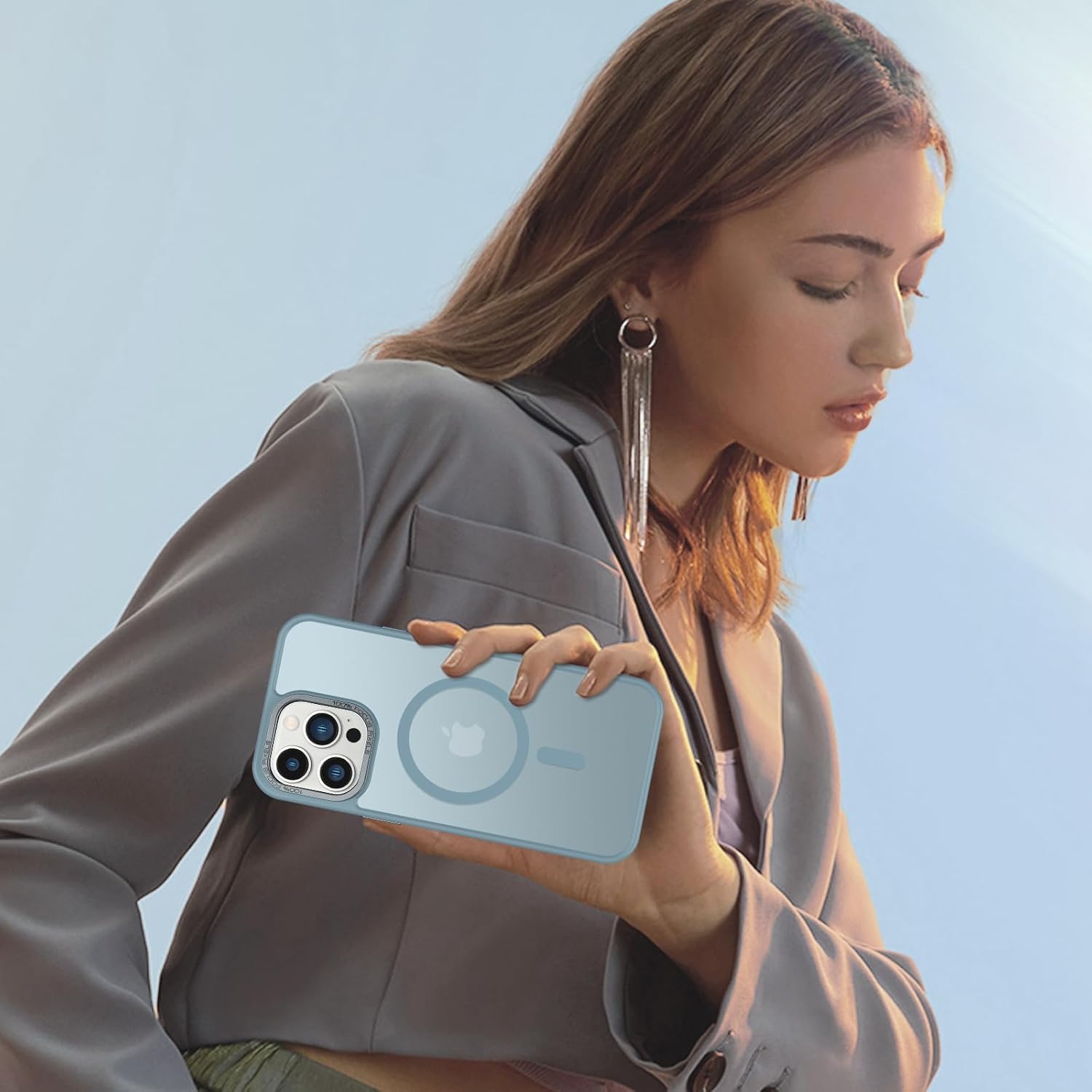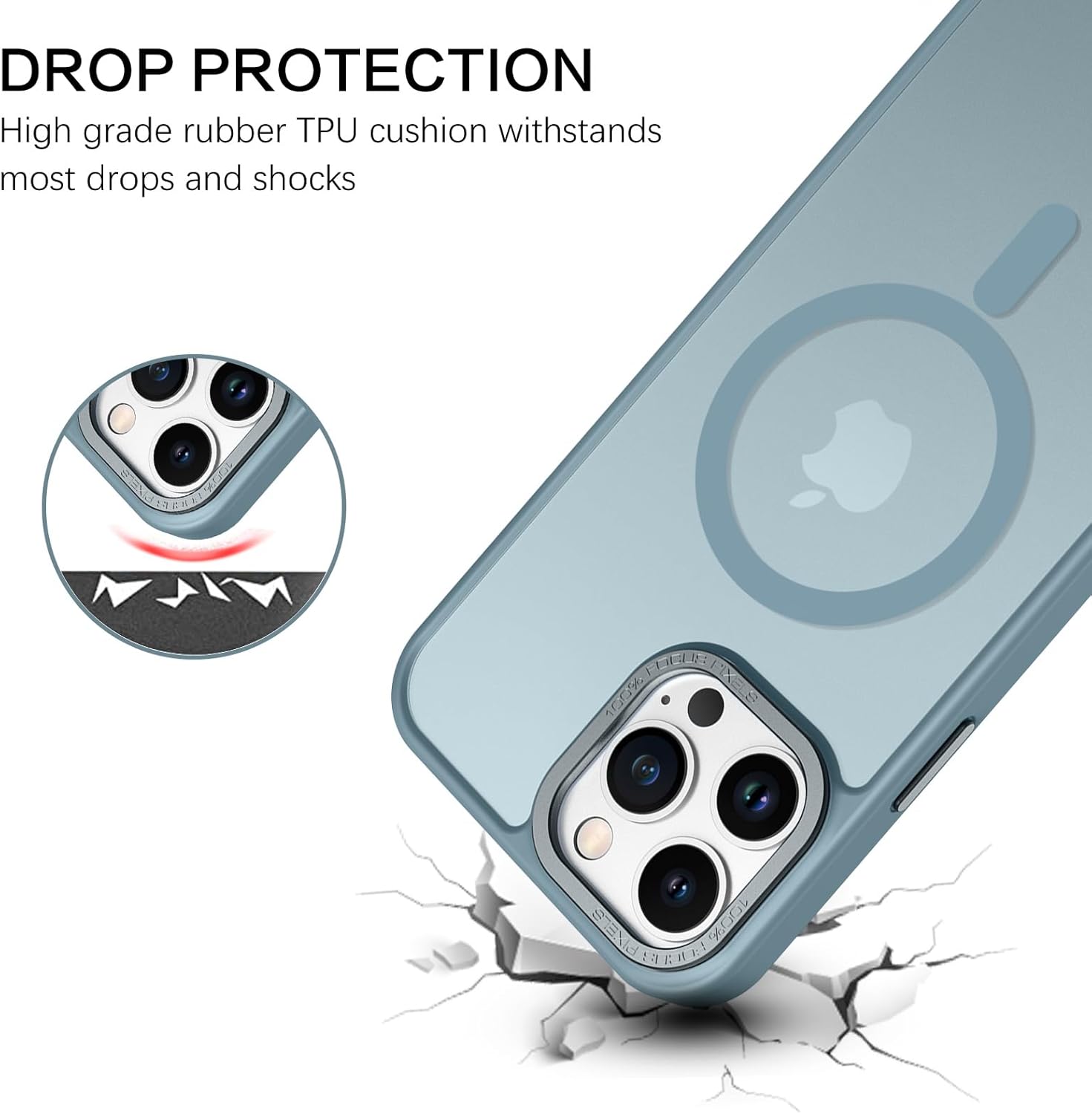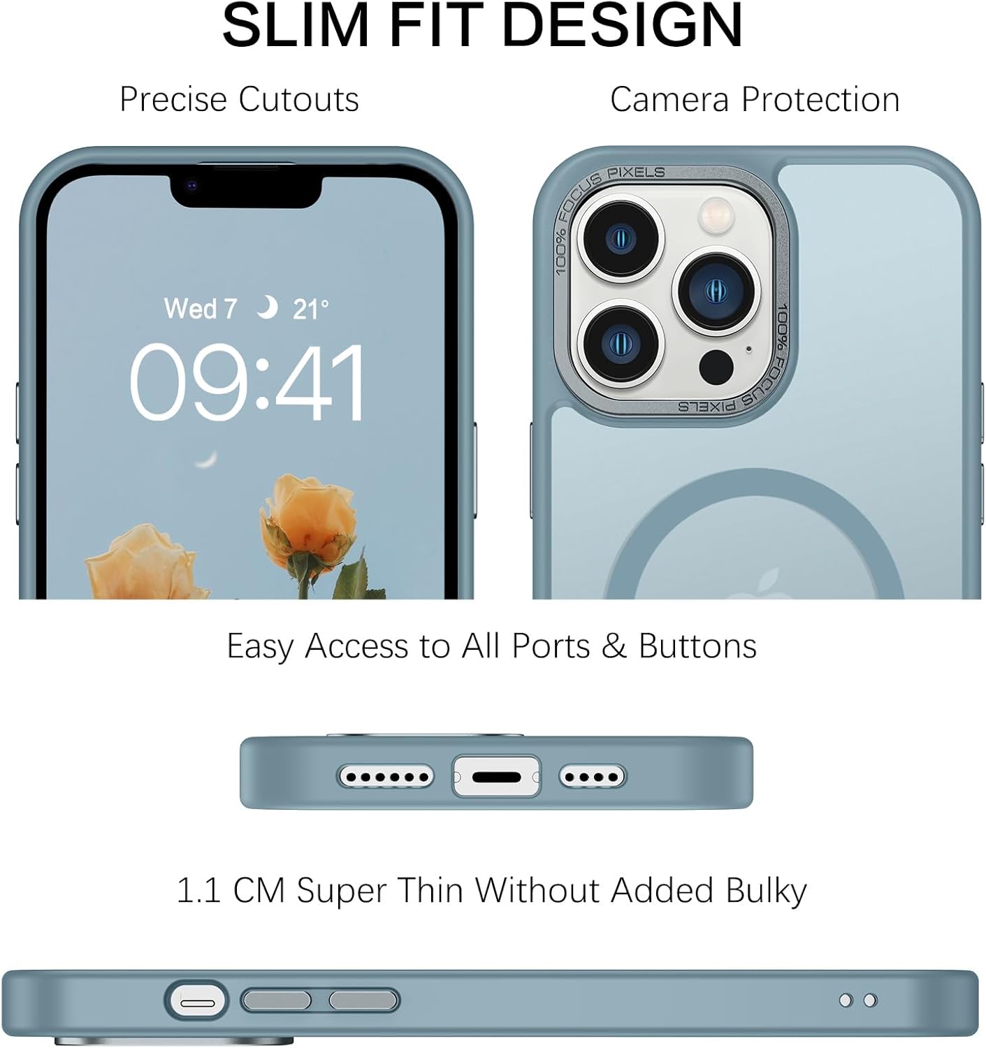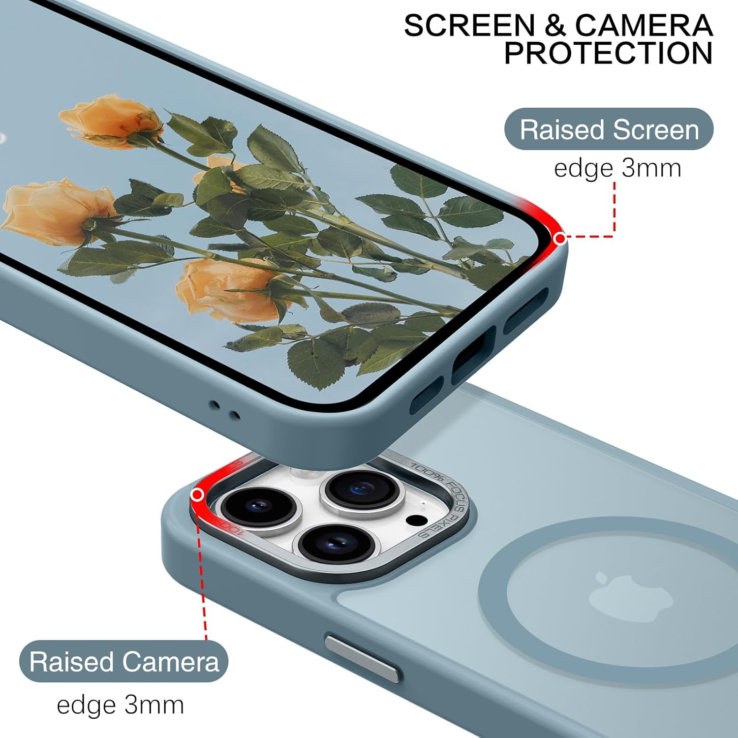 GaoBao калъф за iPhone 13 Pro Max, калъф за мобилен телефон iPhone 13 Pro Max [съвместим с MagSafe] полупрозрачен матов магнитен удароустойчив калъф против пръстови отпечатъци 6.7 инча, сиво-син