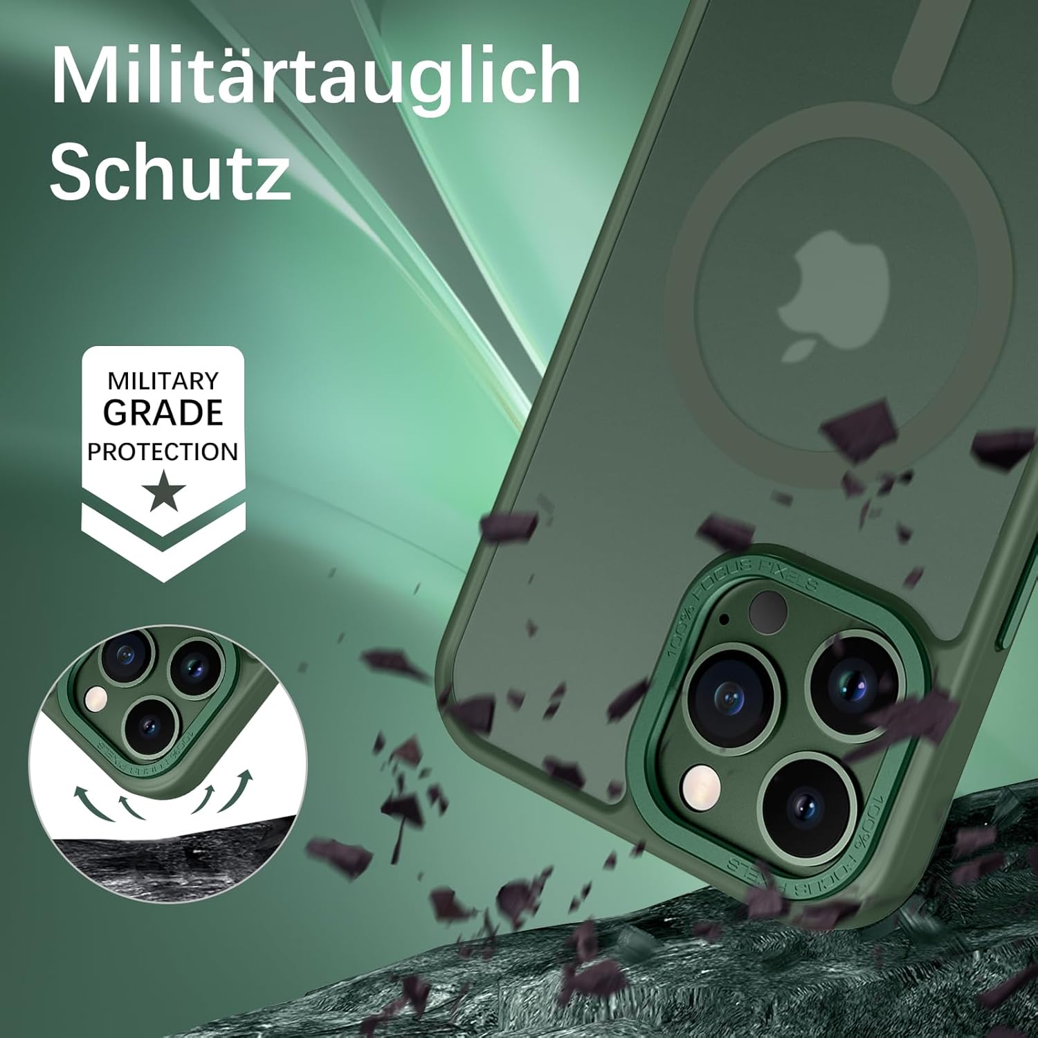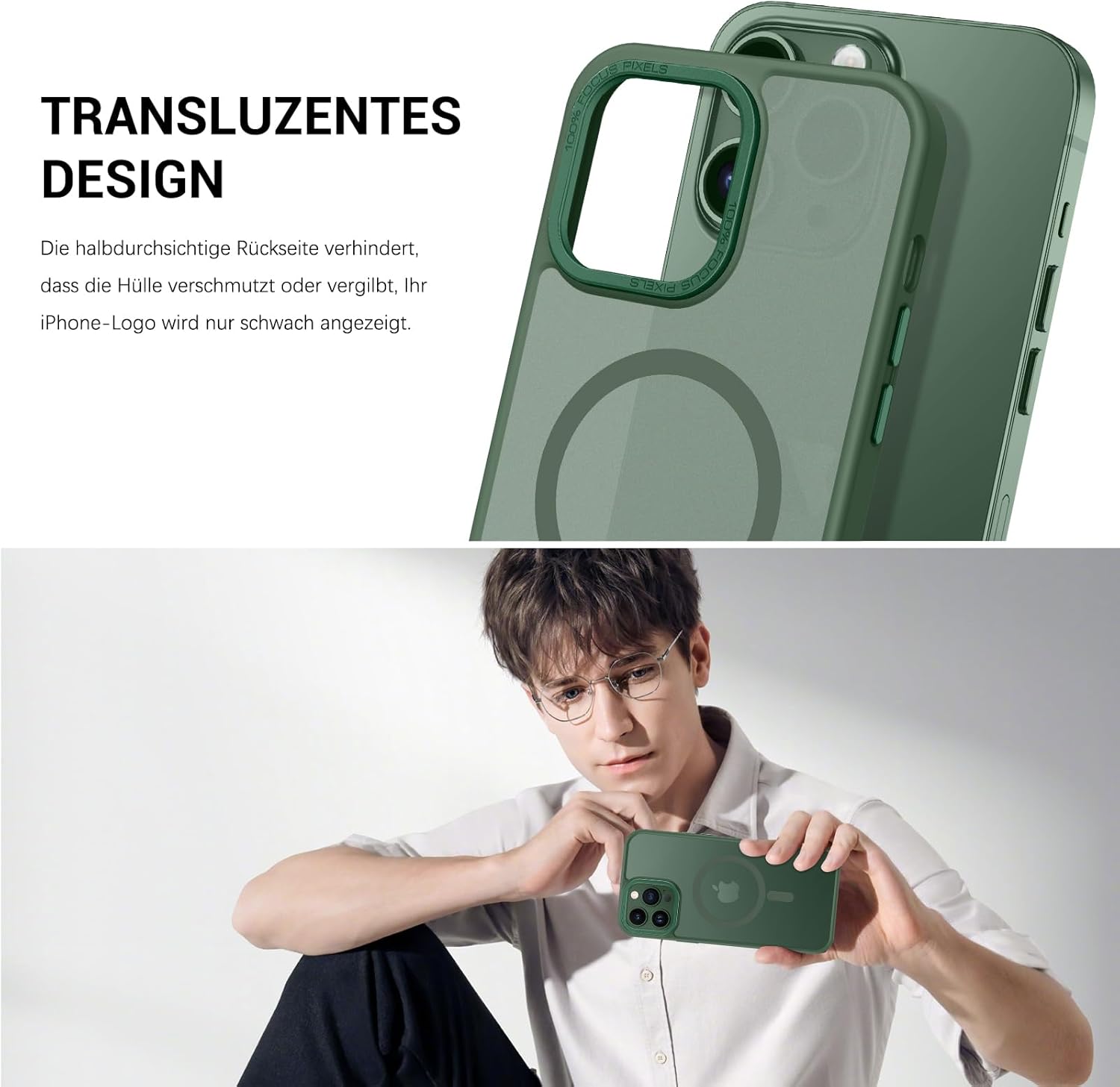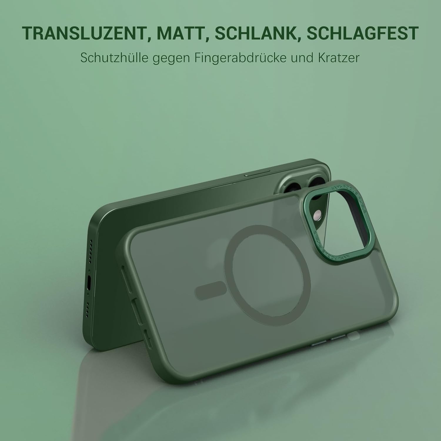 GaoBao калъф за iPhone 13 Pro Max, калъф за мобилен телефон iPhone 13 Pro Max [съвместим с MagSafe] полупрозрачен матов магнитен удароустойчив калъф против пръстови отпечатъци 6.7 инча, зелен