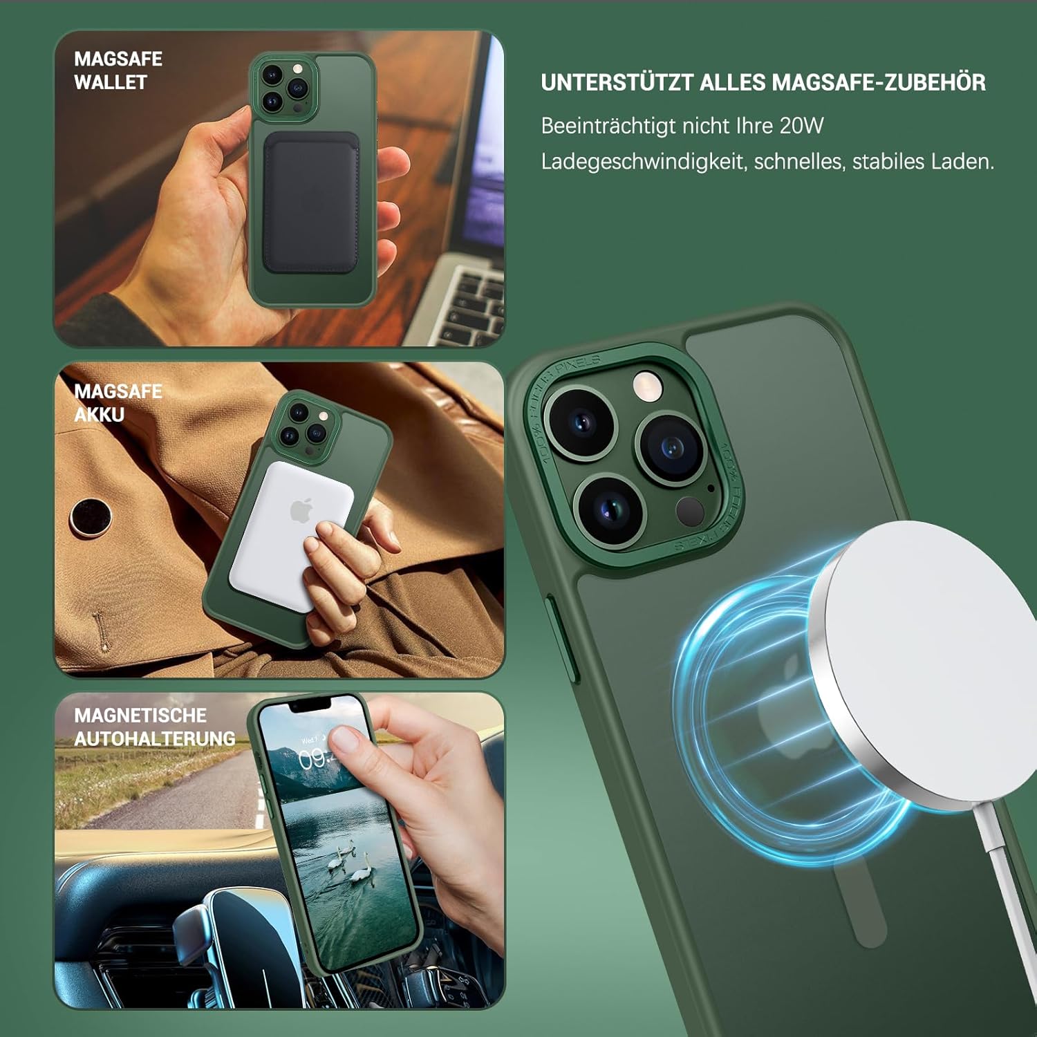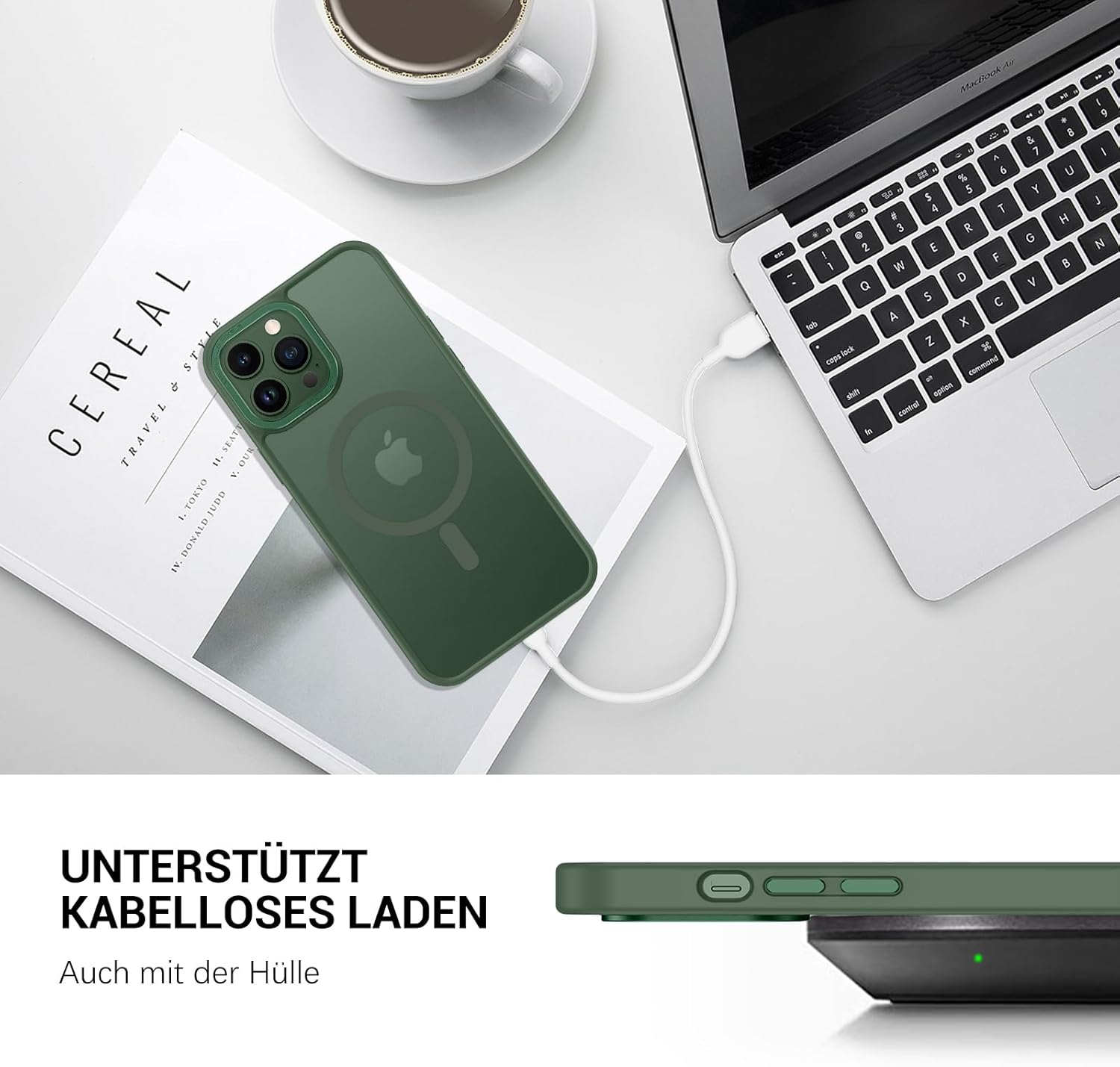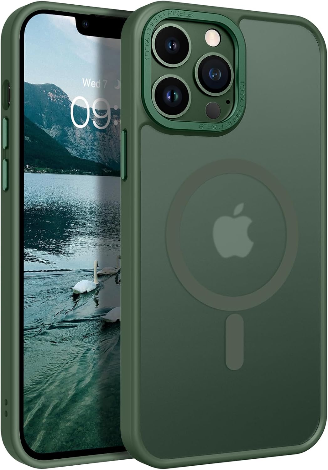 GaoBao калъф за iPhone 13 Pro Max, калъф за мобилен телефон iPhone 13 Pro Max [съвместим с MagSafe] полупрозрачен матов магнитен удароустойчив калъф против пръстови отпечатъци 6.7 инча, зелен