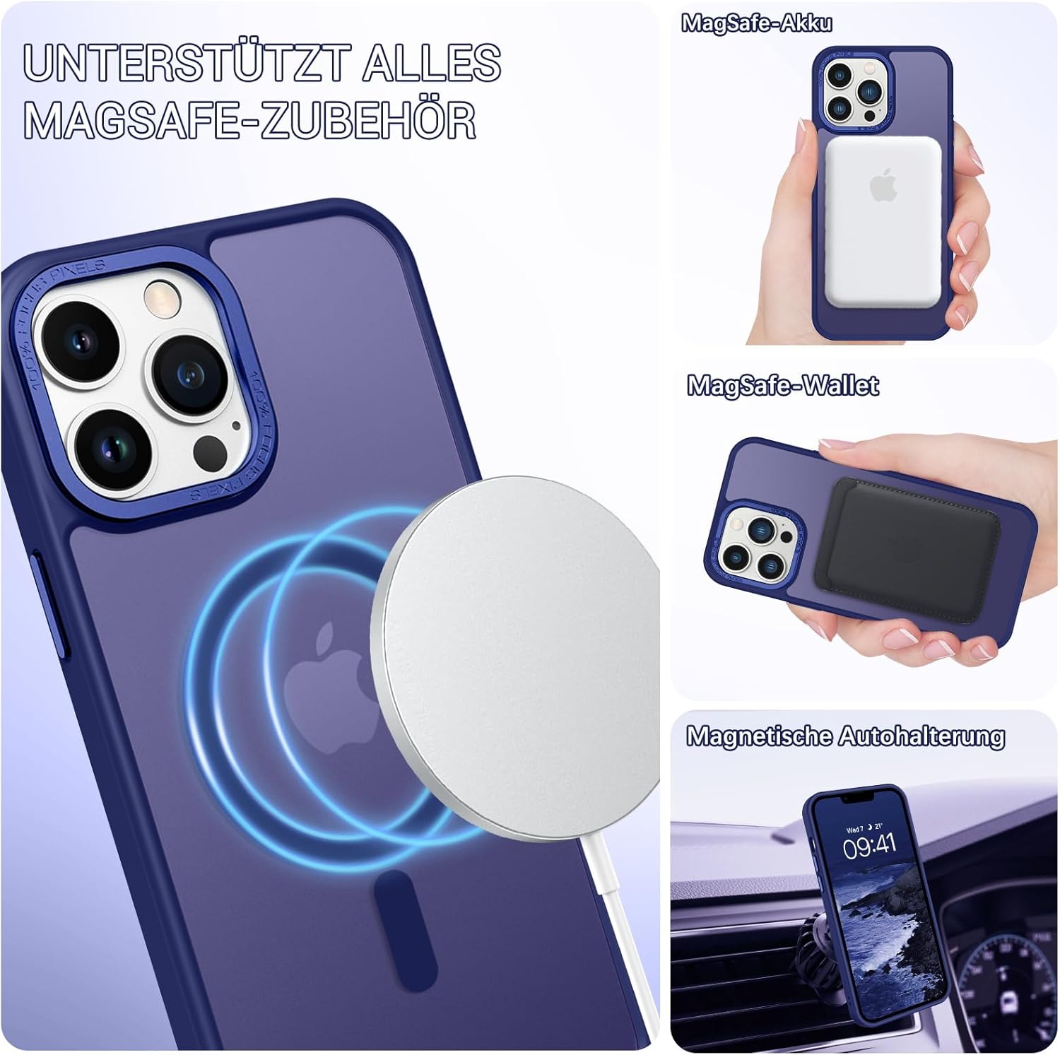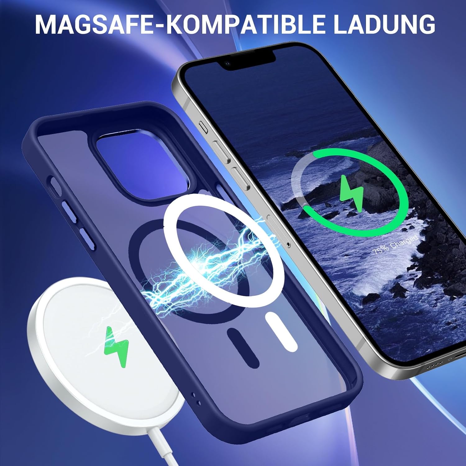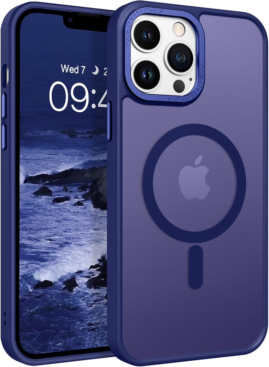 GaoBao калъф за iPhone 13 Pro Max, калъф за мобилен телефон iPhone 13 Pro Max [съвместим с MagSafe] полупрозрачен матов магнитен удароустойчив калъф против пръстови отпечатъци за 6.7 инча, малък син
