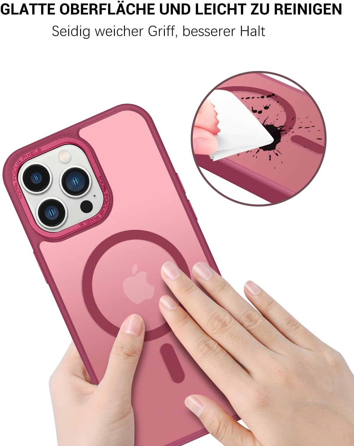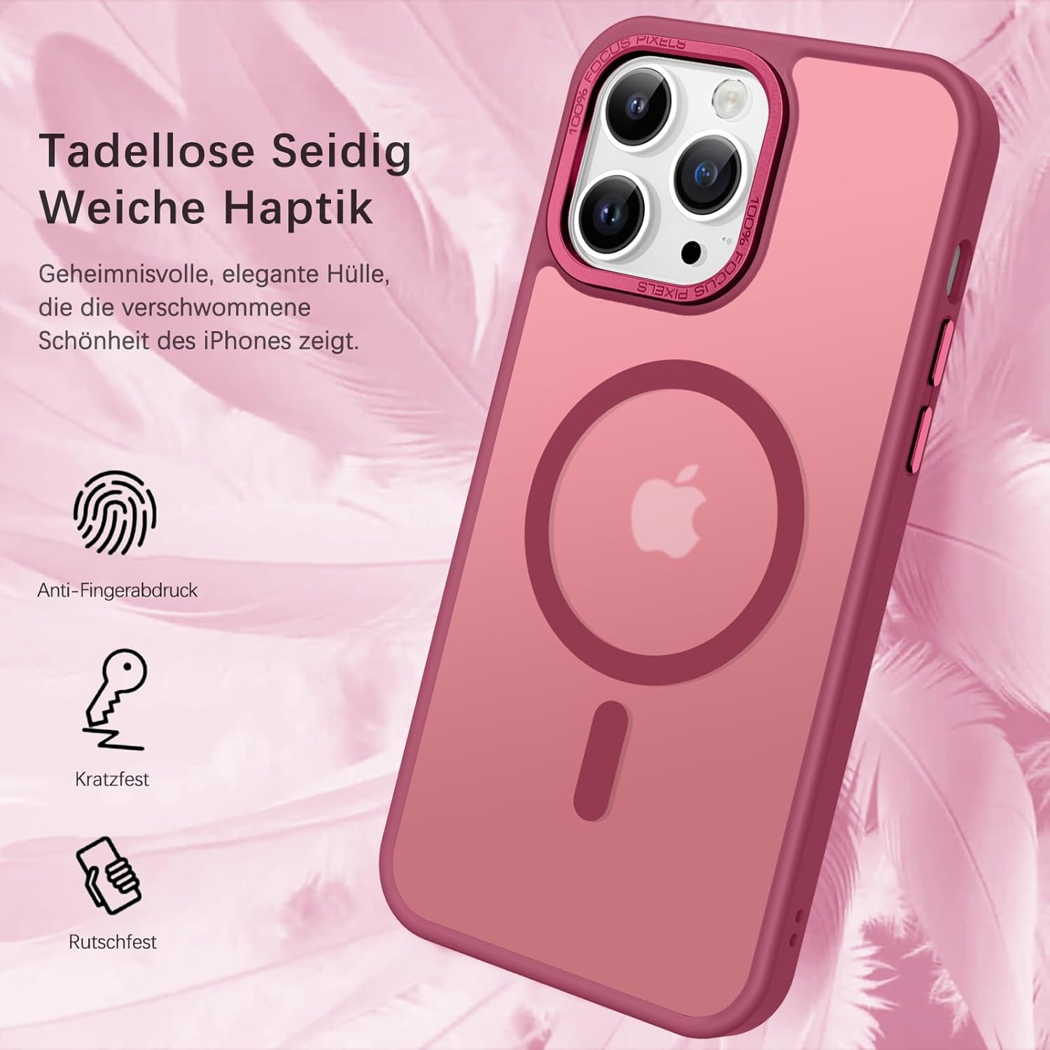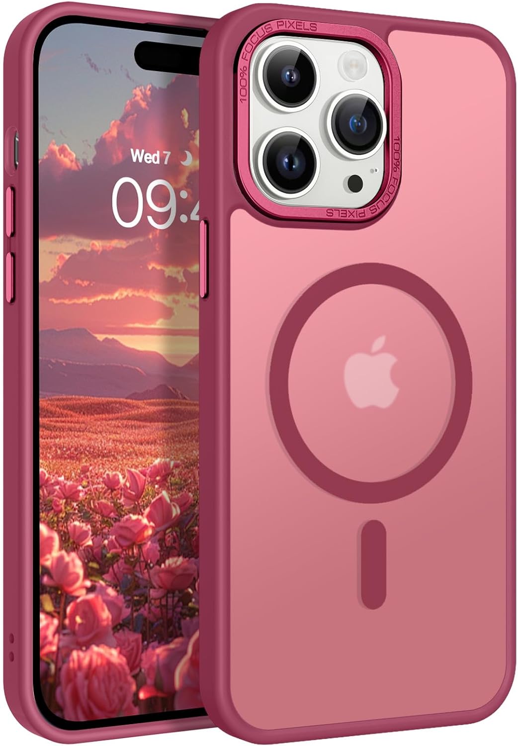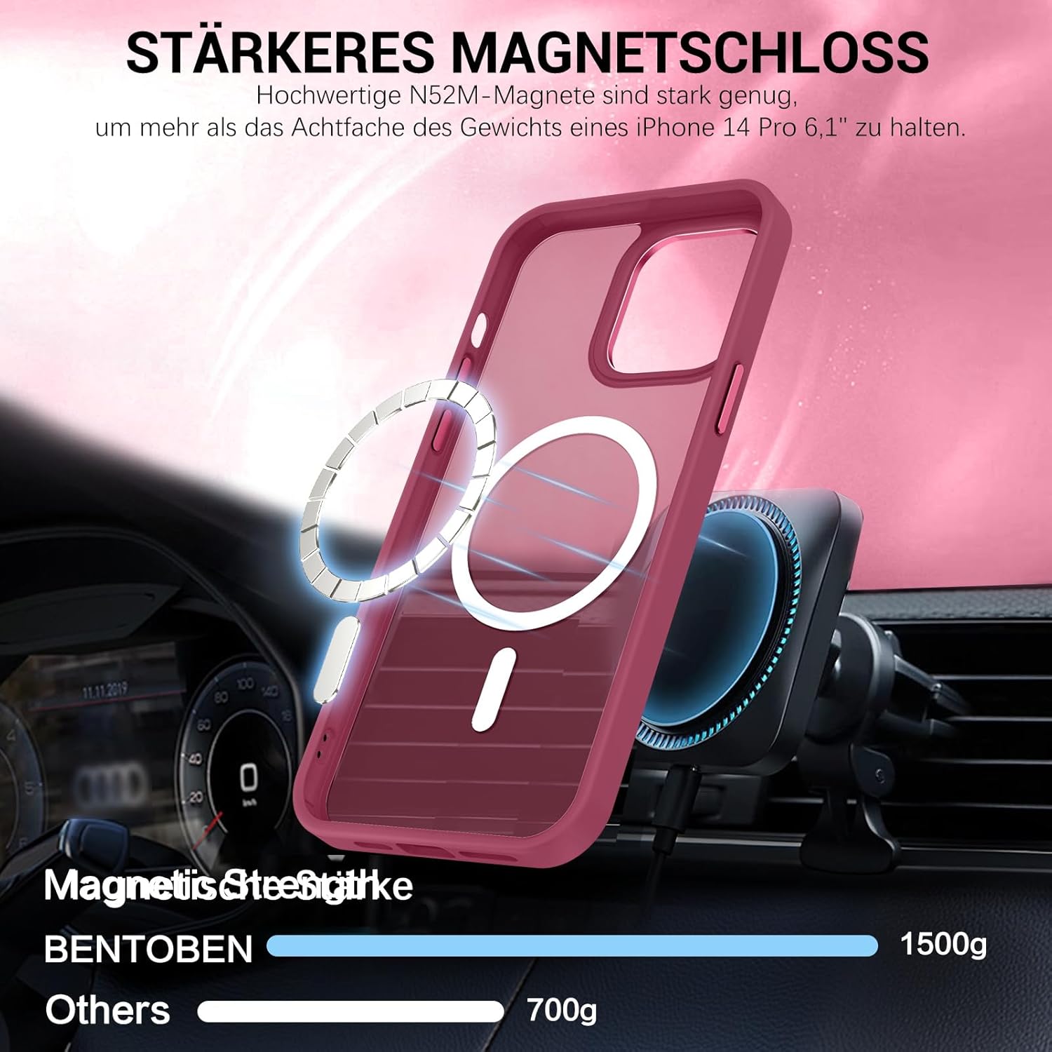 GaoBao калъф за iPhone 14 Pro, калъф за мобилен телефон iPhone 14 Pro [съвместим с MagSafe] полупрозрачен матов магнитен удароустойчив калъф против пръстови отпечатъци за iPhone 14Pro, тъмночервен