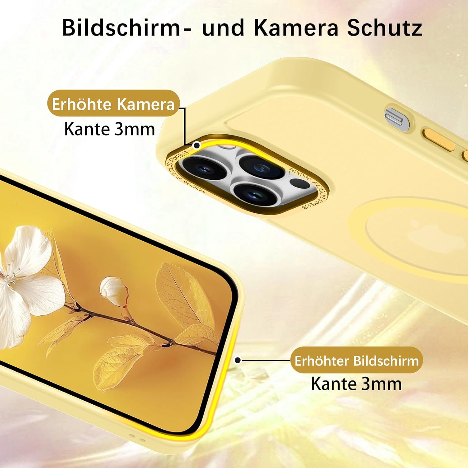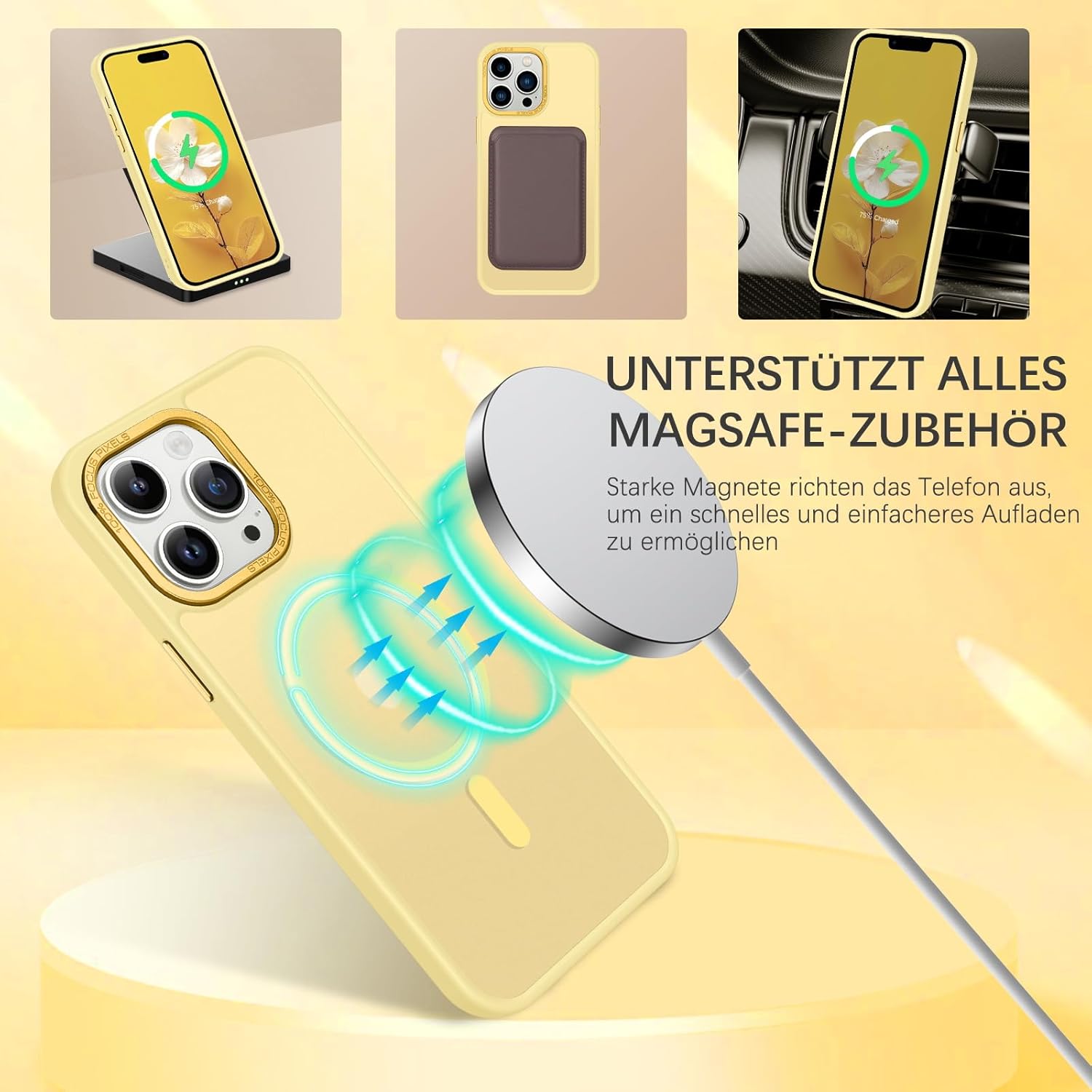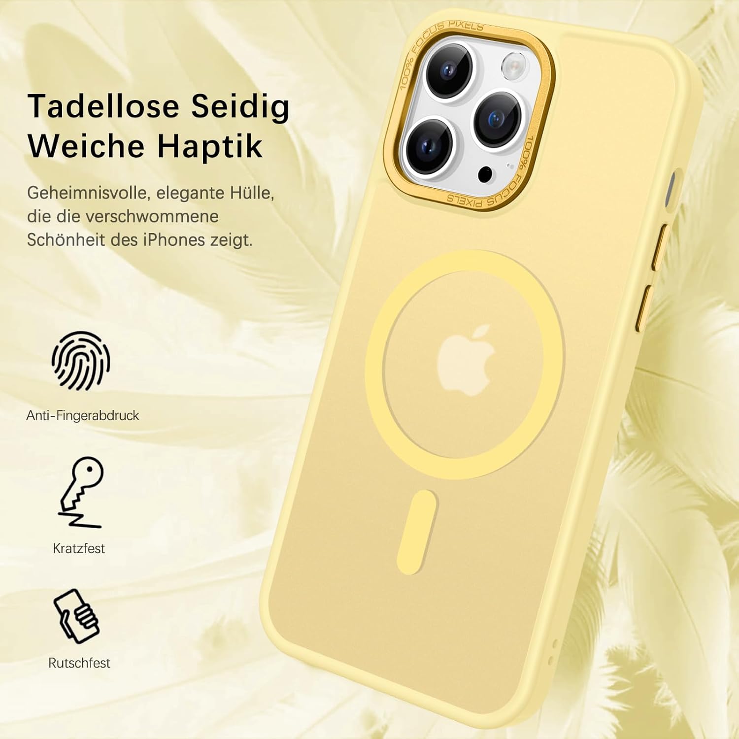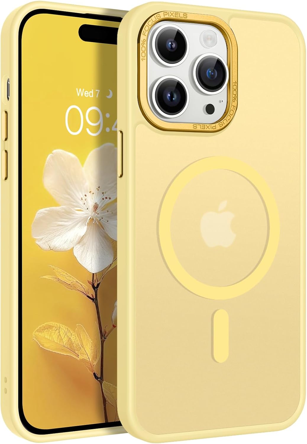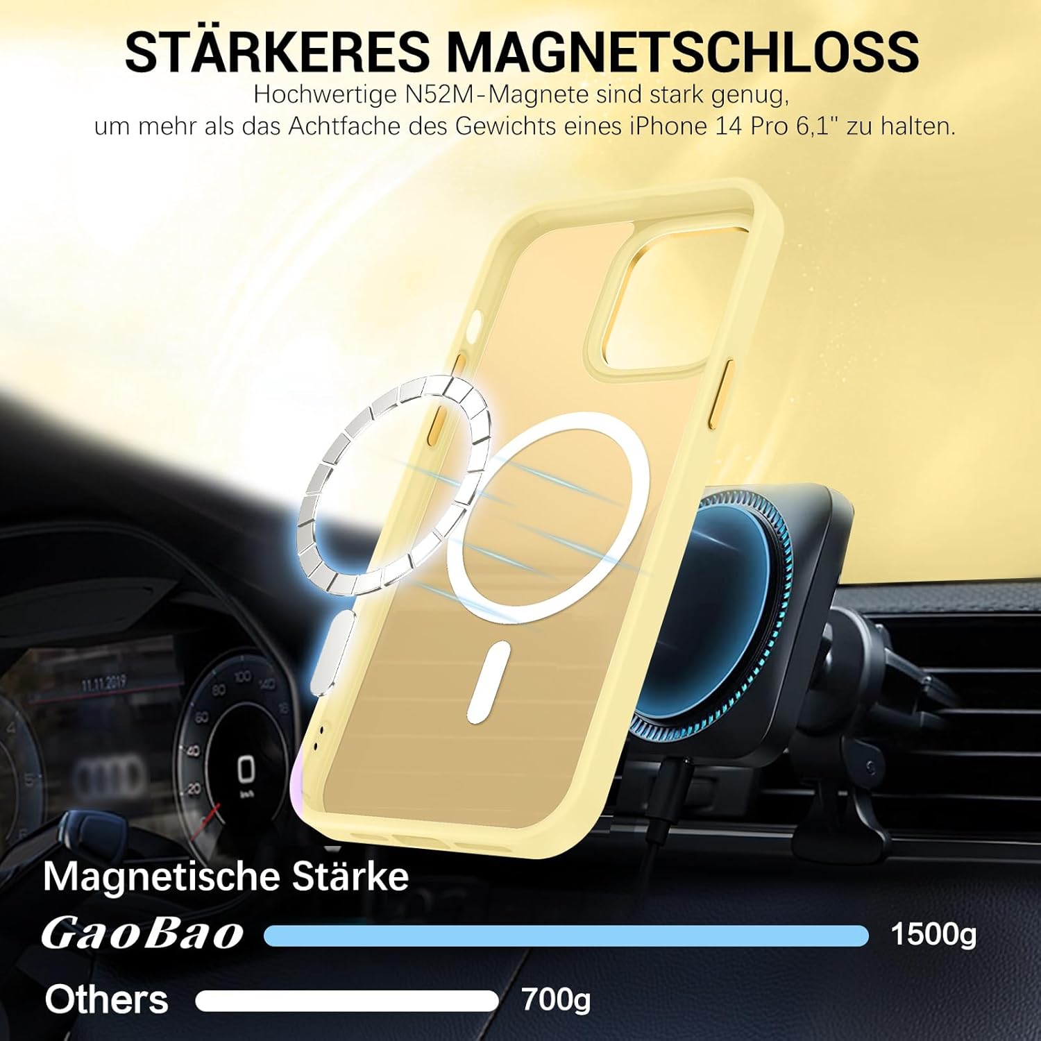 GaoBao калъф за iPhone 14 Pro, калъф за мобилен телефон iPhone 14 Pro [съвместим с MagSafe] полупрозрачен матов магнитен удароустойчив защитен калъф против пръстови отпечатъци 6.1 инча жълт