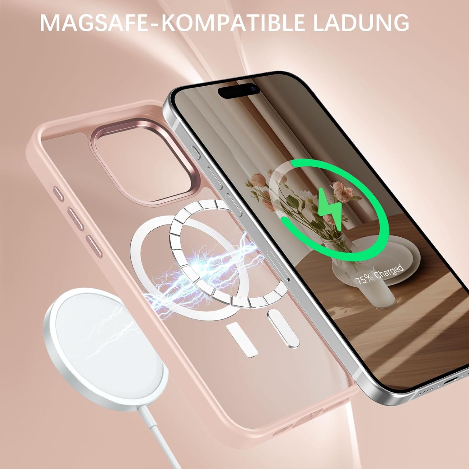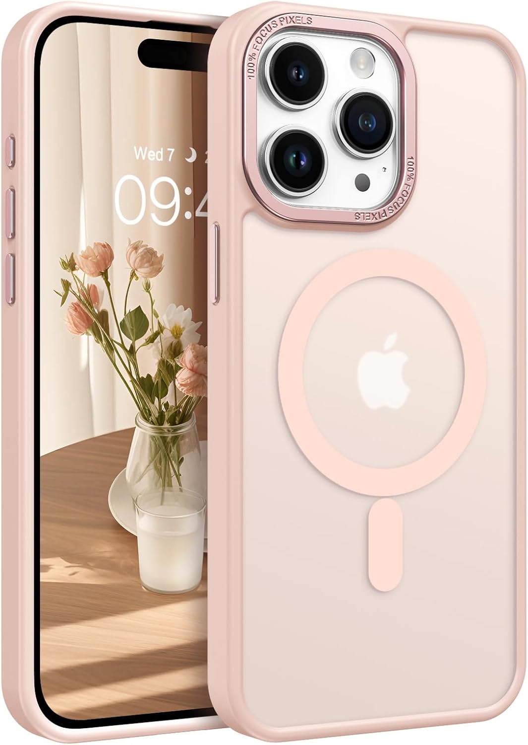 GaoBao калъф за iPhone 15 Pro Max, калъф за мобилен телефон iPhone 15 Pro Max [съвместим с MagSafe] полупрозрачен матов магнитен удароустойчив калъф против пръстови отпечатъци за iPhone 15 Pro Max 6.7 инча, розов