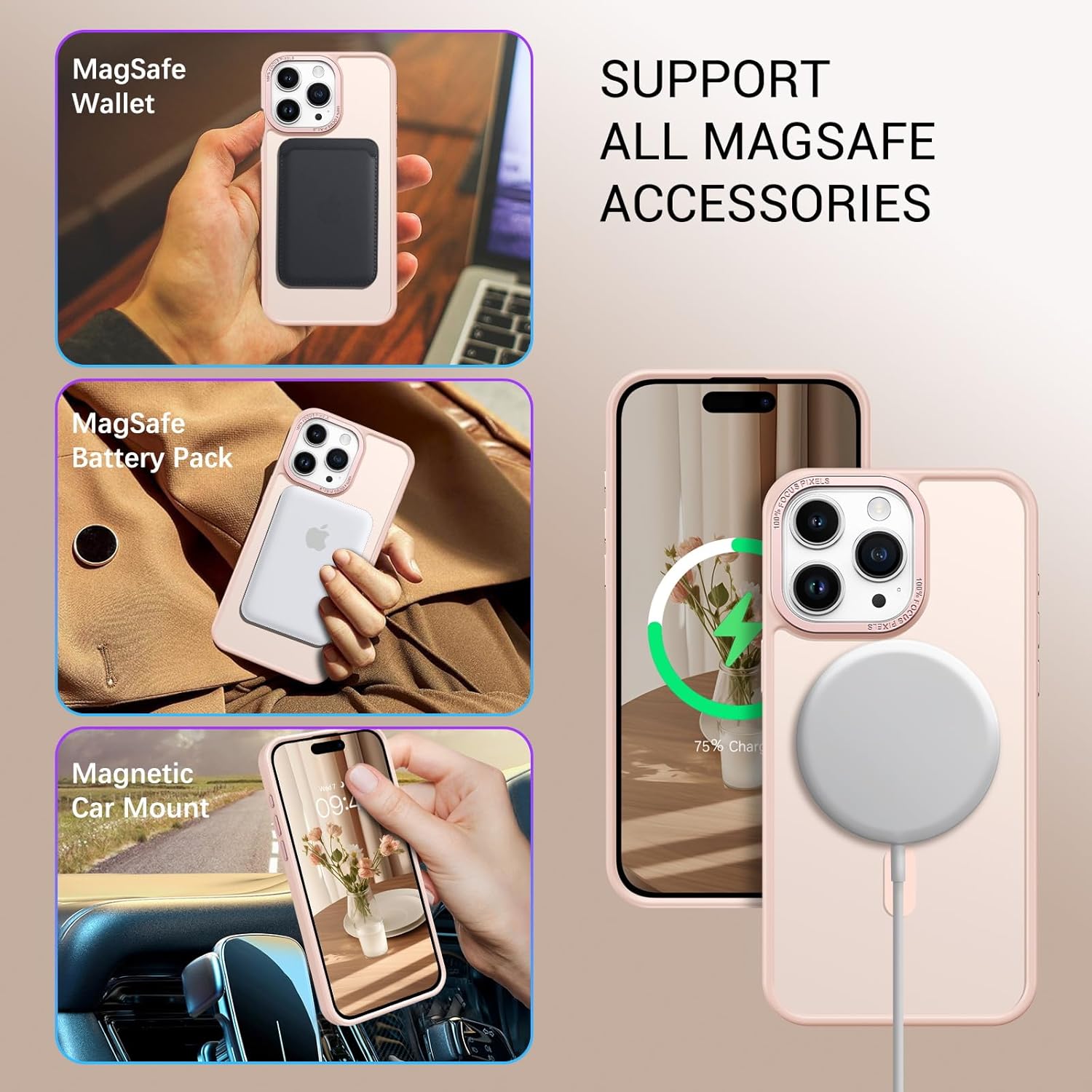 • Съвместим с Mag-Safe: Този калъф MagSafe за iPhone 12/iPhone 12 Pro разполага с вградени магнитни решетки, които здраво закрепват телефона ви към устройството, което прави безжичното магнитно зареждане лесно, без да е необходимо да сваляте калъфа.