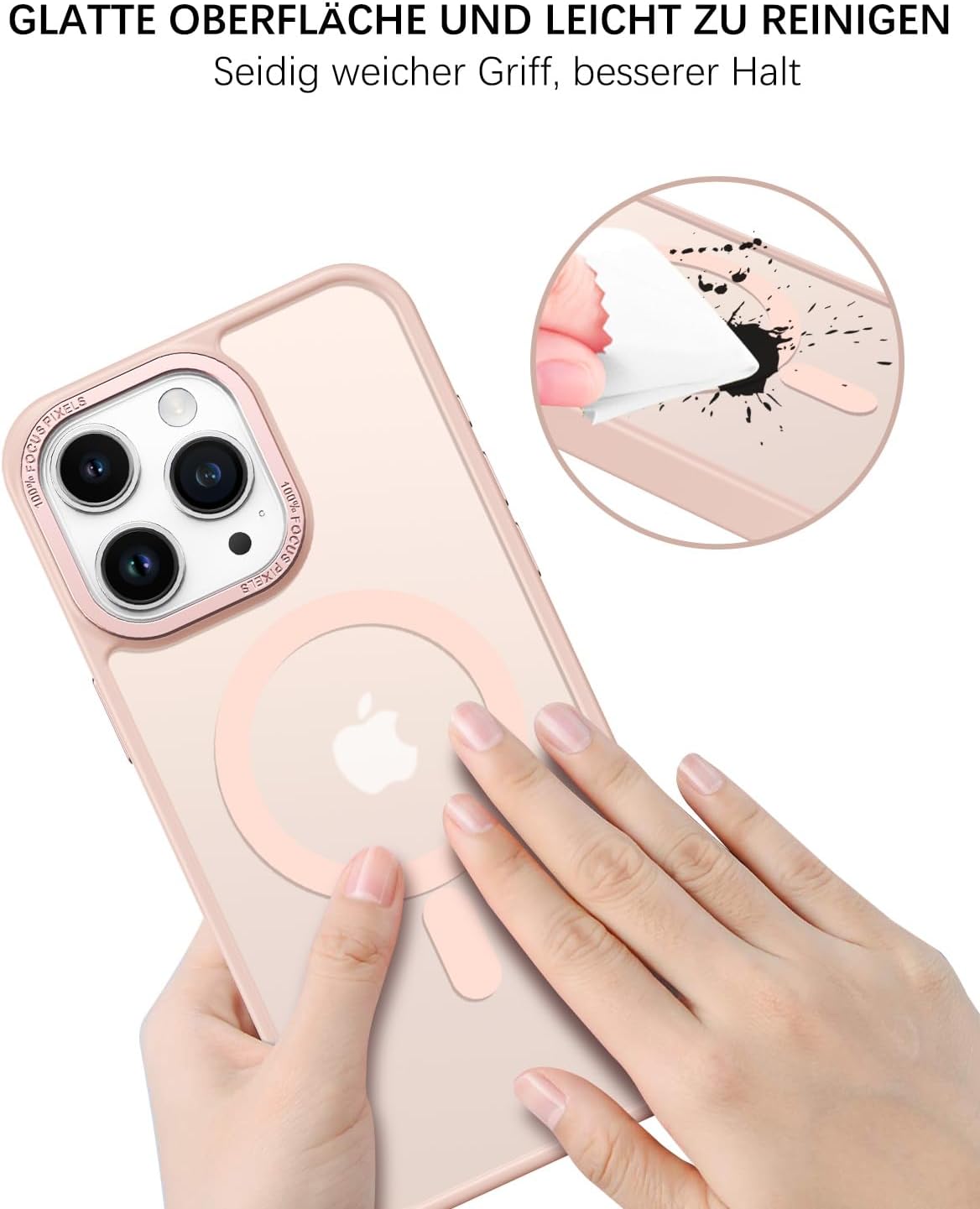 • Прозрачен, матов дизайн: Полупрозрачният гръб предотвратява замърсяването или пожълтяването на калъфа, а логото на вашия iPhone е лесно видимо. Матовата текстура осигурява по-добро сцепление и прави телефона да изглежда по-модерн.