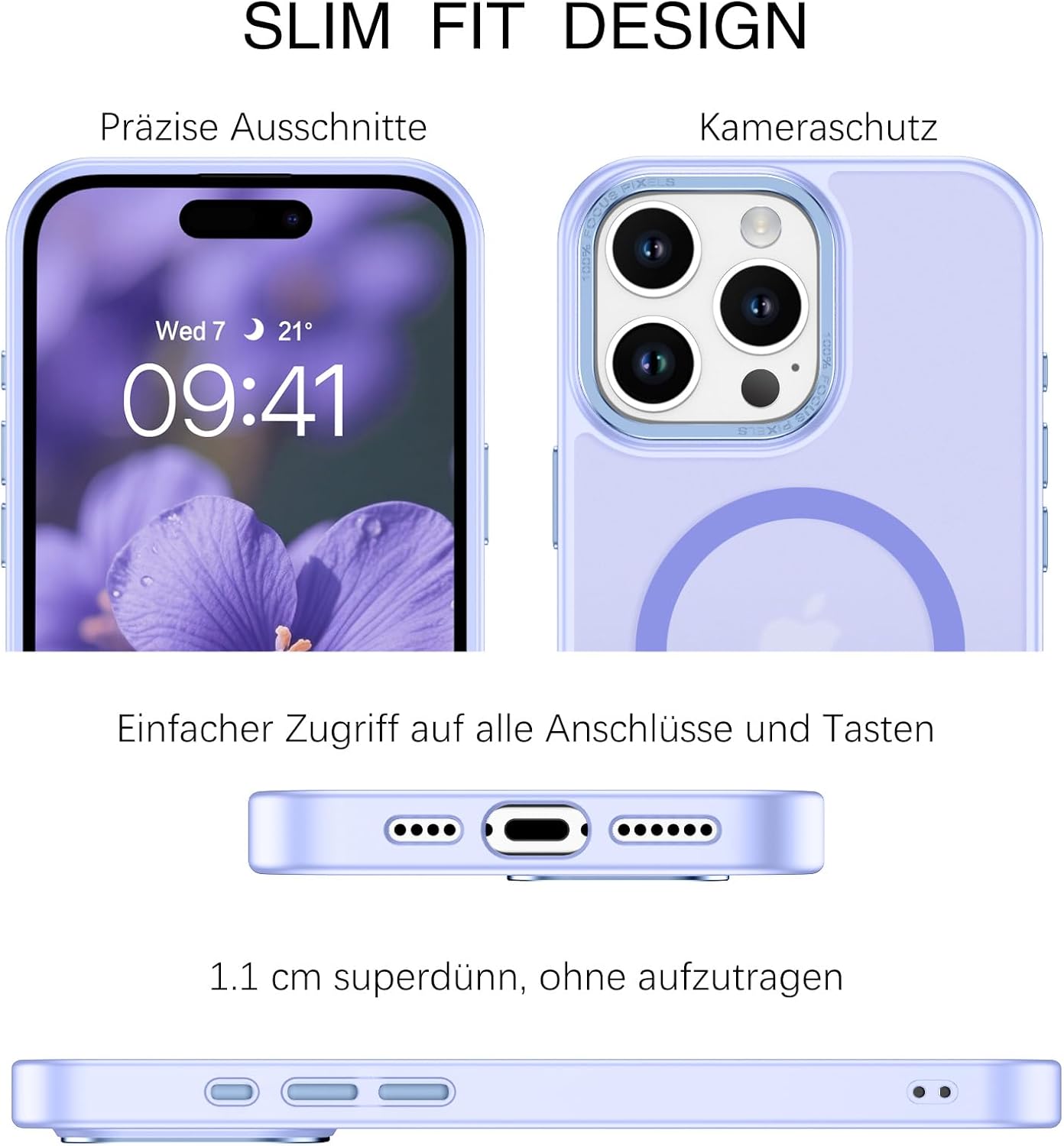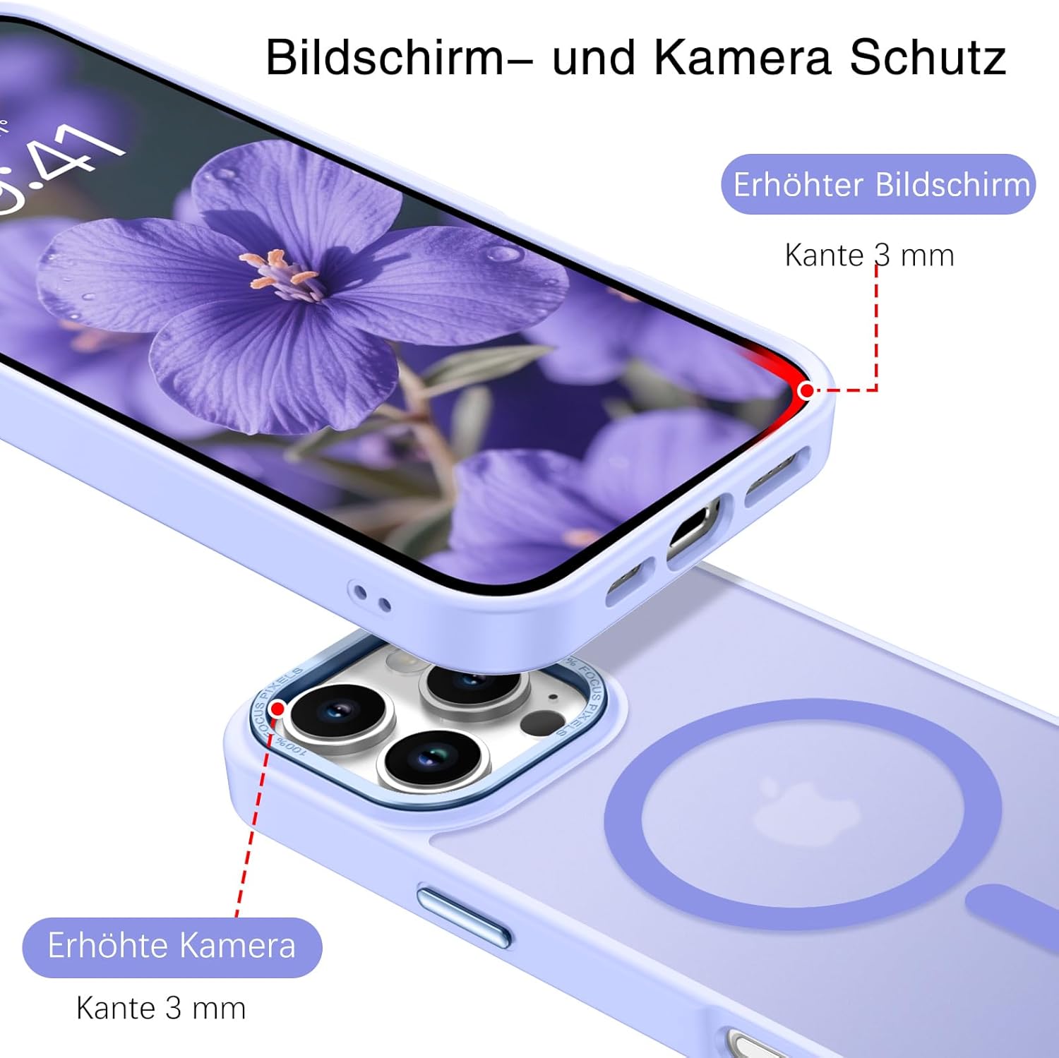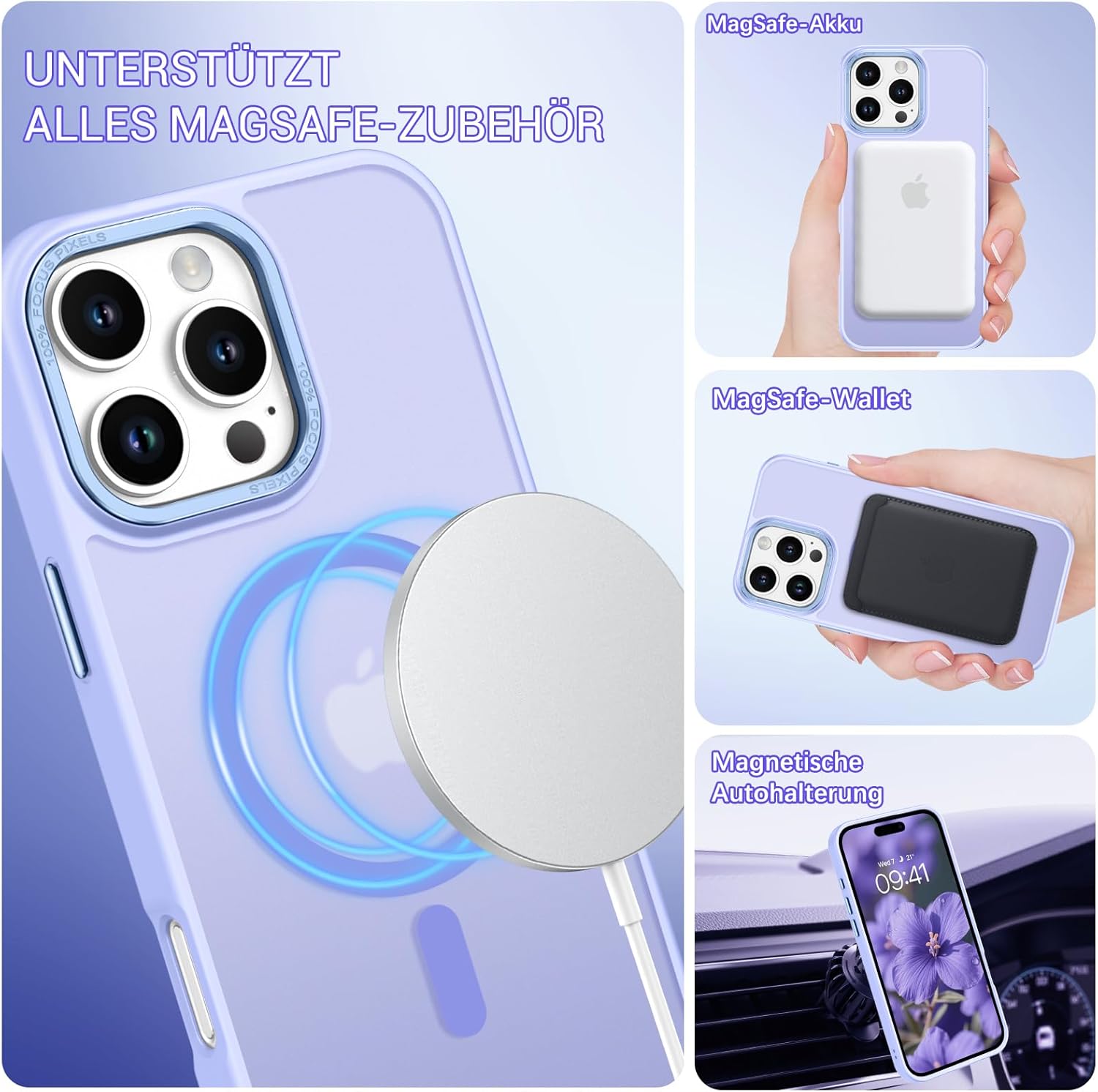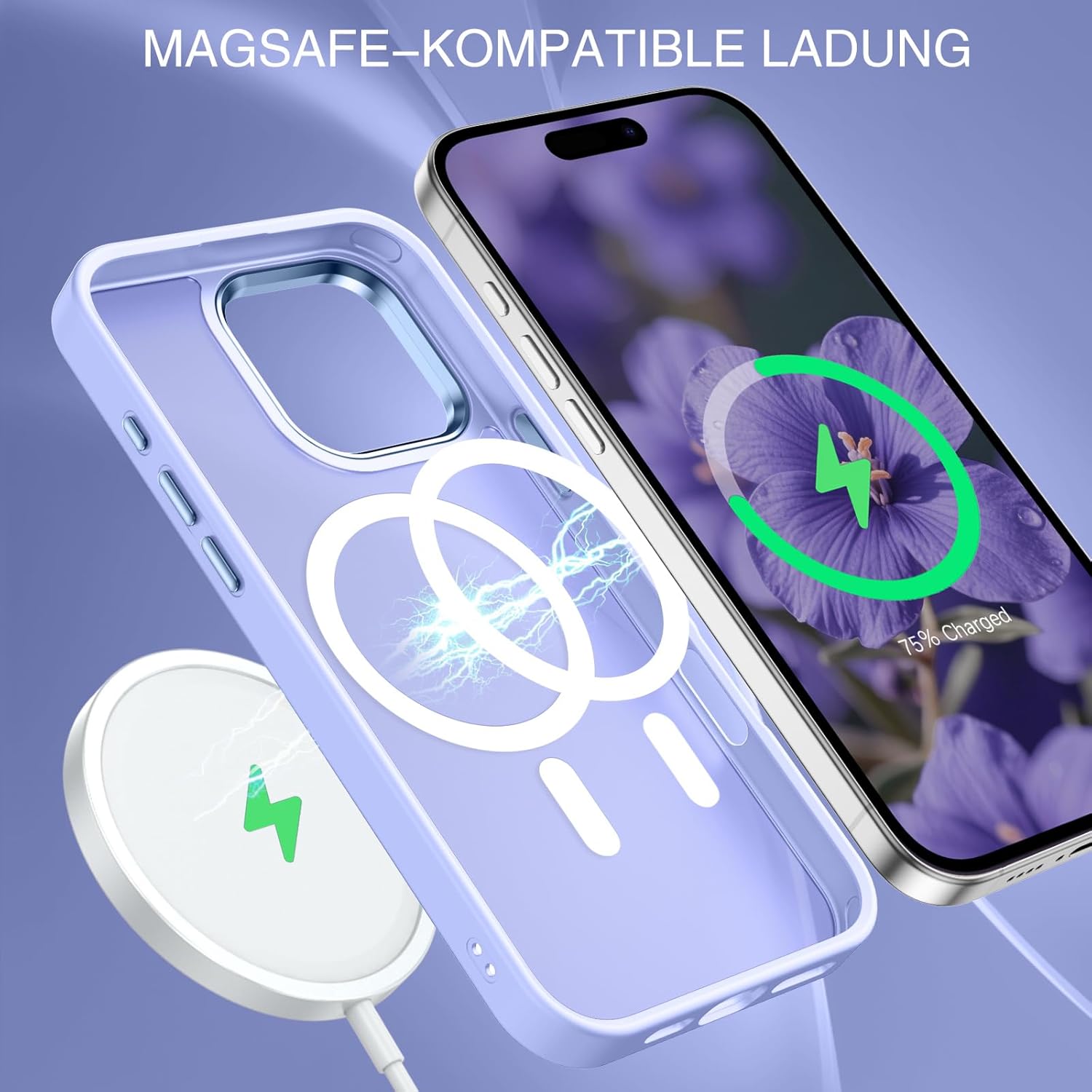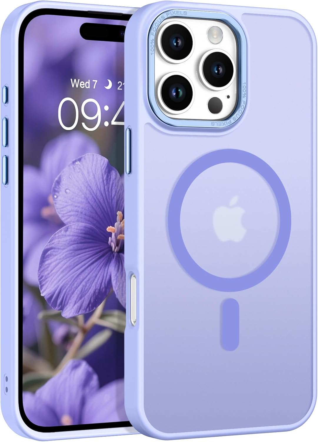 GaoBao калъф за iPhone 16 Pro Max, калъф за мобилен телефон iPhone 16 Pro Max [съвместим с Magsafe] полупрозрачен матов магнитен удароустойчив калъф против пръстови отпечатъци, лавандулов
