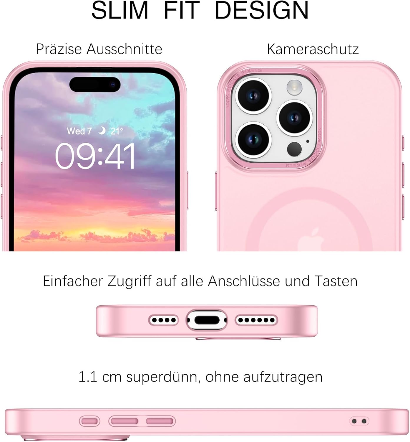 • Прозрачен, матов дизайн: Полупрозрачният гръб предотвратява замърсяването или пожълтяването на калъфа, а логото на вашия iPhone е лесно видимо. Матовата текстура осигурява по-добро сцепление и прави телефона да изглежда по-модерн.