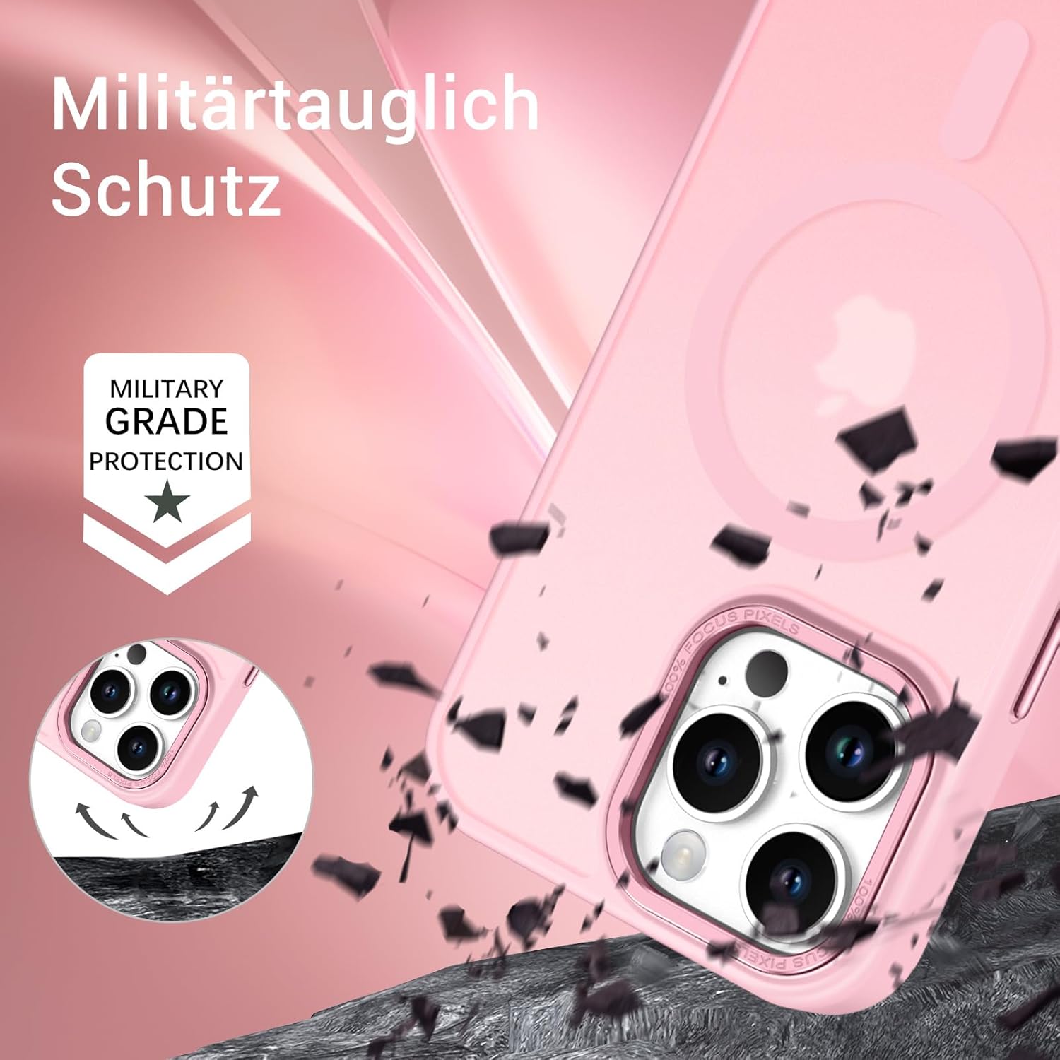 • Устойчив на надраскване и пръстови отпечатъци: Матовият гръб остава чист и е със специален дизайн, който предотвратява пръстови отпечатъци, водни петна, масло и прах. В същото време, този калъф за мобилен телефон за iPhone 12/iPhone 12 Pro осигурява отлично усещане при допир.