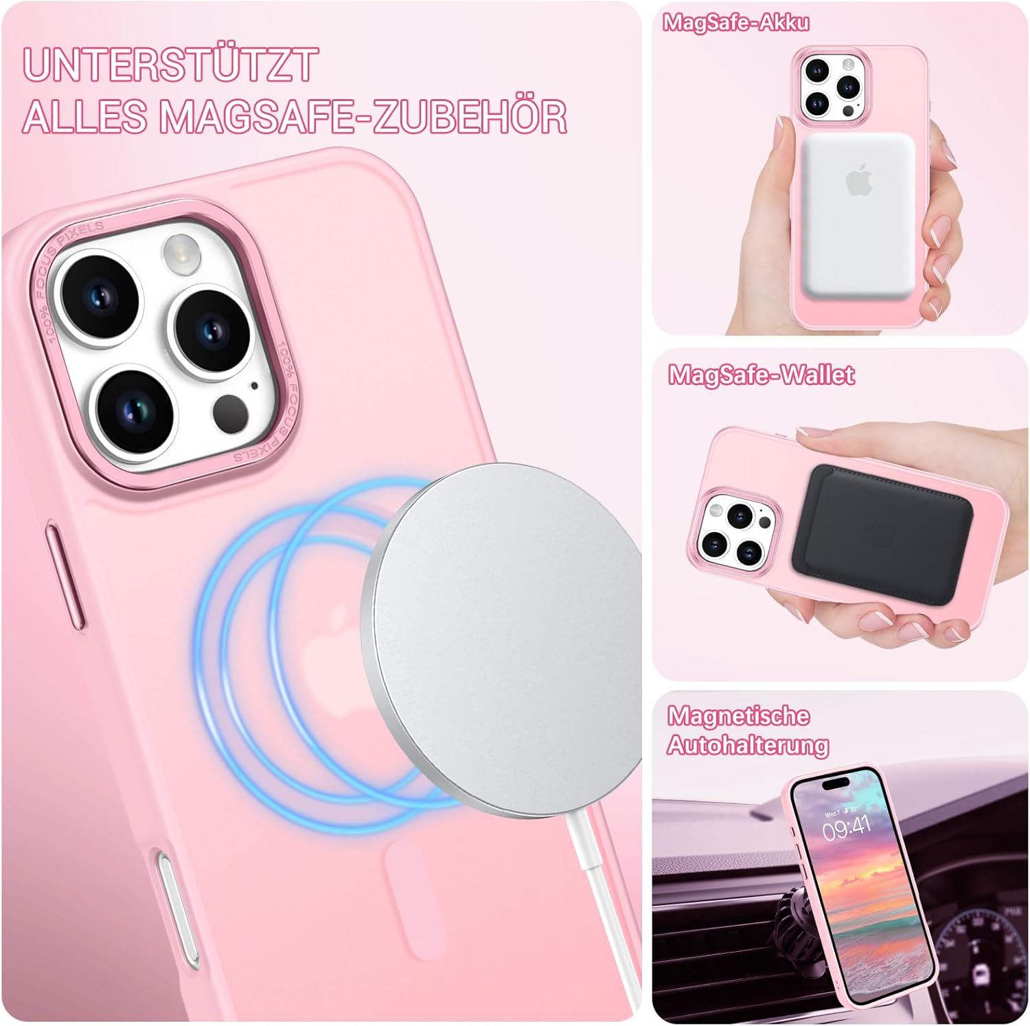 GaoBao калъф за iPhone 16 Pro Max, калъф за мобилен телефон iPhone 16 Pro Max [съвместим с Magsafe] полупрозрачен матов магнитен удароустойчив калъф против пръстови отпечатъци за iPhone 16 Pro Max, светло розов