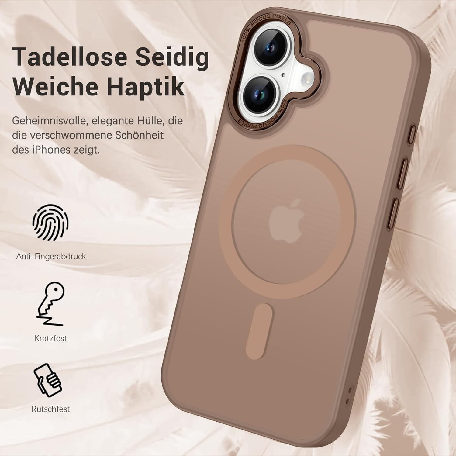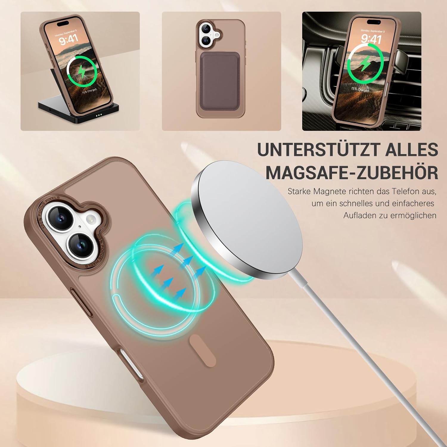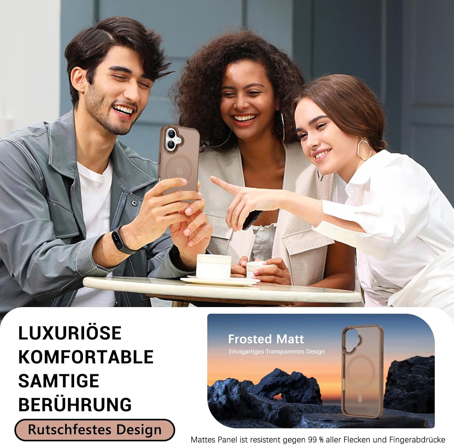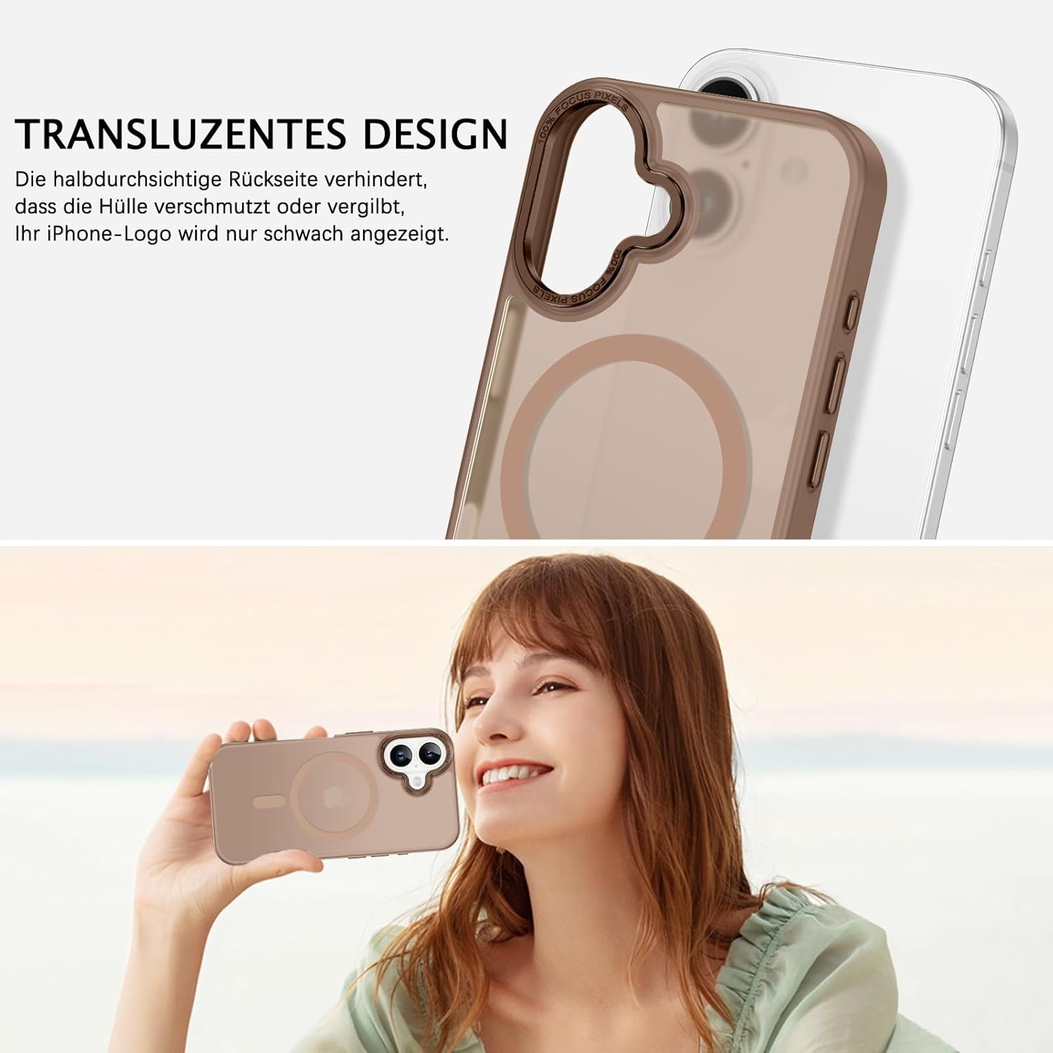 GaoBao калъф за iPhone 17, калъф за мобилен телефон iPhone 17 [съвместим с MagSafe] полупрозрачен матов магнитен удароустойчив калъф за мобилен телефон с пръстови отпечатъци за 6,3 инча, кафяв