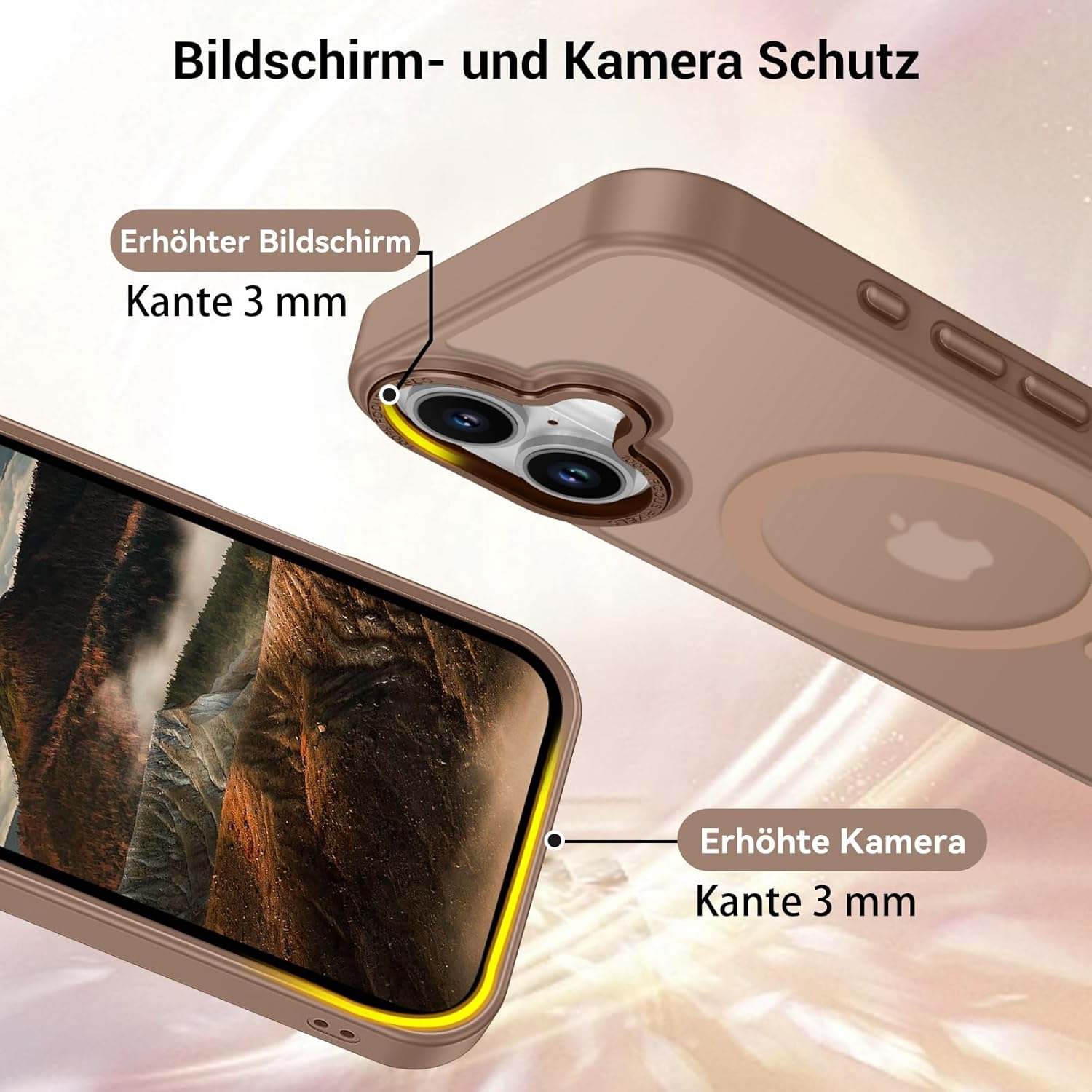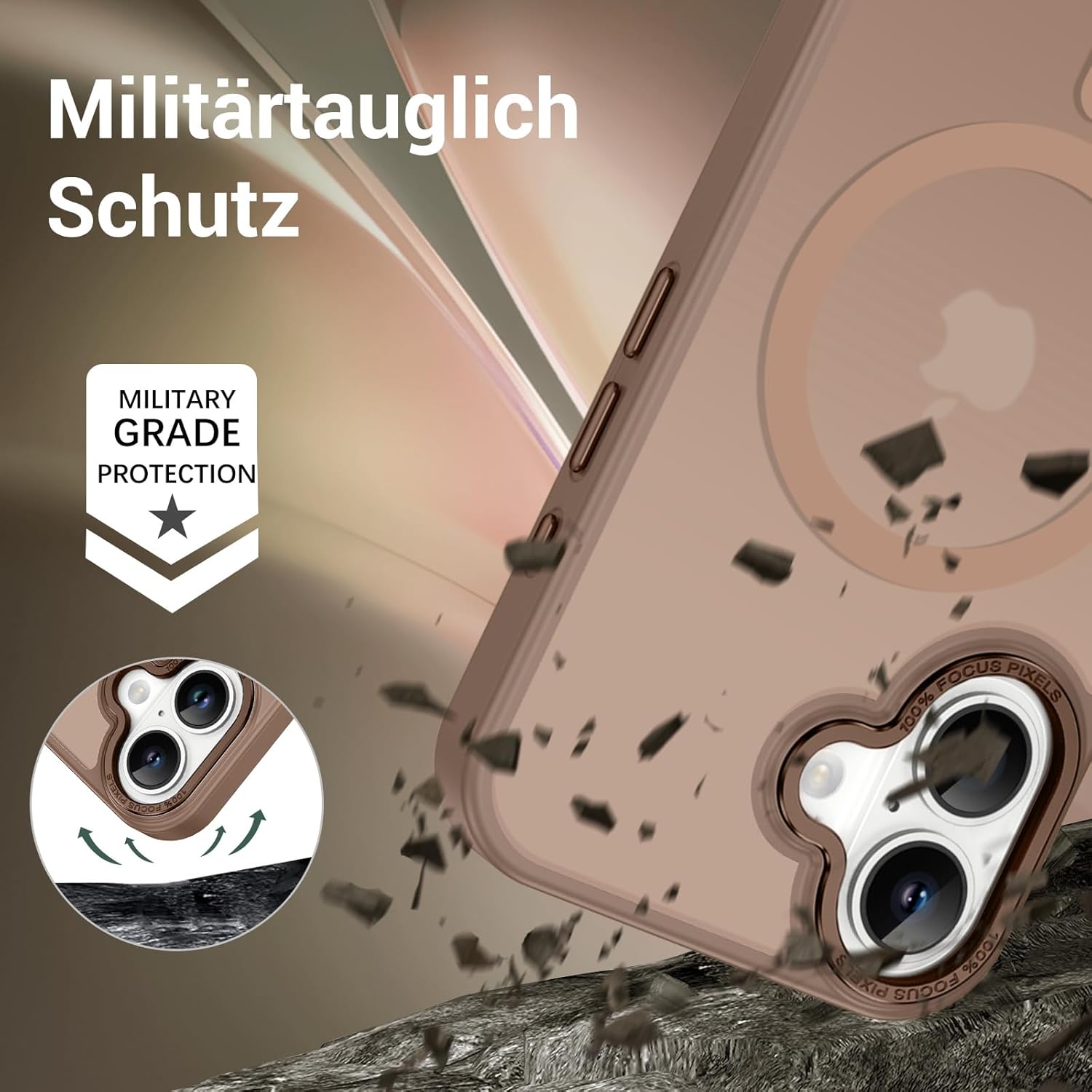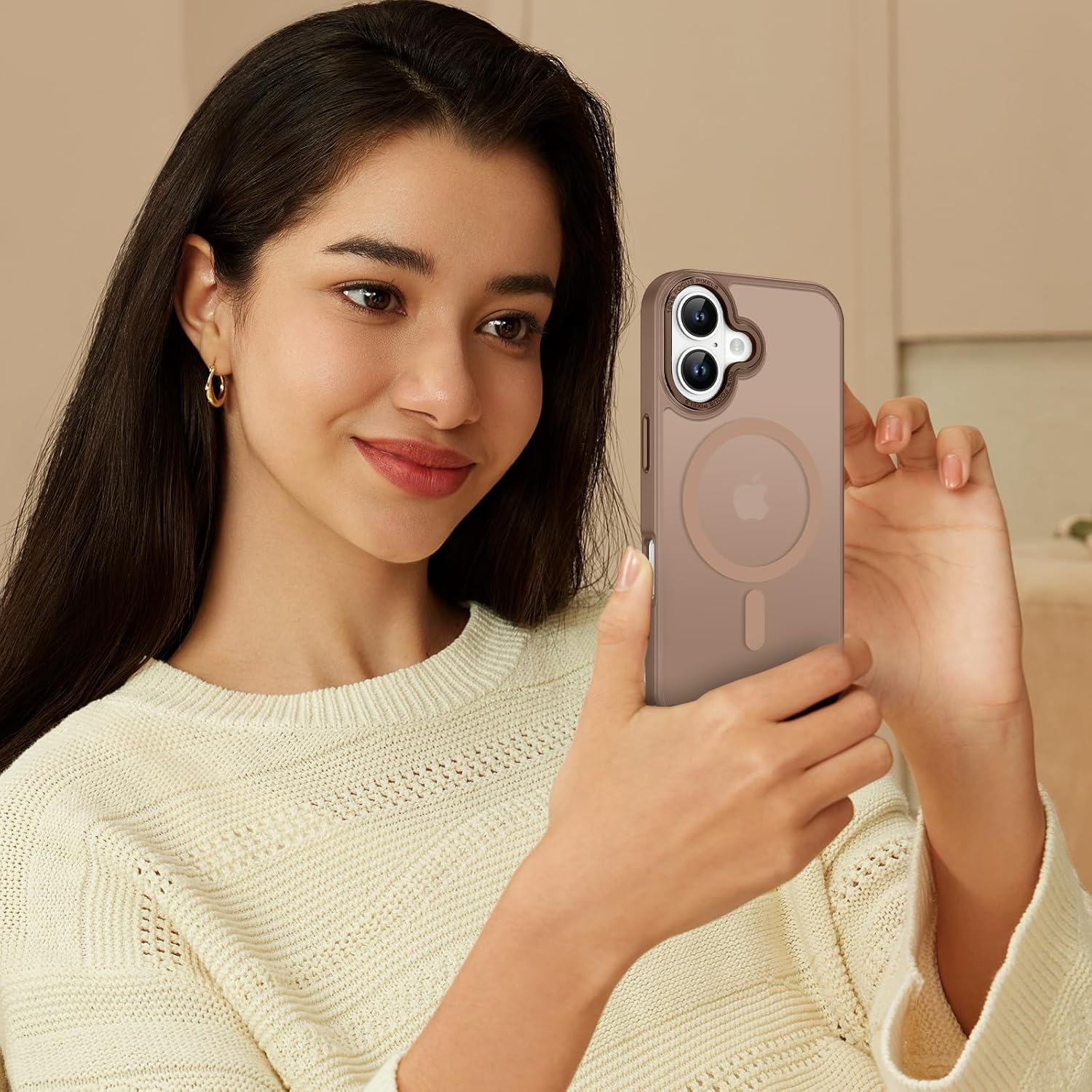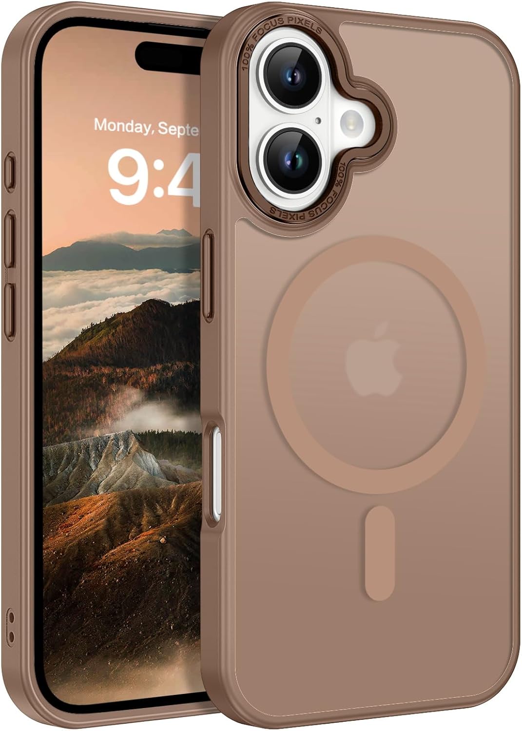 GaoBao калъф за iPhone 17, калъф за мобилен телефон iPhone 17 [съвместим с MagSafe] полупрозрачен матов магнитен удароустойчив калъф за мобилен телефон с пръстови отпечатъци за 6,3 инча, кафяв