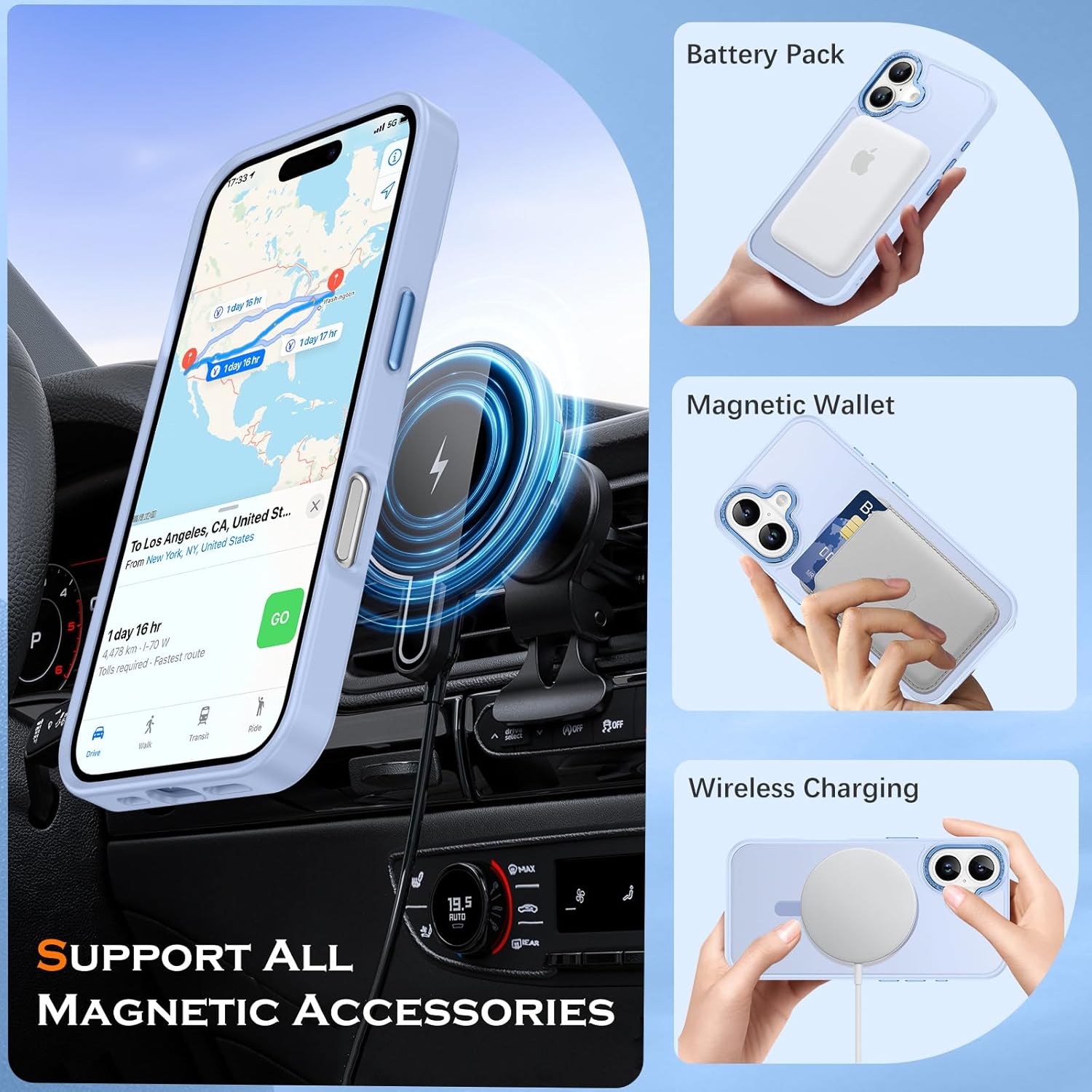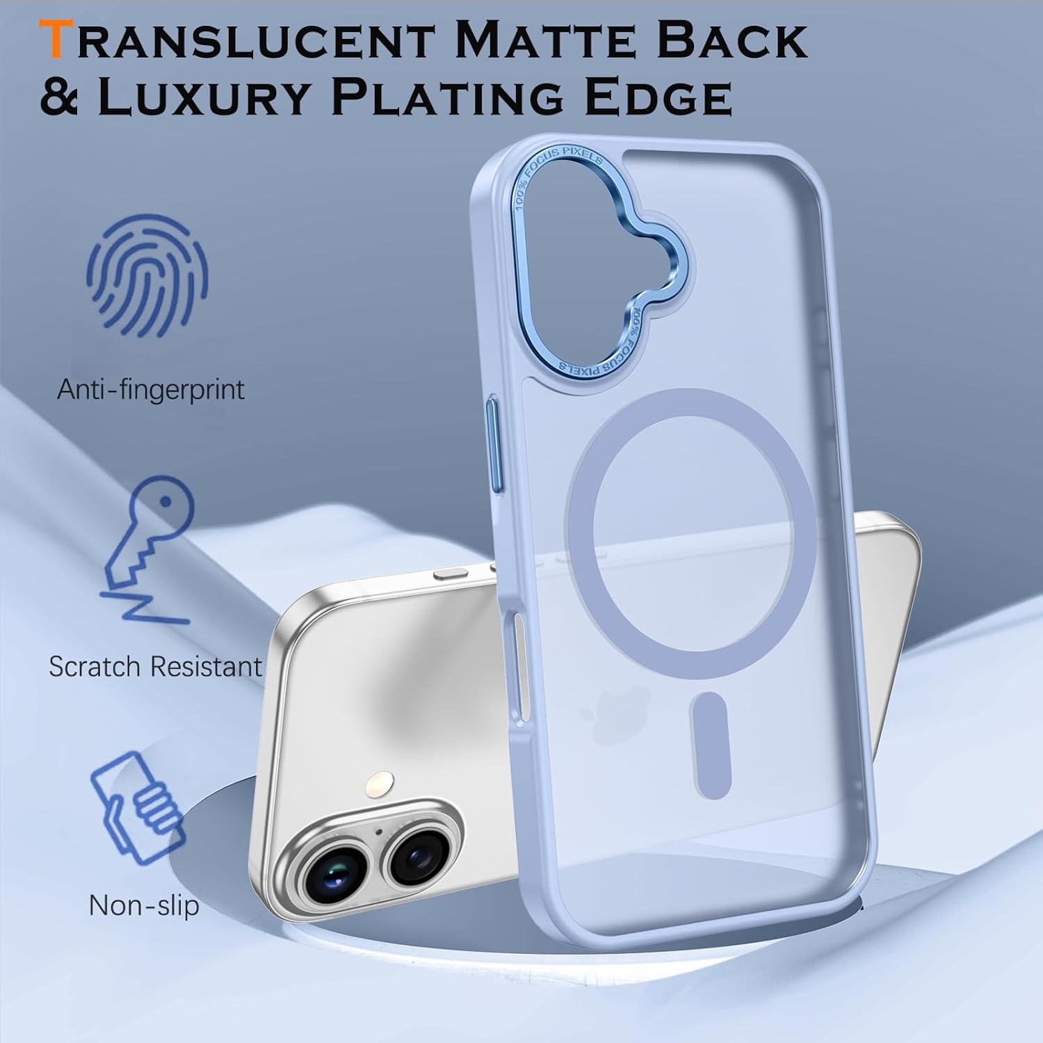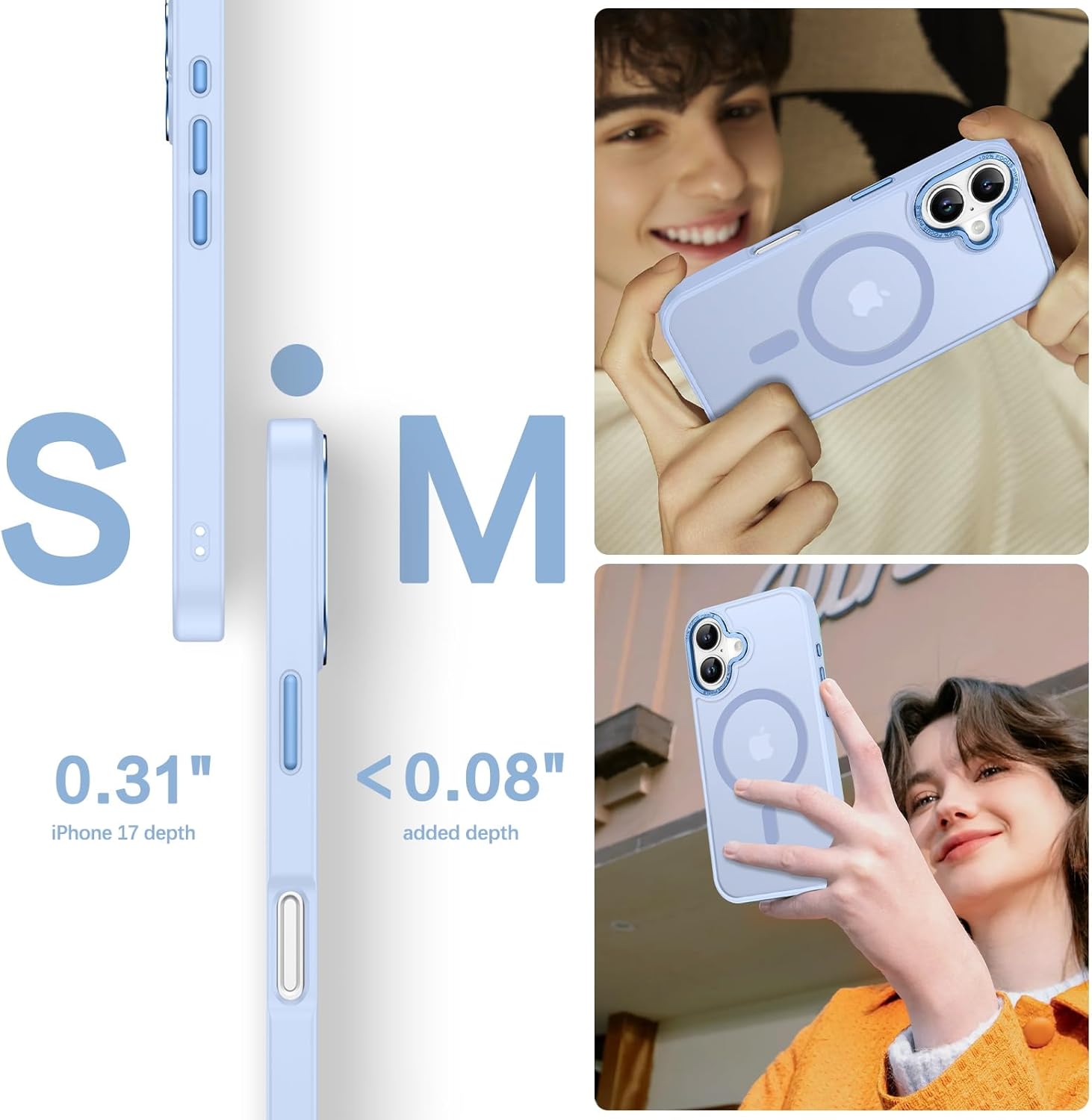 GaoBao калъф за iPhone 17, калъф за мобилен телефон iPhone 17 [съвместим с MagSafe] полупрозрачен матов магнитен удароустойчив калъф за мобилен телефон с пръстови отпечатъци за 6,3 инча, светло син