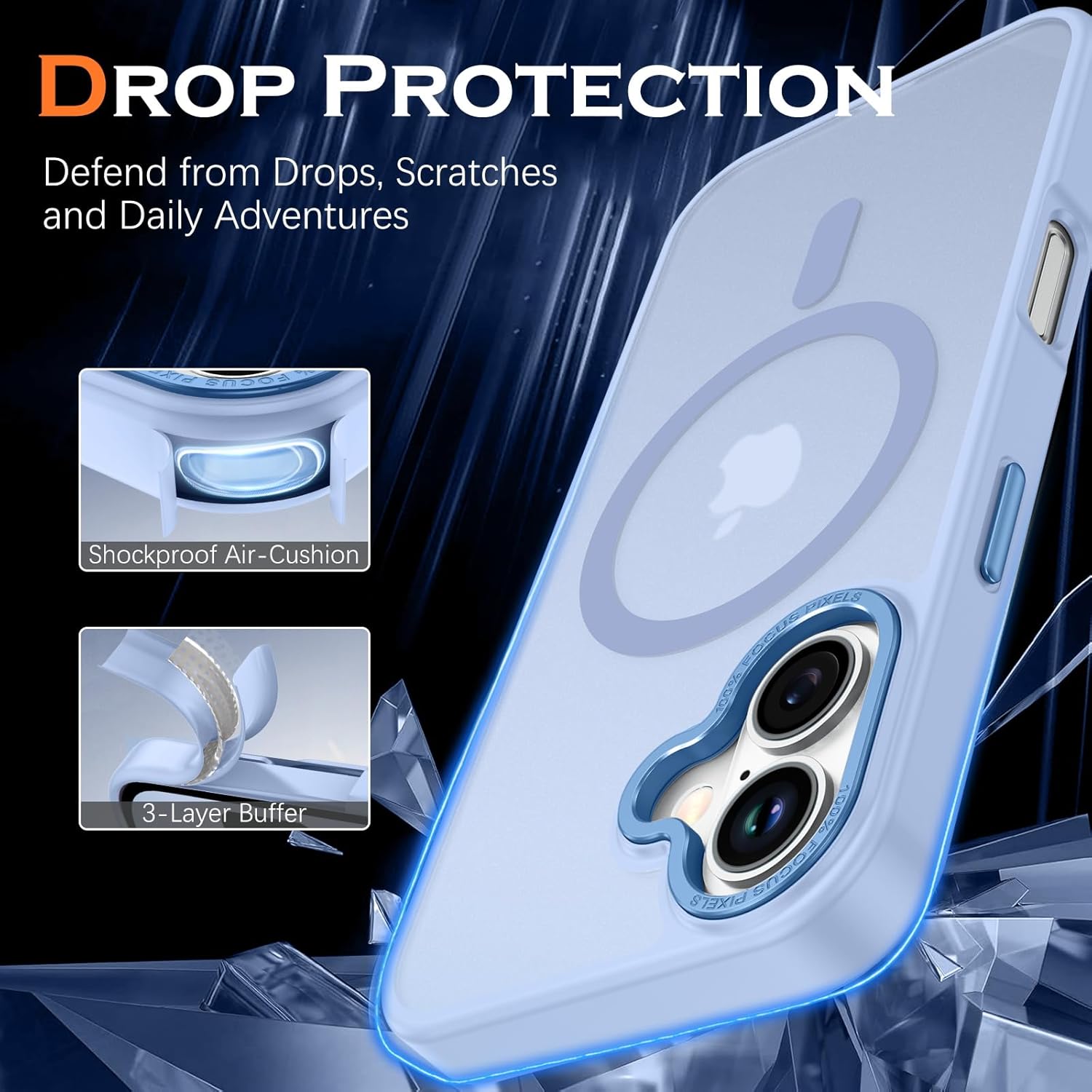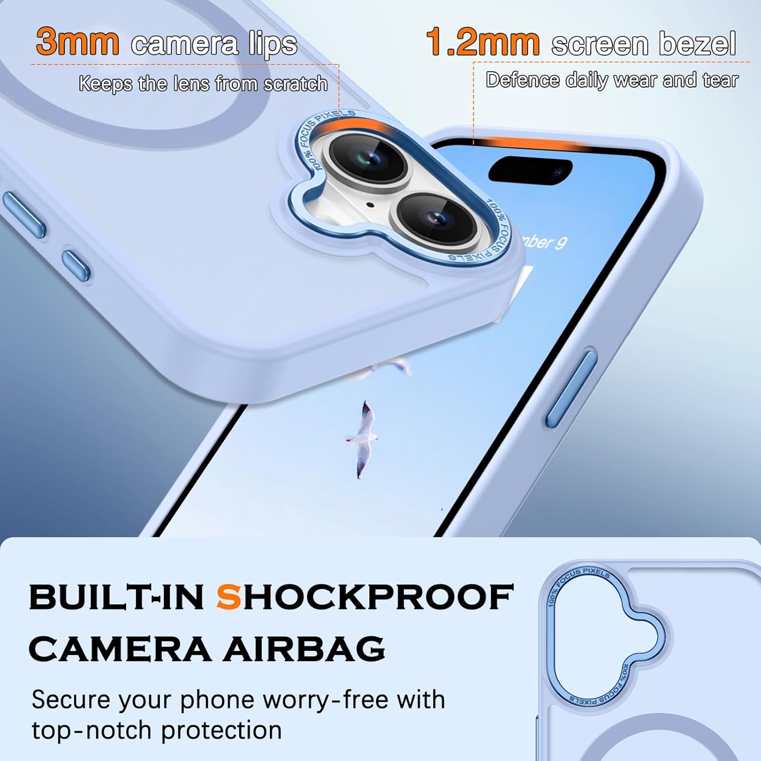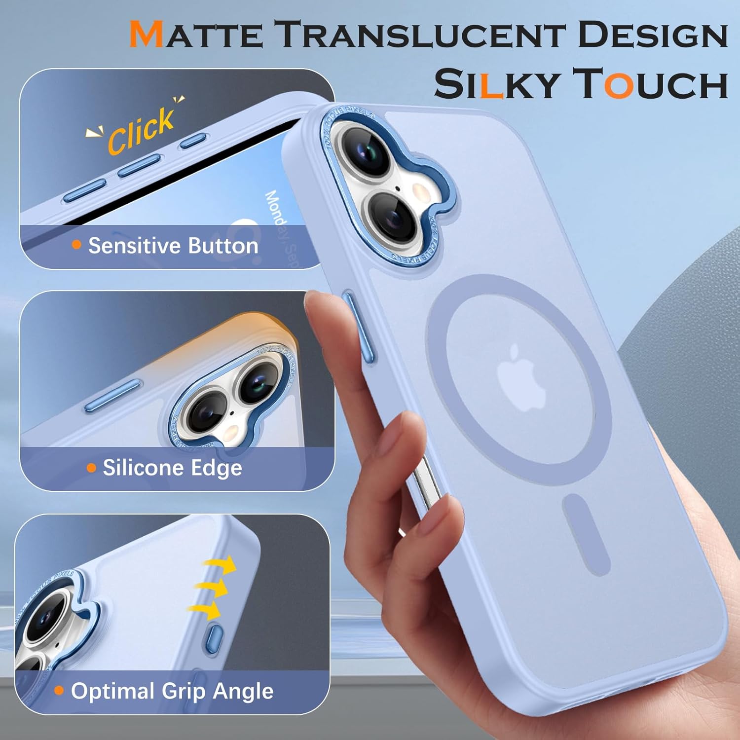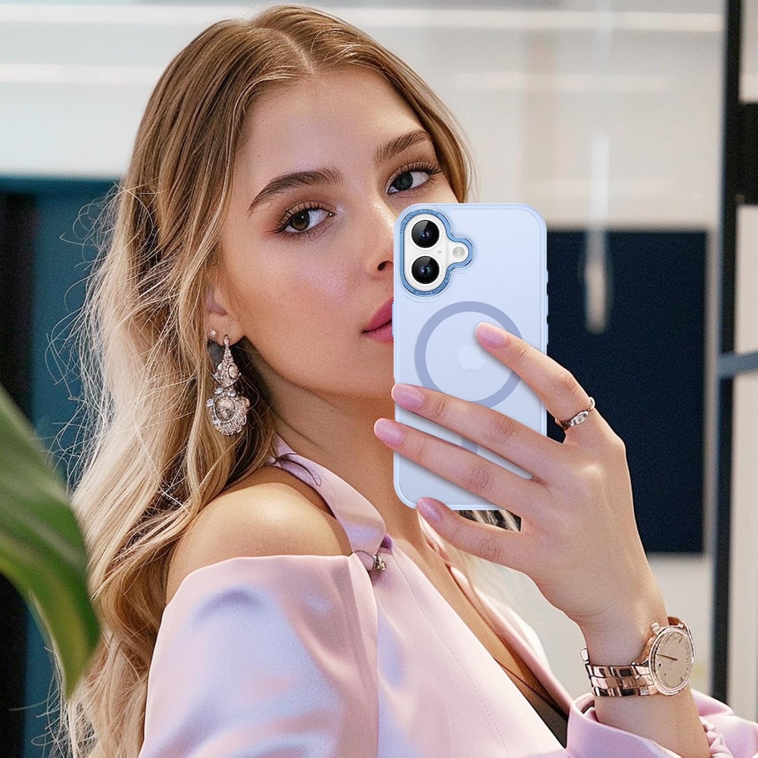 GaoBao калъф за iPhone 17, калъф за мобилен телефон iPhone 17 [съвместим с MagSafe] полупрозрачен матов магнитен удароустойчив калъф за мобилен телефон с пръстови отпечатъци за 6,3 инча, светло син
