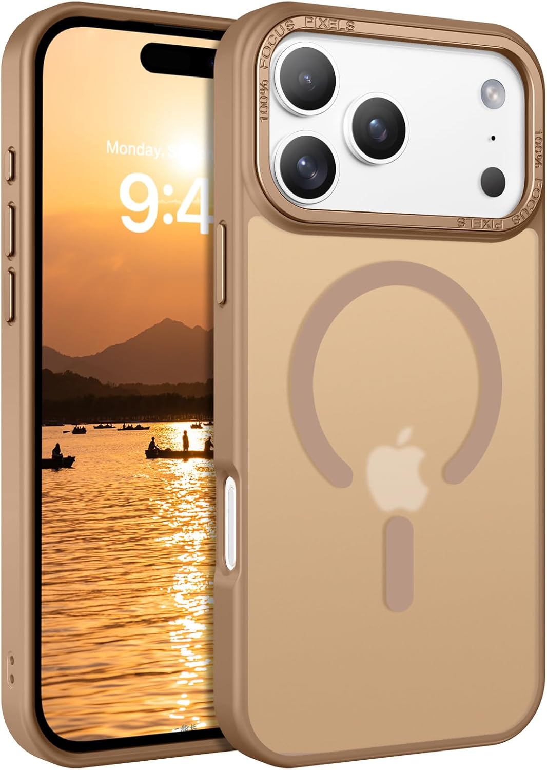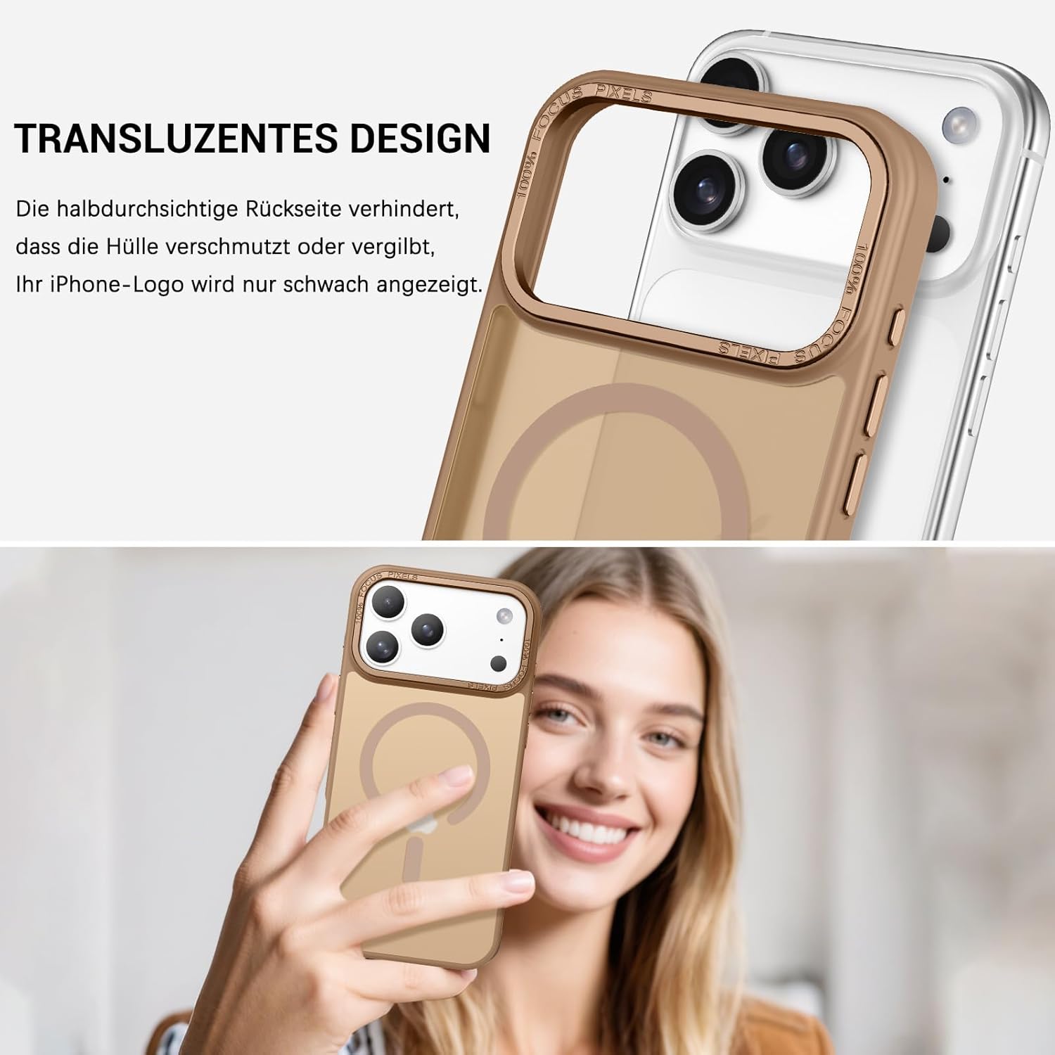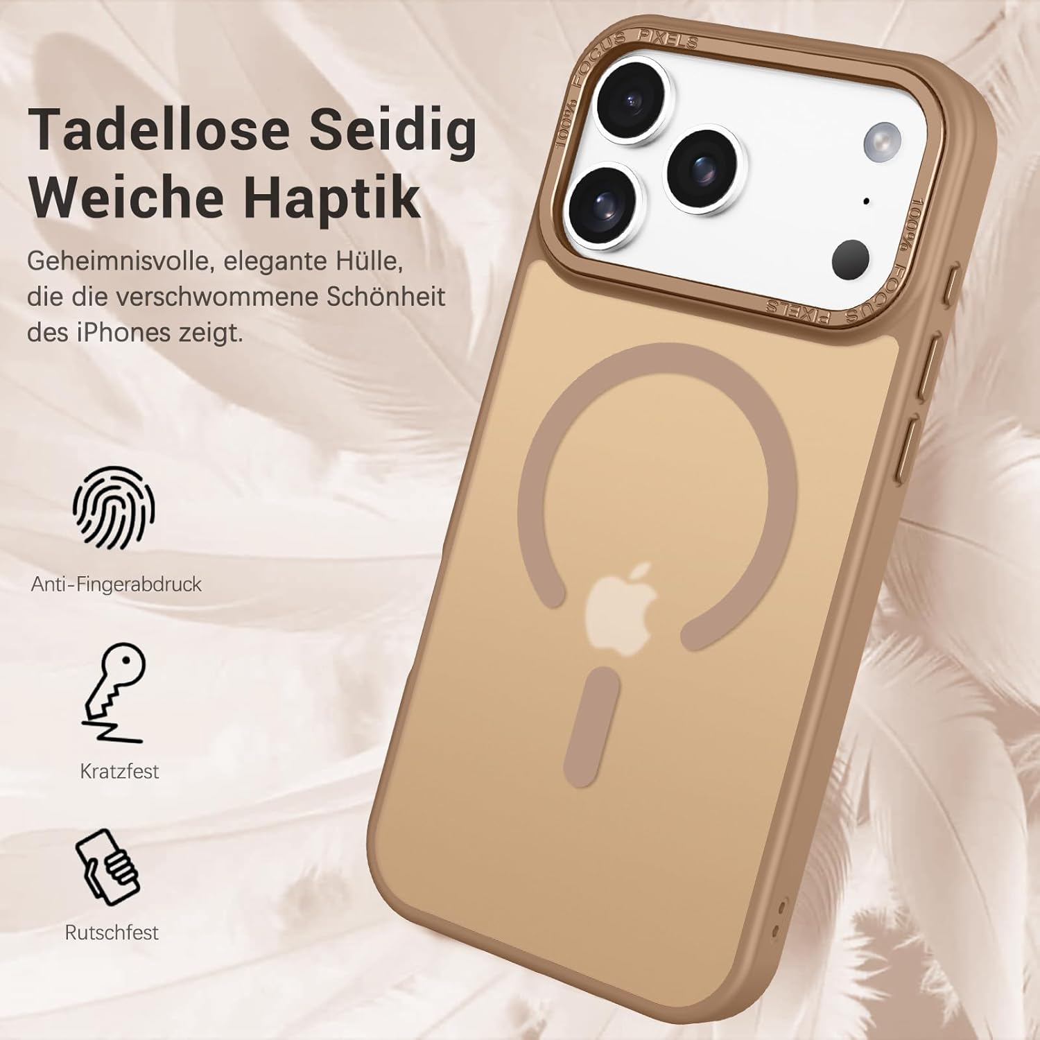 GaoBao калъф за iPhone 17 Pro Max, калъф за мобилен телефон iPhone 17 Pro Max [съвместим с MagSafe] полупрозрачен матов магнитен удароустойчив калъф против пръстови отпечатъци 6.9 инча, кафяв