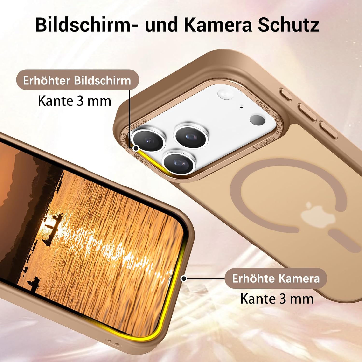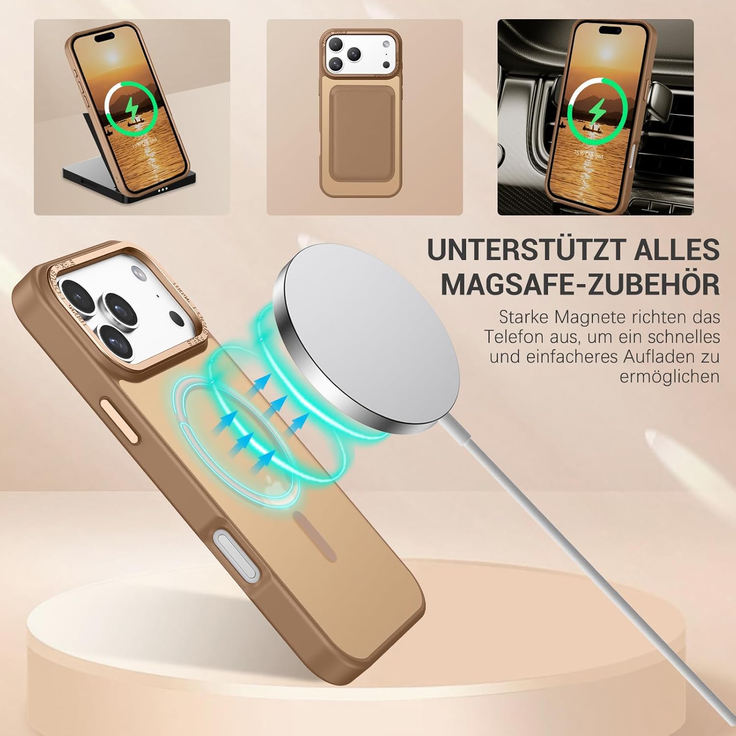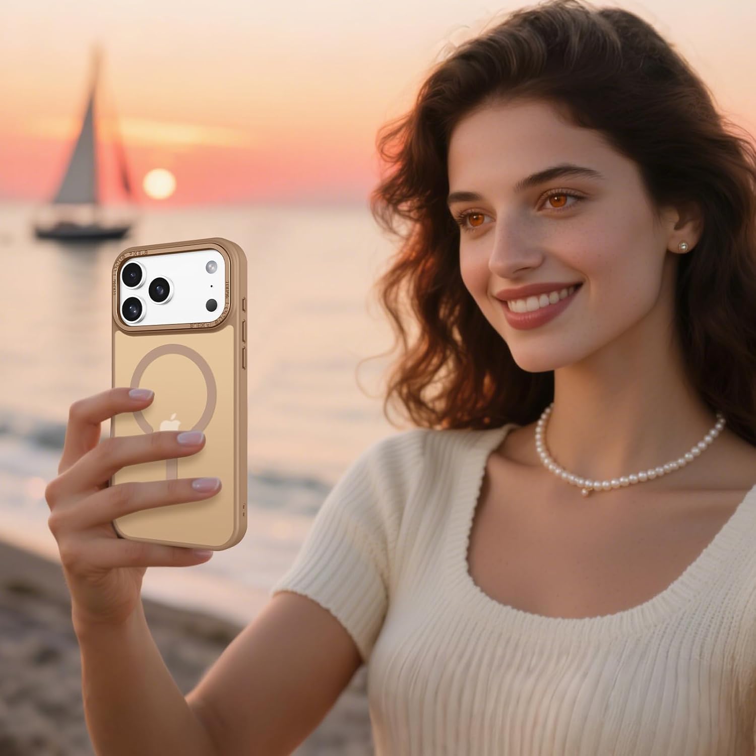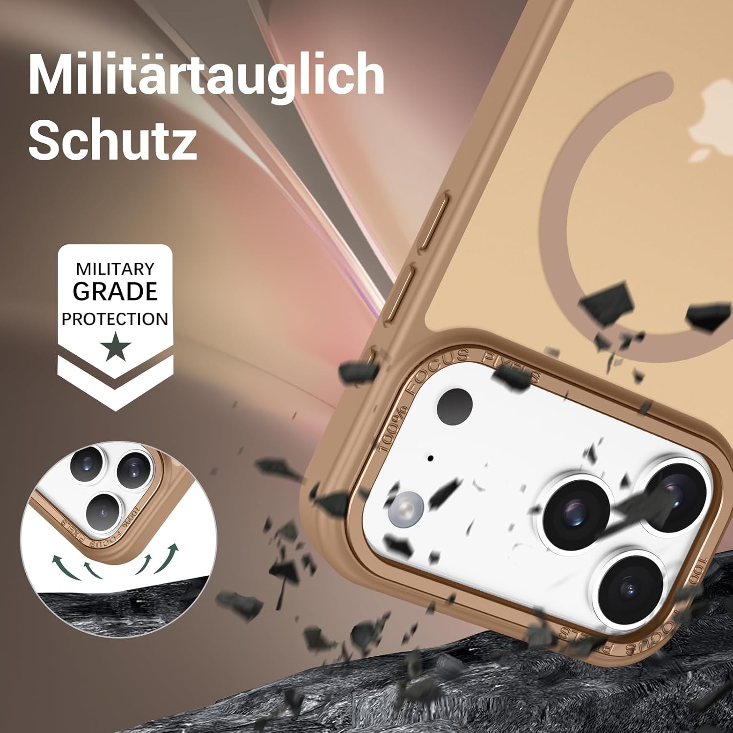 GaoBao калъф за iPhone 17 Pro Max, калъф за мобилен телефон iPhone 17 Pro Max [съвместим с MagSafe] полупрозрачен матов магнитен удароустойчив калъф против пръстови отпечатъци 6.9 инча, кафяв